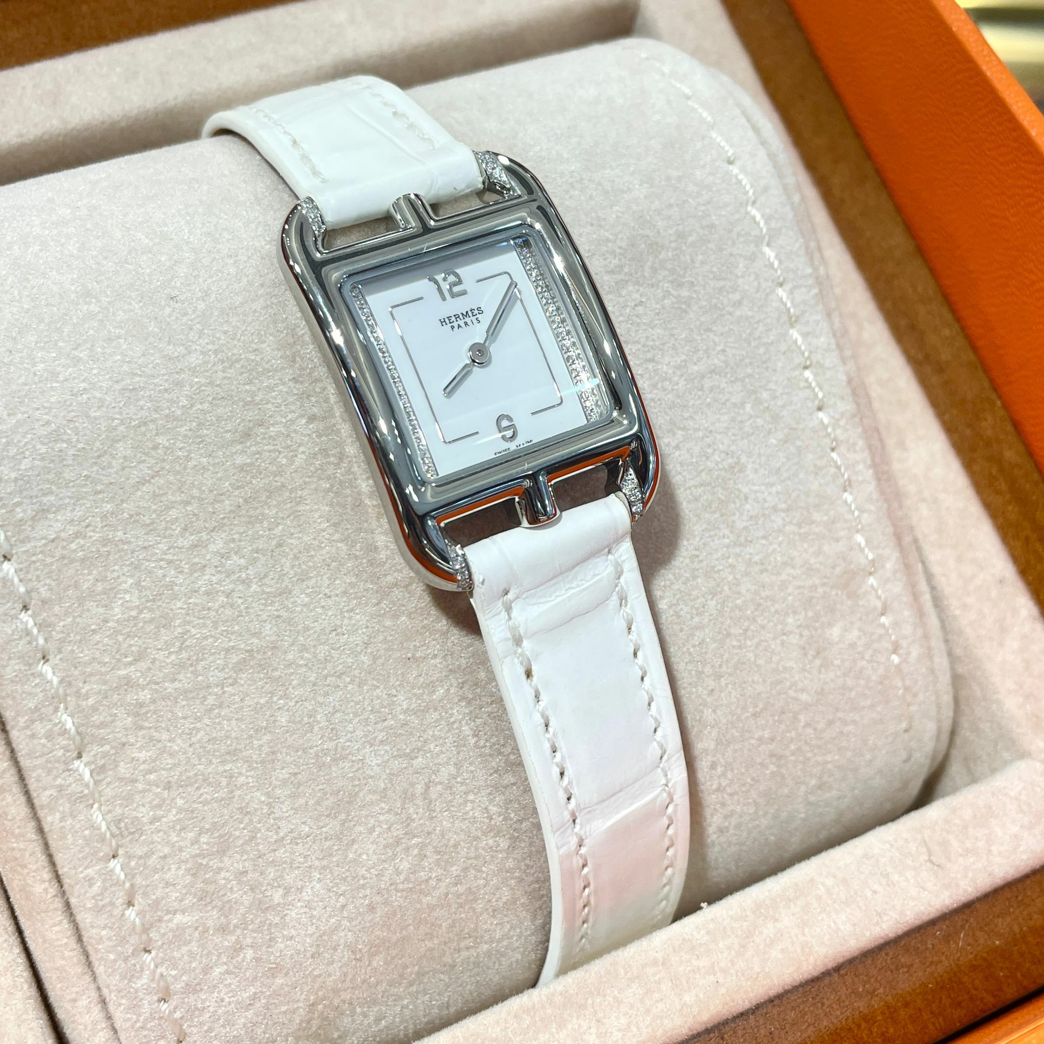 全新HERMES 手錶 W056651WW00 白色鱷魚皮/鑲鑽白漆錶盤Cape Cod watch #BRAND NEW#香榭站正品