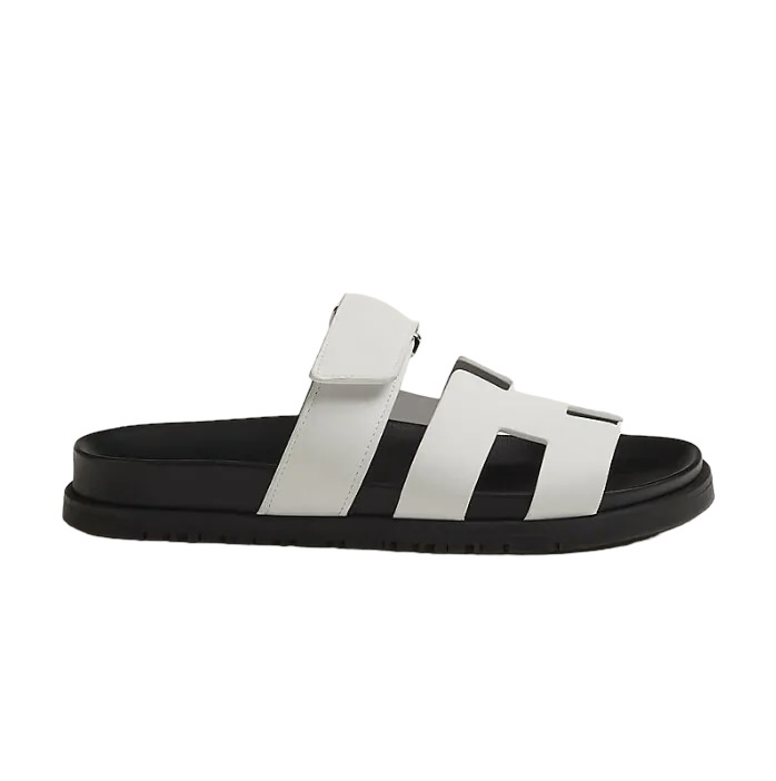 全新HERMES拖鞋/二舅鞋36碼 H222100Z 平底白色小牛皮 Chypre sandal #BRAND NEW #香榭站正品