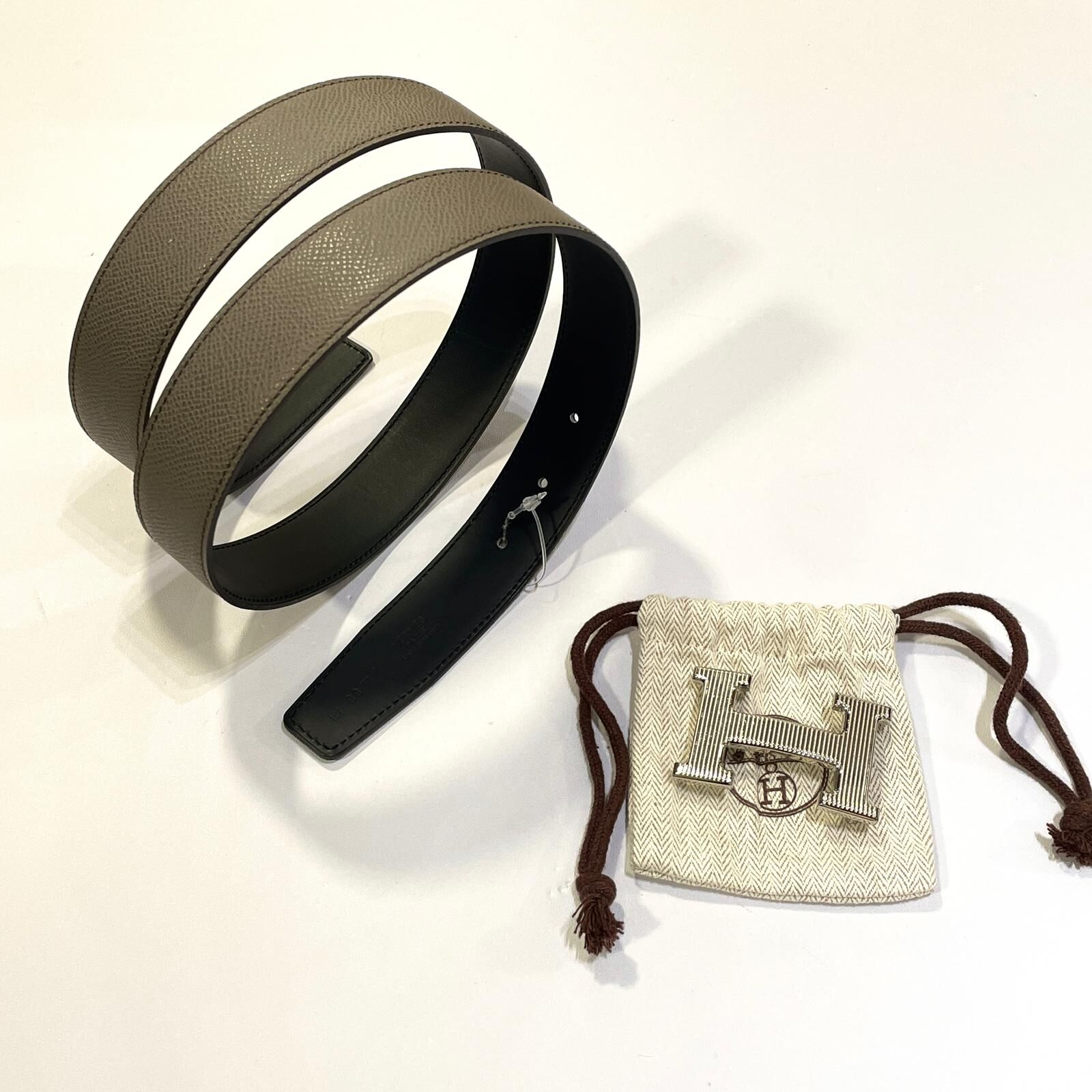 本月特價!!! 全新愛馬士皮帶 90碼, 32mm, 黑色SWIFT,大象灰EPSOM,雙面腰帶, 銀色扣, HERMES BELT #BRAND NEW #香榭站正品