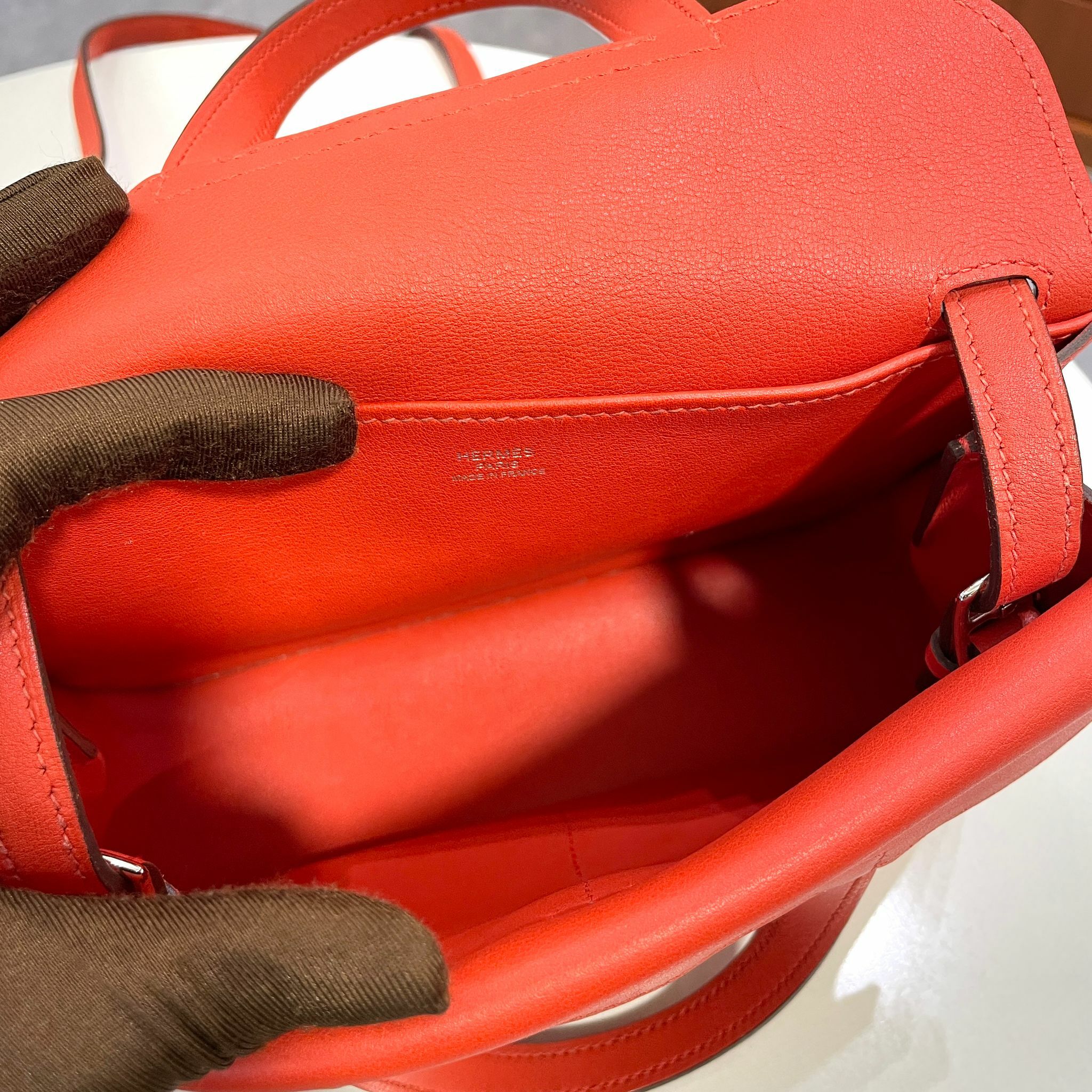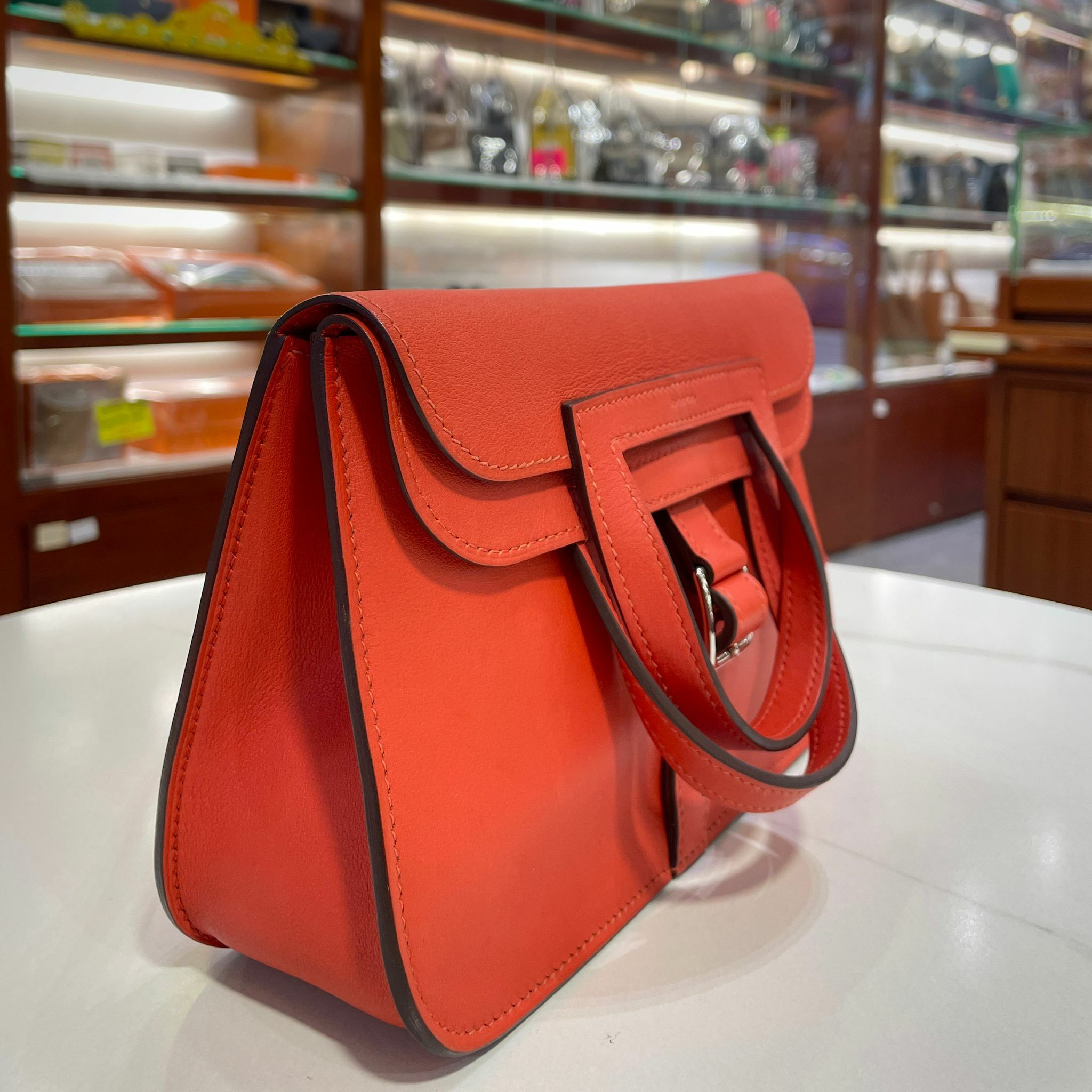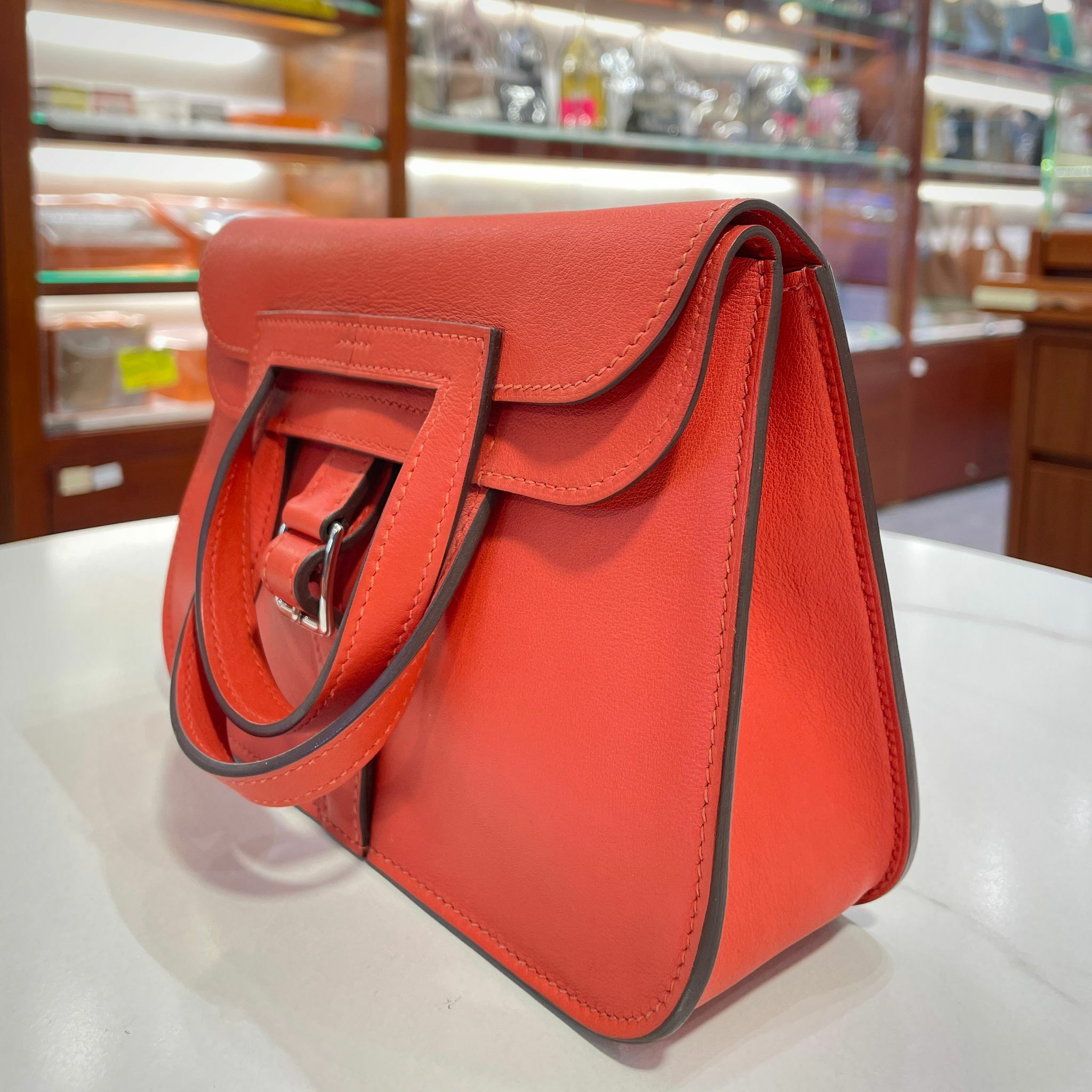 95%NEW二手HERMES MINI HALZAN 火焰橙/銀扣 9J/FEU ORANG #香榭站正品