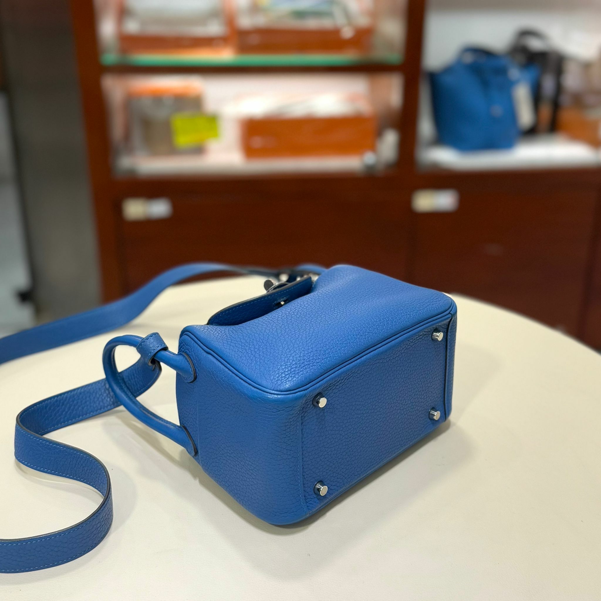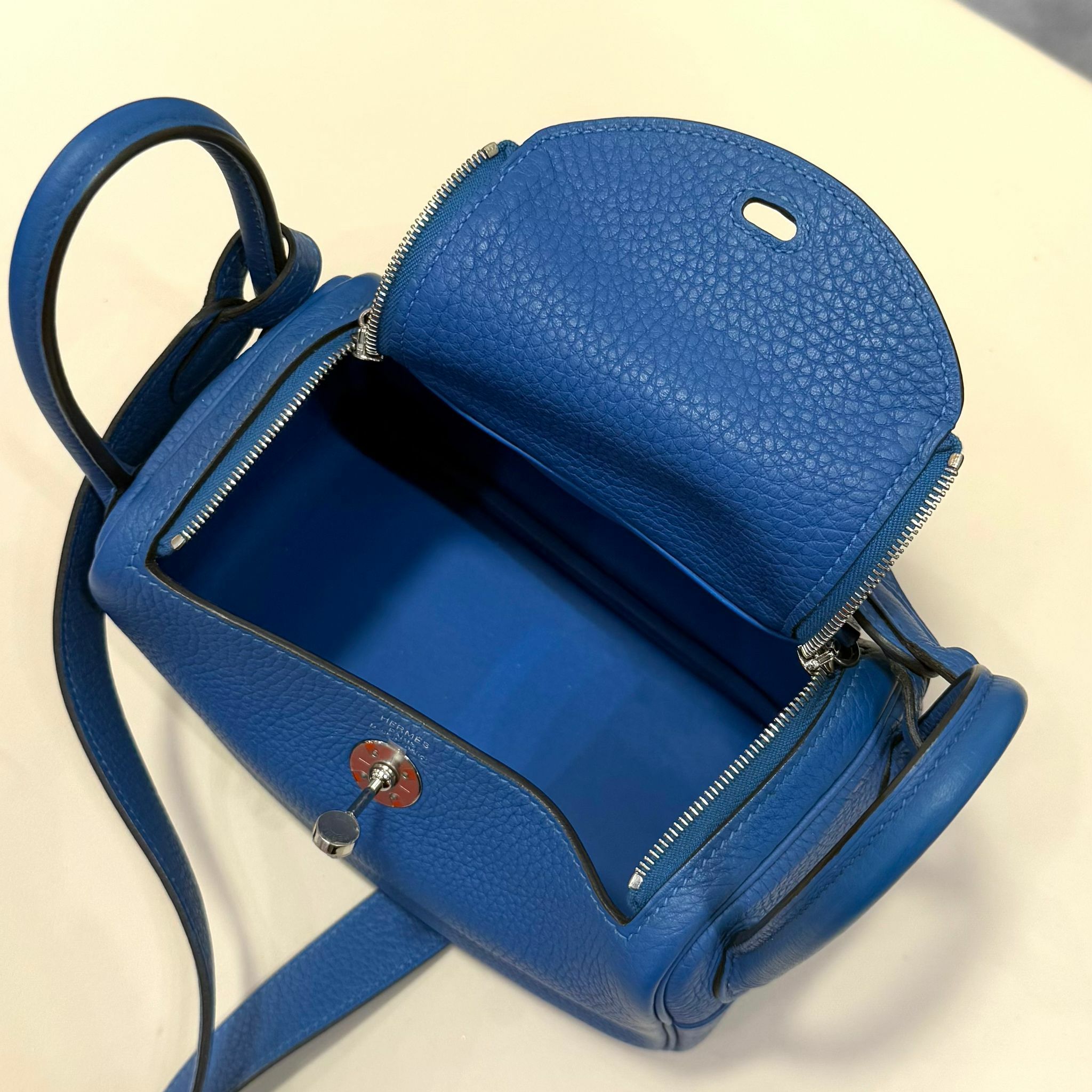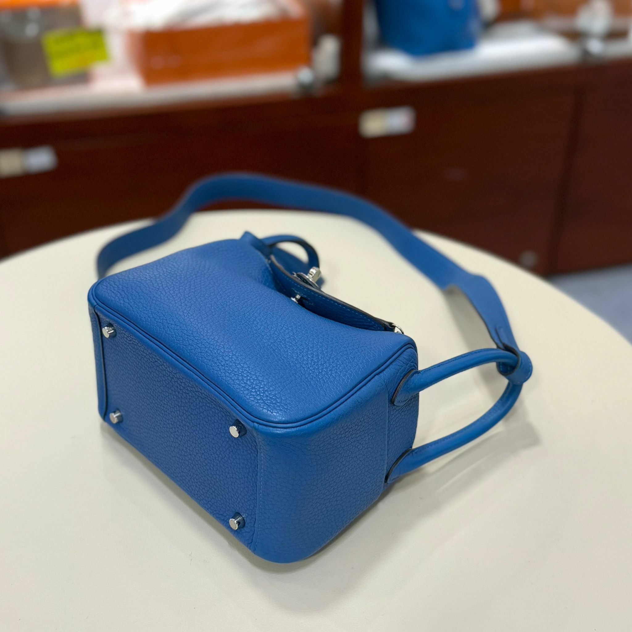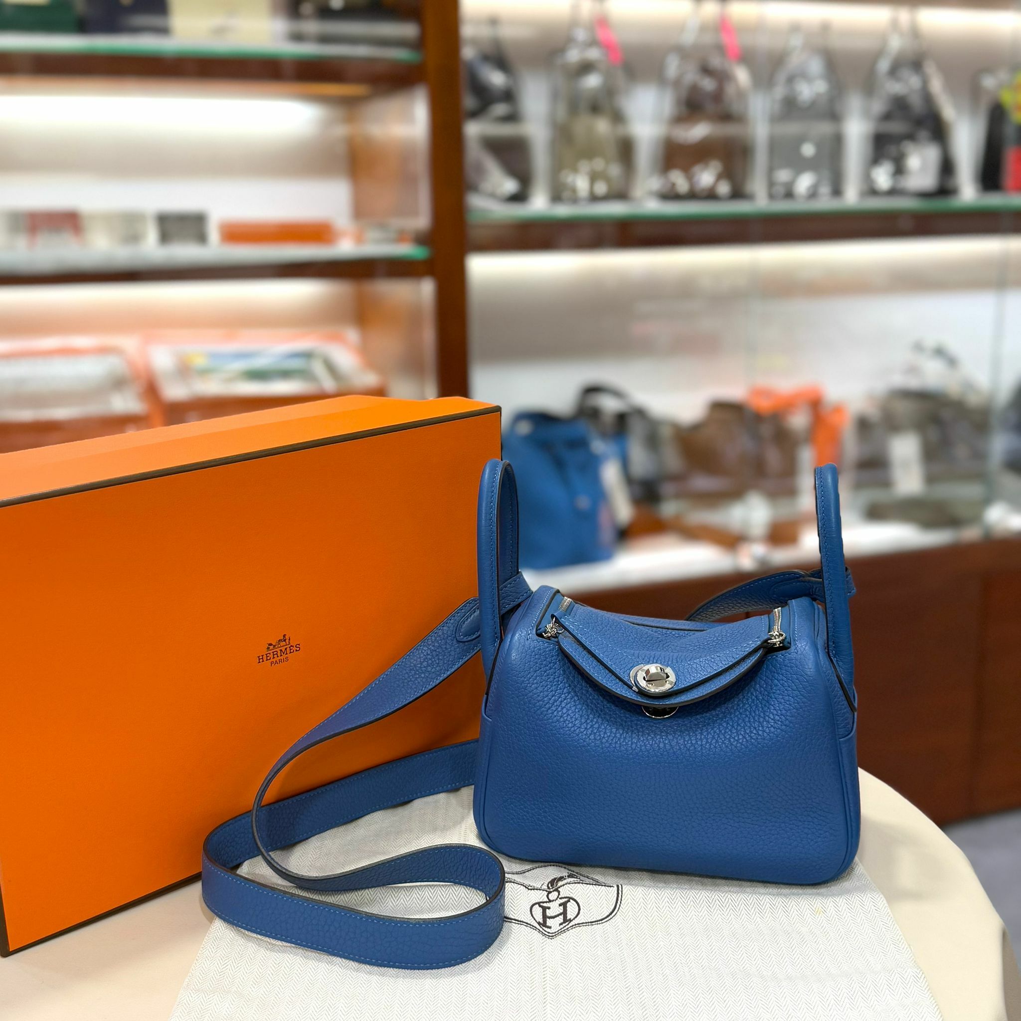 99%NEW二手HERMES MINI LINDY 藍色 TC皮/銀扣 #香榭站正品