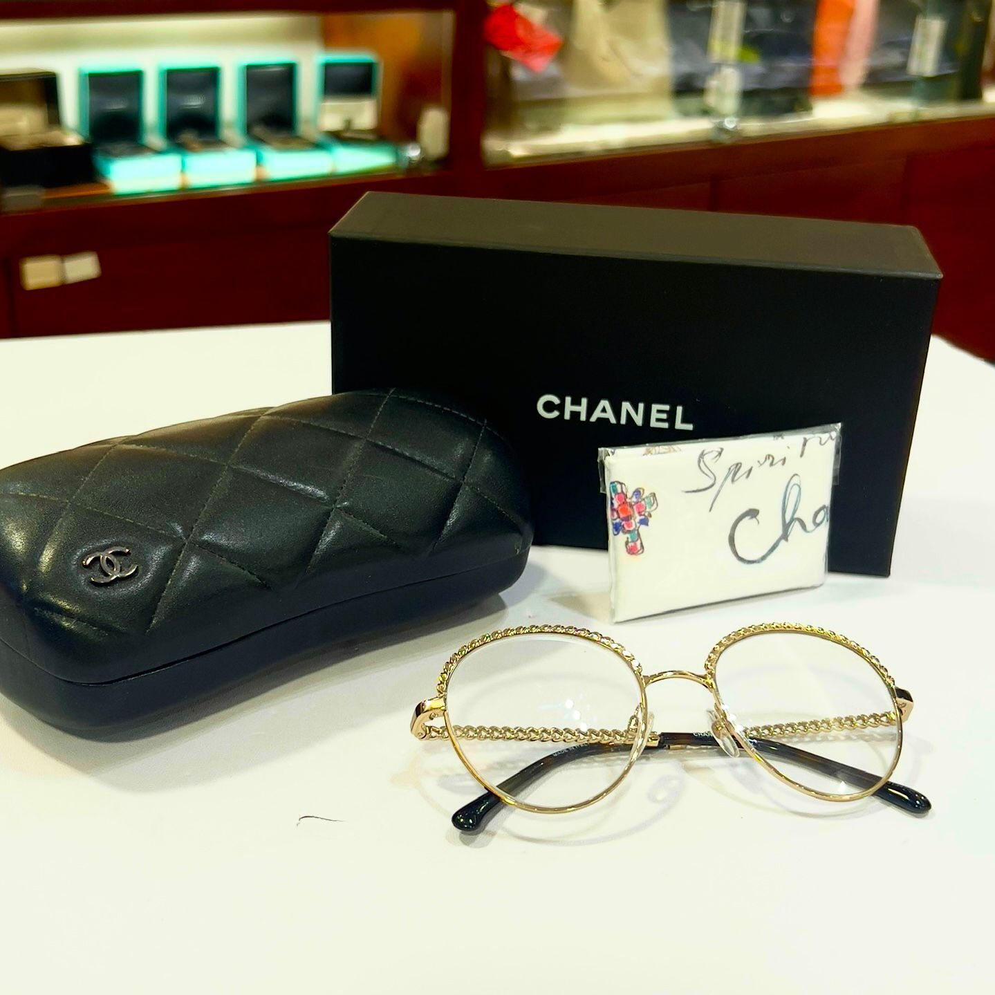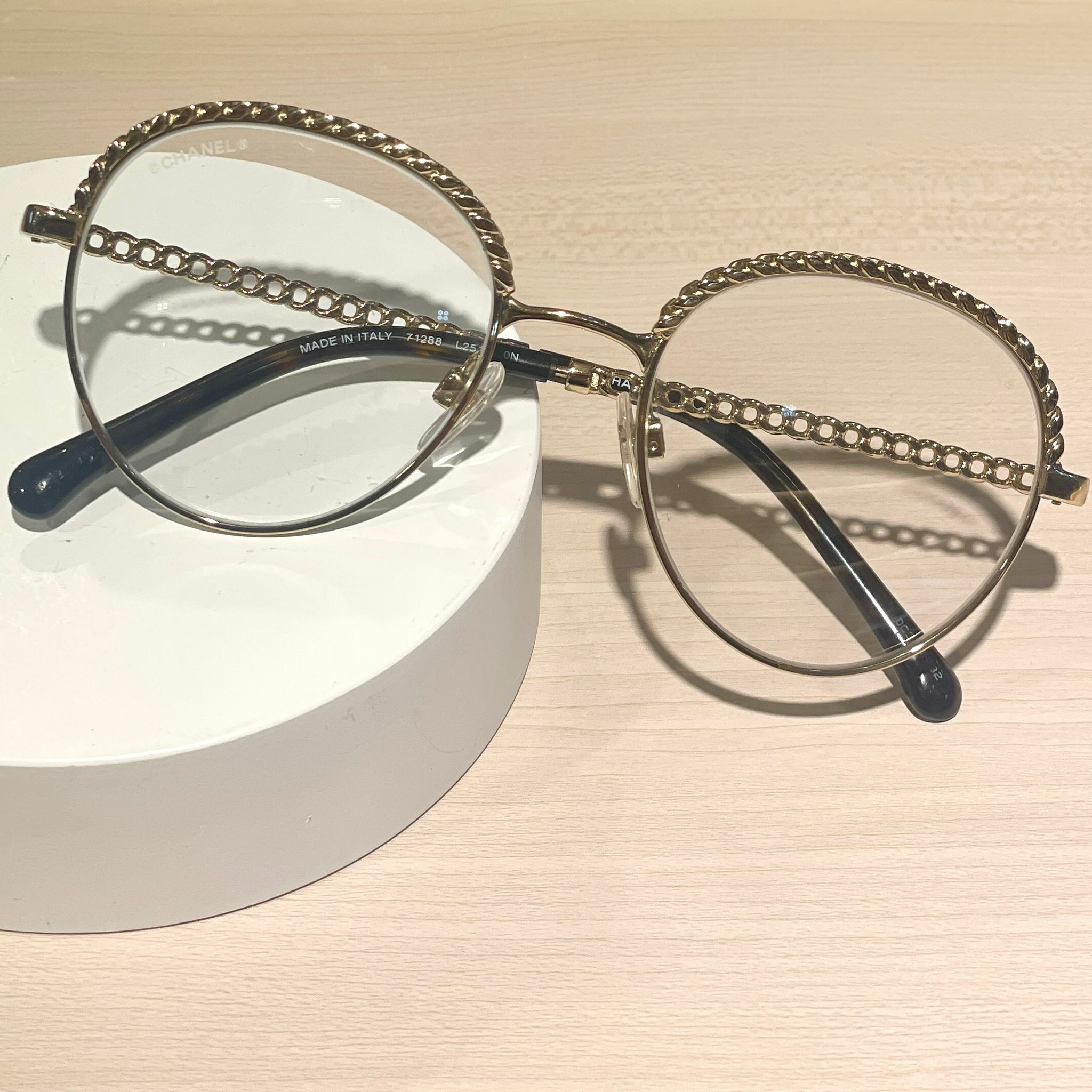 99%NEW 二手CHANEL 眼鏡 淡金橢圓框 平光镜 #香榭站正品