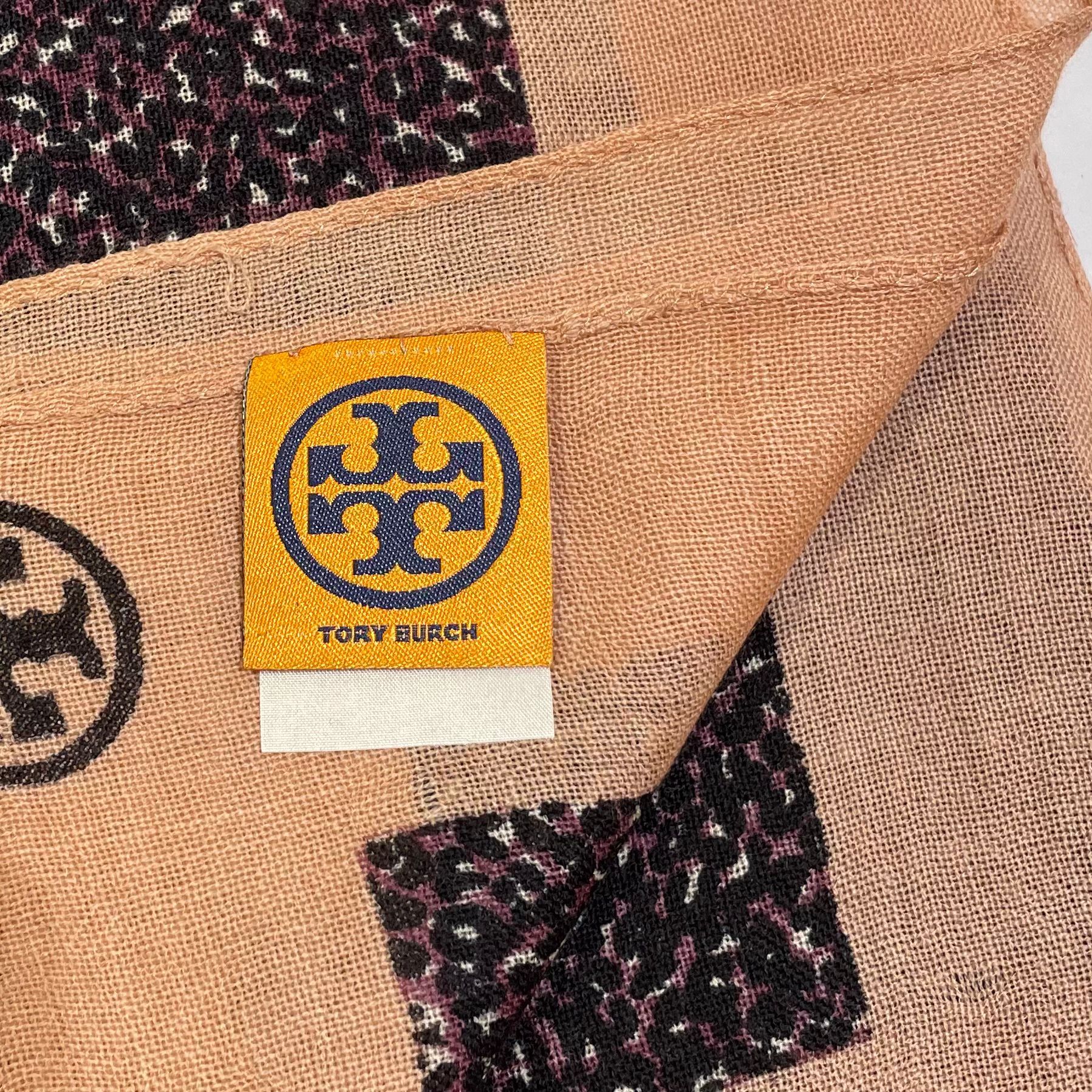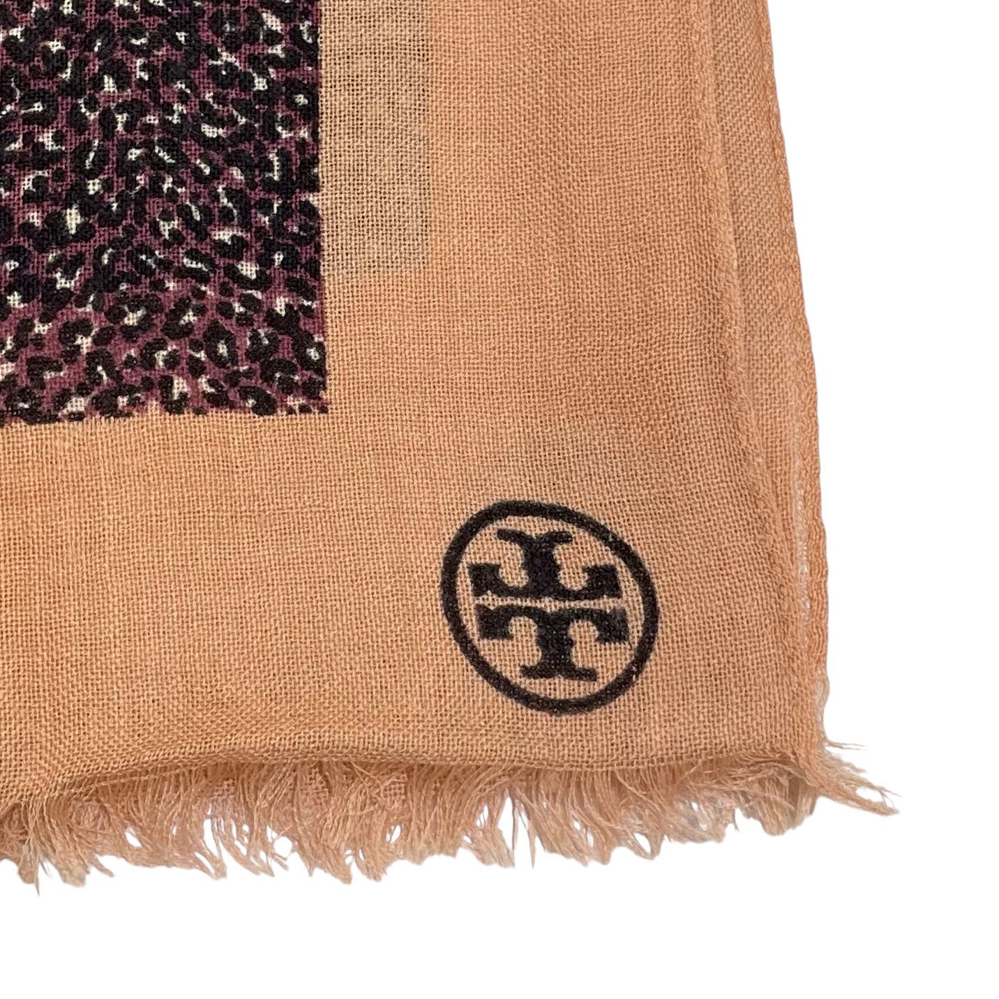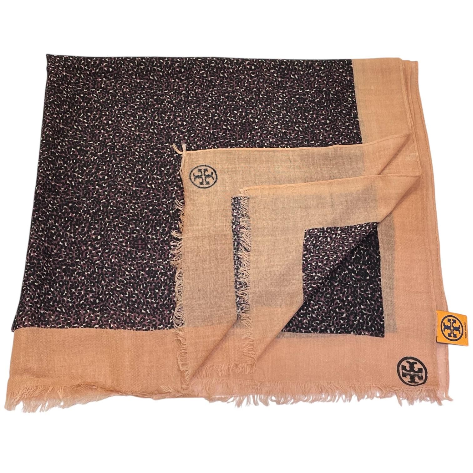 Display➡️TORY BURCH圍巾 105x105cm 紫色拼粉色羊毛 豹紋圖案SCARF #BRAND NEW #香榭站正品