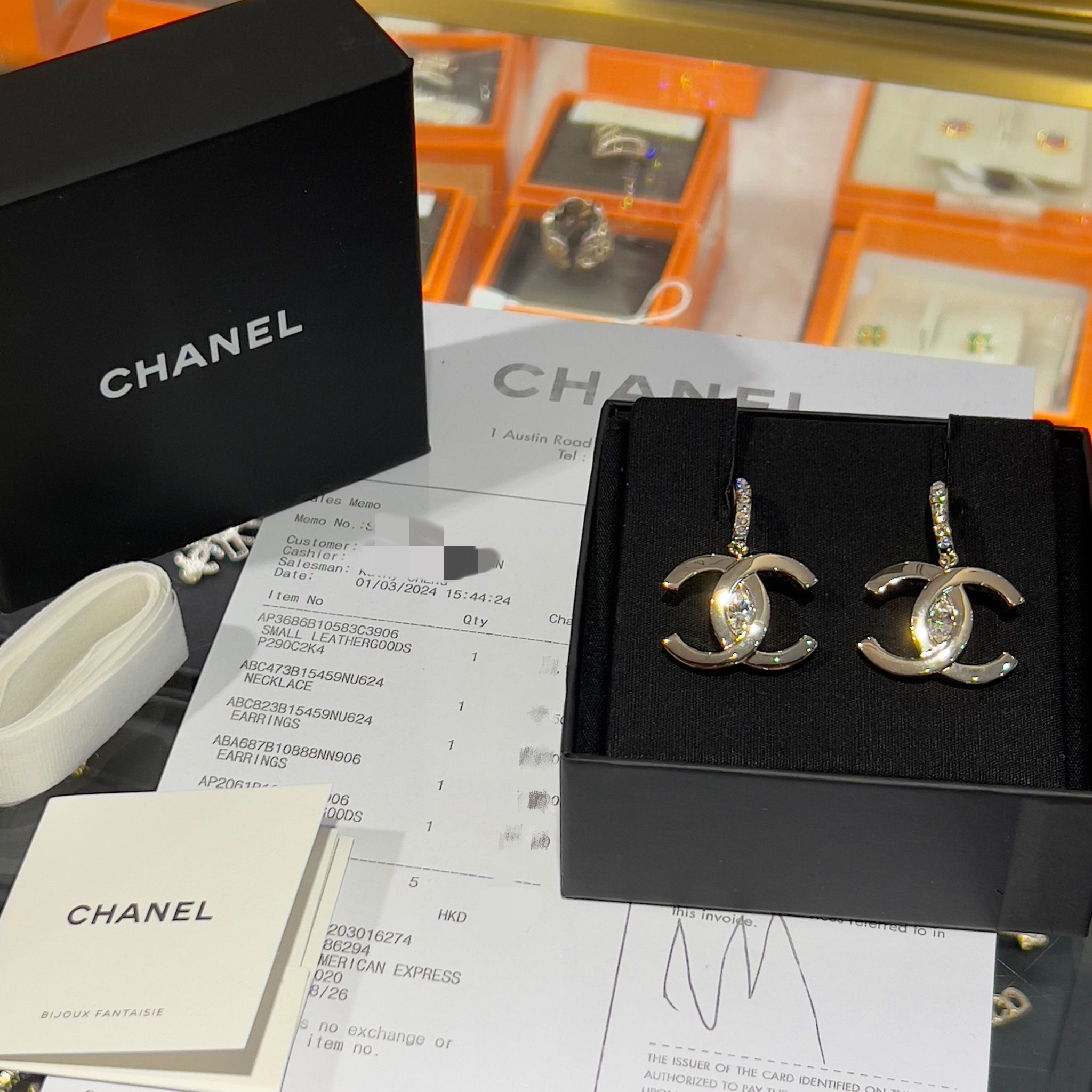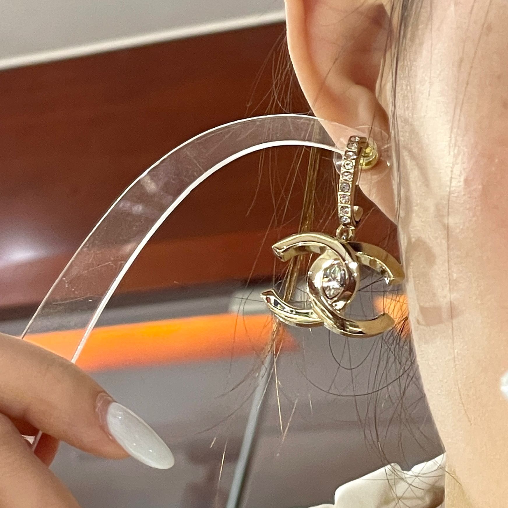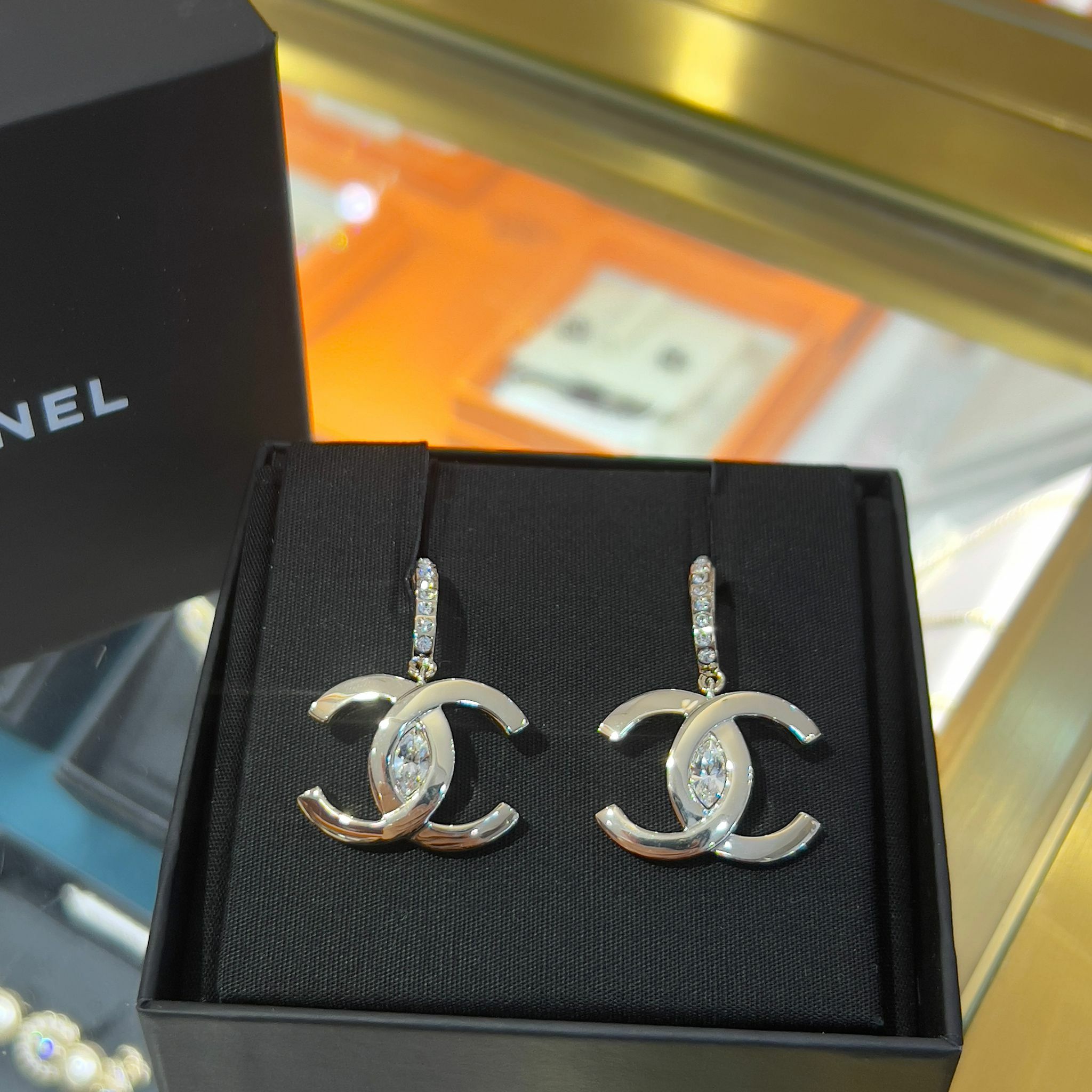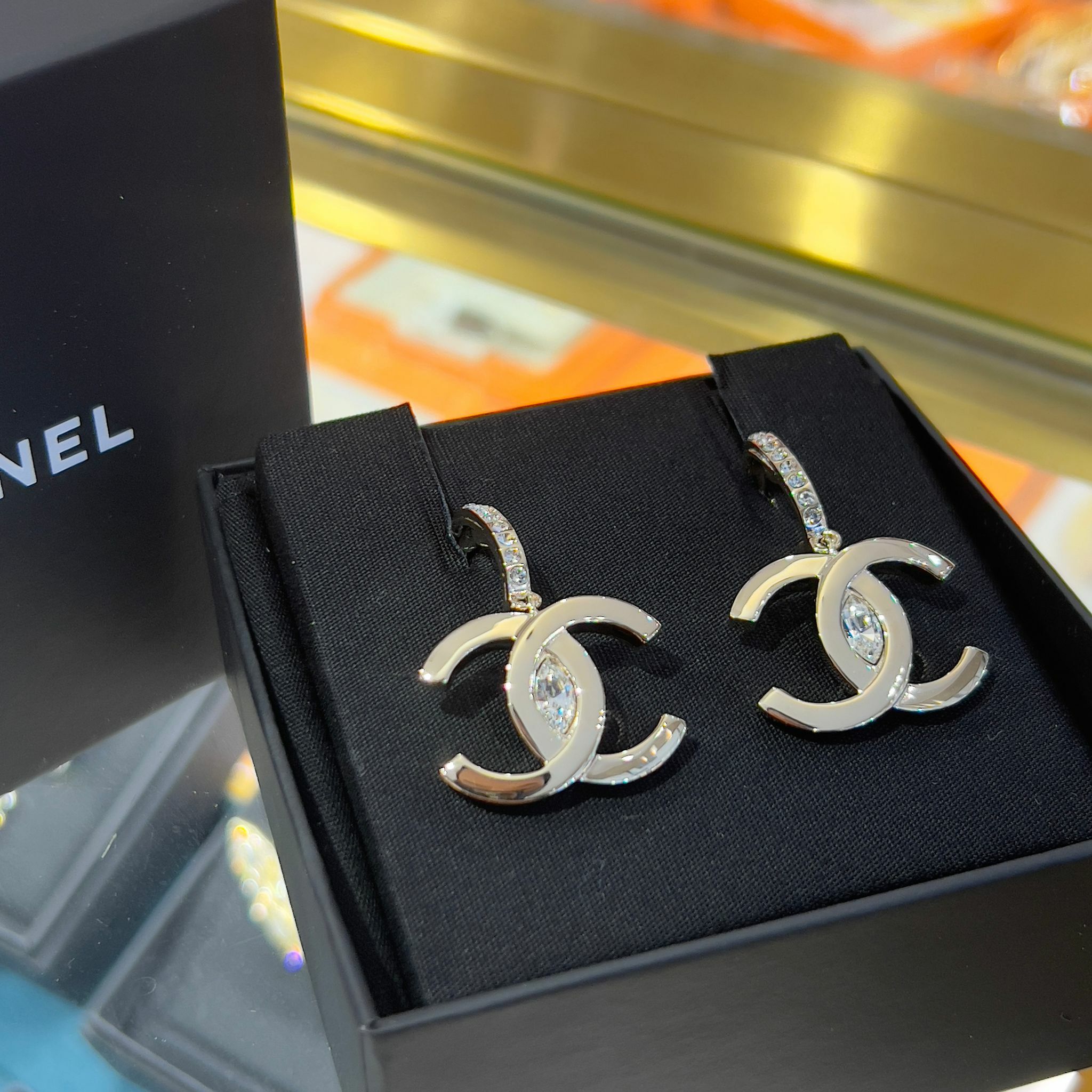 全新 CHANEL耳環 水鑽銀色大CC LOGO垂吊 ABA687 #BRAND NEW #香榭站正品