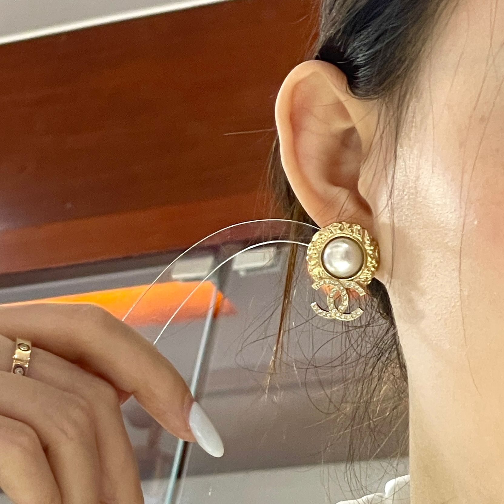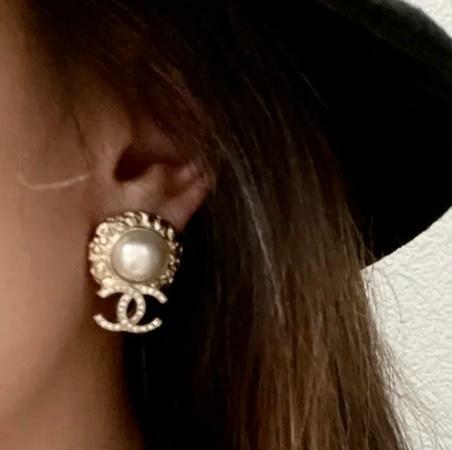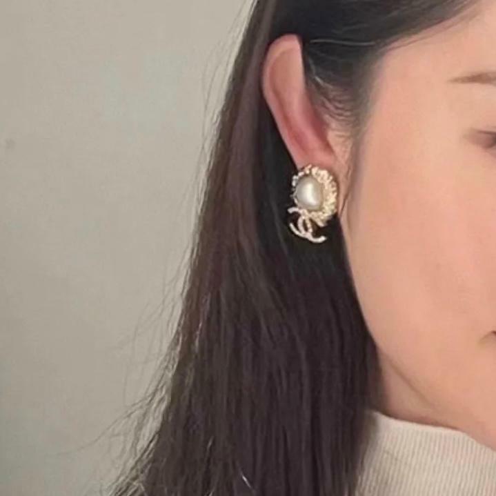 全新CHANEL耳環 金色圓形珍珠 / 垂吊水晶CC LOGO #BRAND NEW #香榭站正品