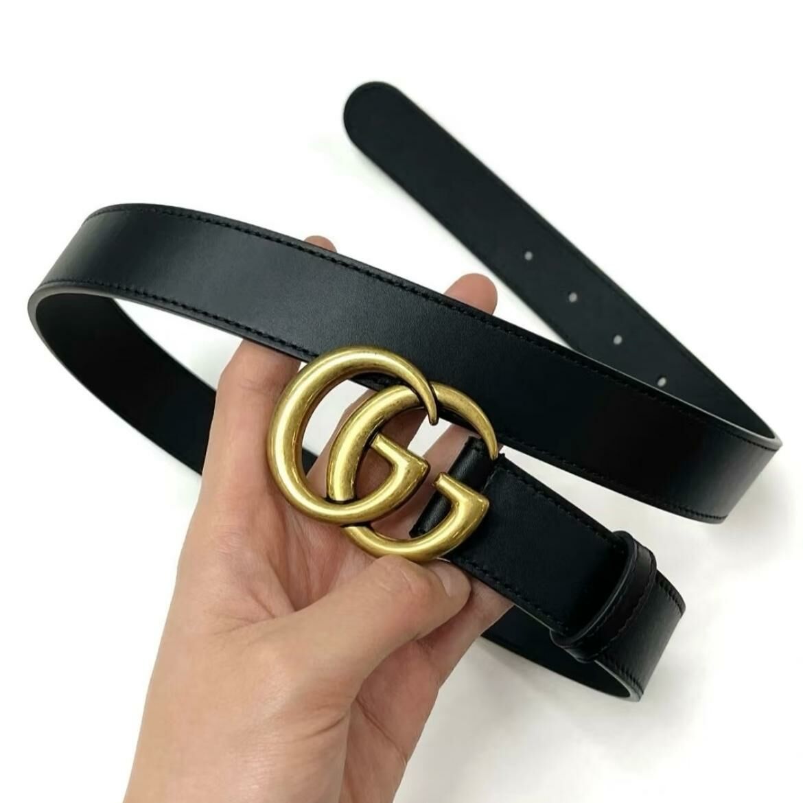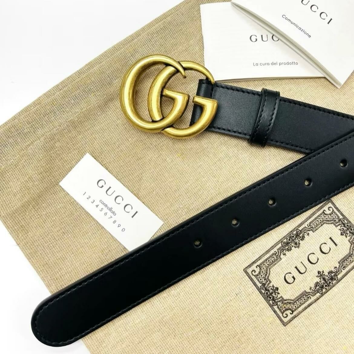 全新GUCCI皮帶 寬4CM 95碼 397660 AP00T 1000 黑色光滑牛皮 雙G復古金扣 #BRAND NEW #香榭站正品