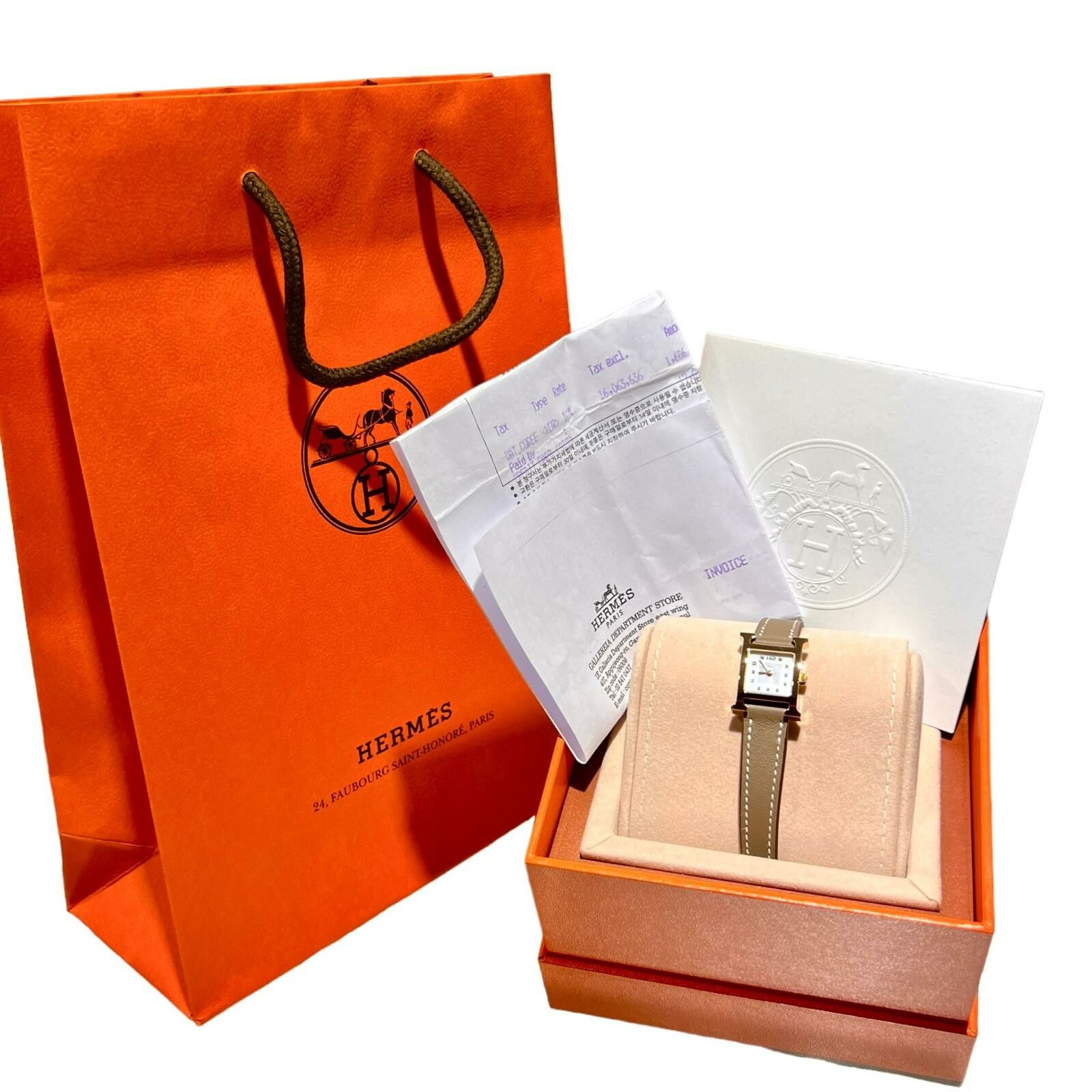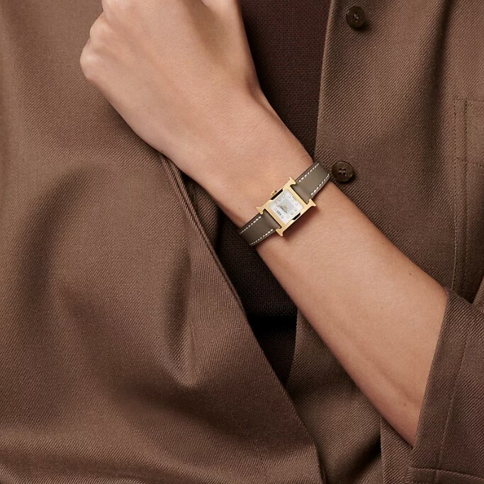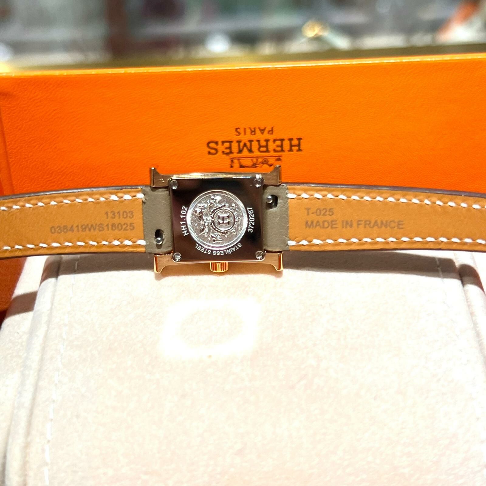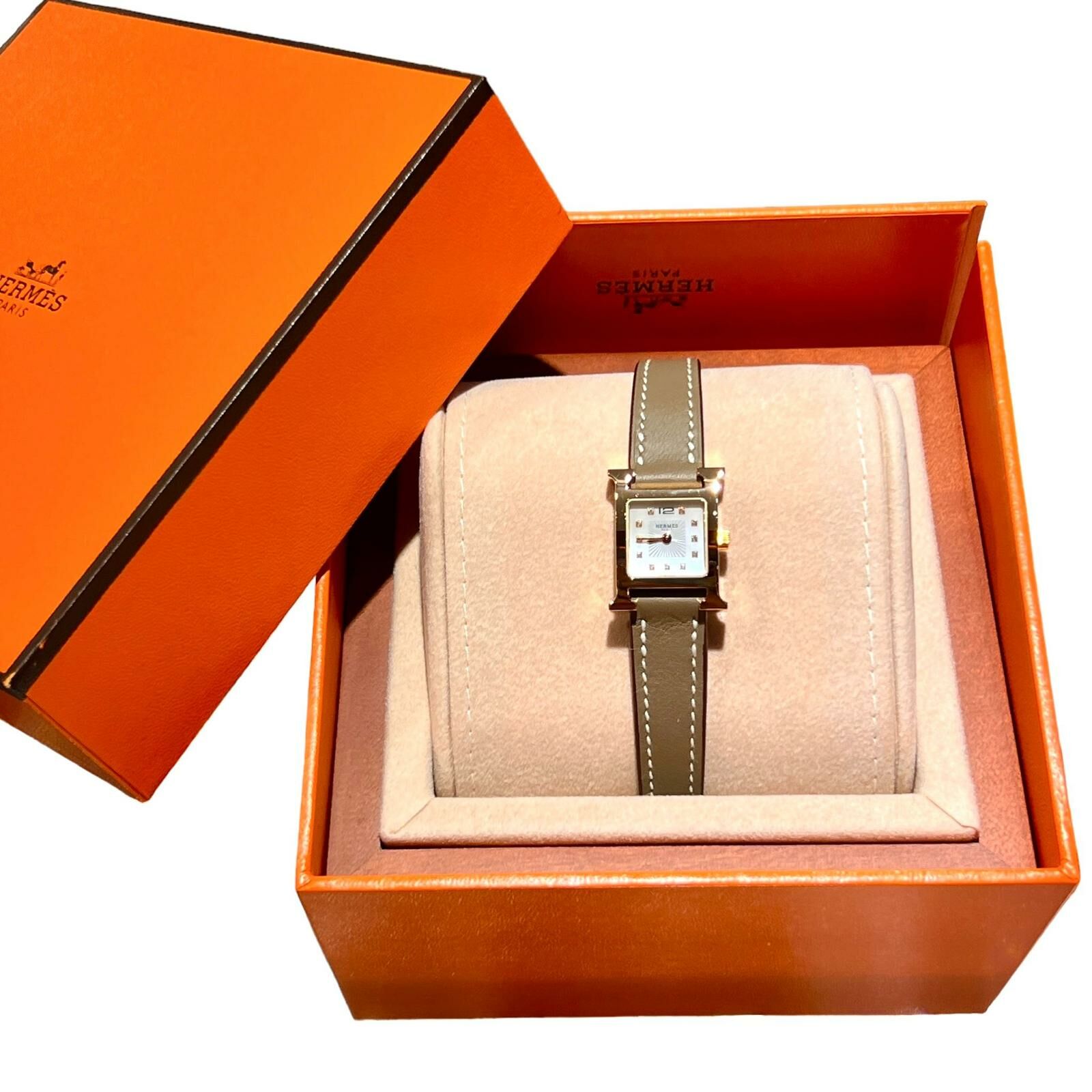 全新HERMES手錶21mm W057749WW00 大象灰SWIFT皮錶帶/玫瑰金扣 鑽石鑲嵌 Heure H watch #BRAND NEW #香榭站正品