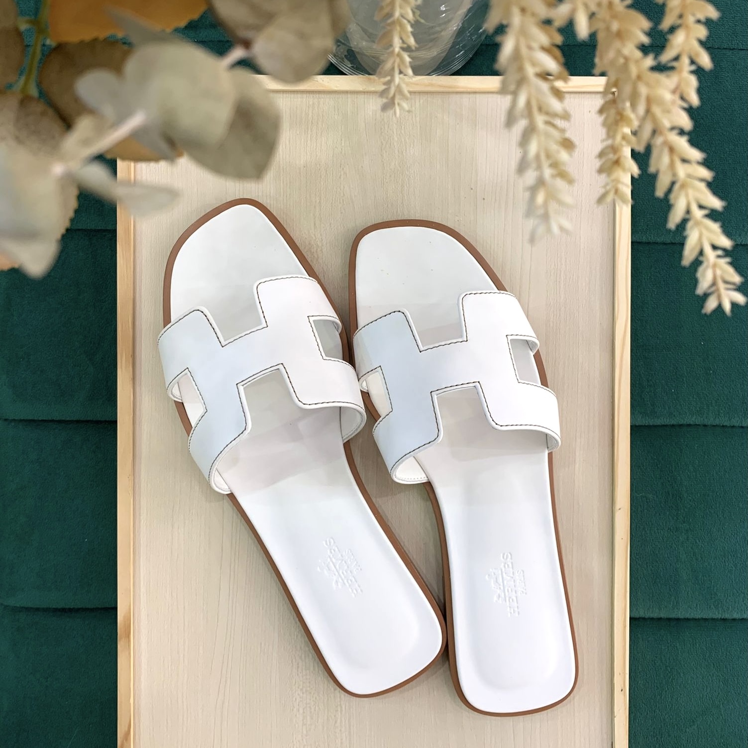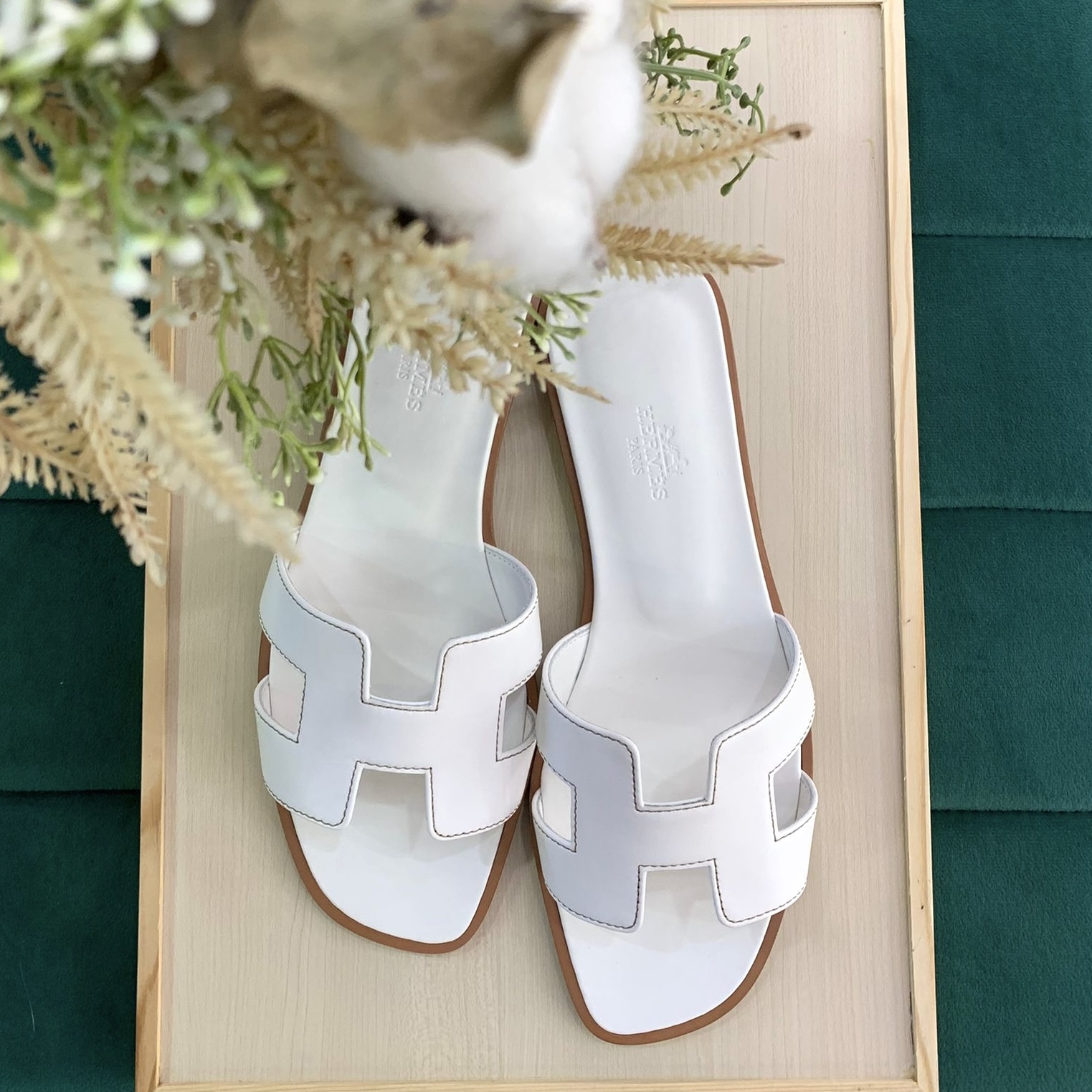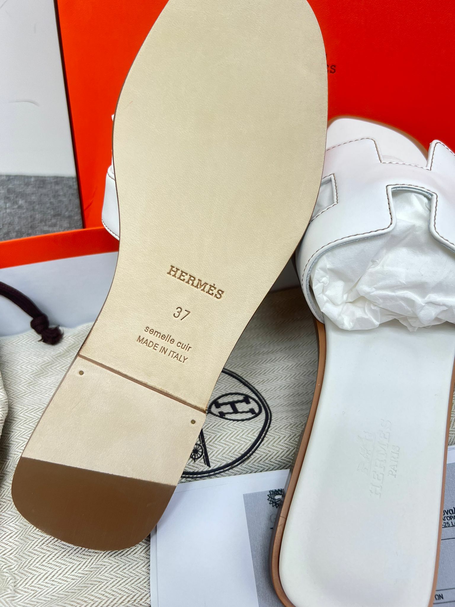 全新HERMES拖鞋 37碼 平底 白色牛皮Oran sandal #BRAND NEW #香榭站正品