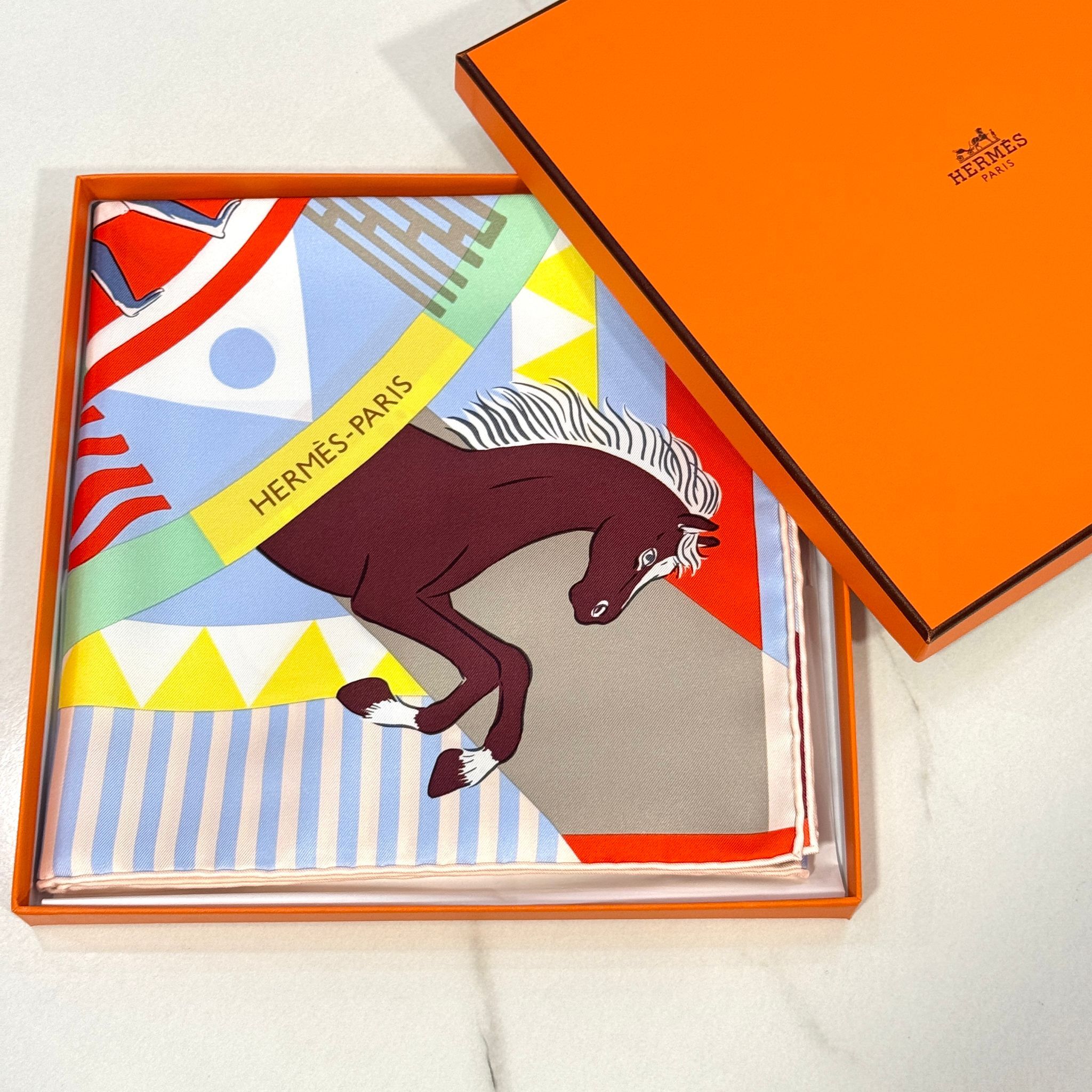 全新HERMES絲巾90x90cm H004206S 09 動物馬戲團圖案 天藍色/綠色/紅色 Le Carrousel du Tigre Royal Scarf 90 #BRAND NEW #香榭站正品