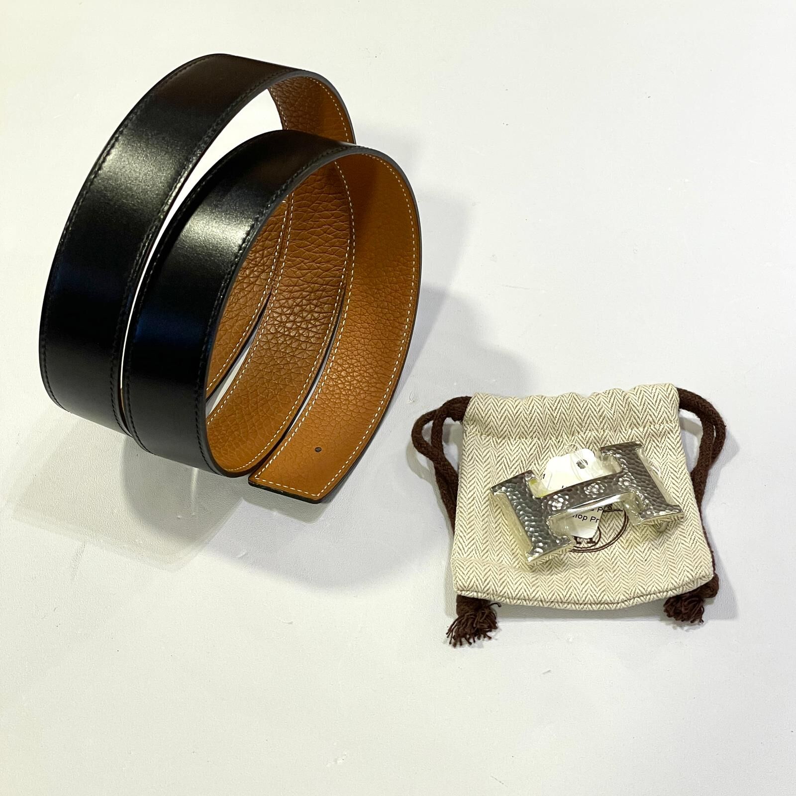 本月特價!!! 全新愛馬士皮帶 85碼, 32mm, 黑色SWIFT,金棕TOGO,雙面腰帶, 銀色石卵紋H扣, HERMES BELT, #BRAND NEW #香榭站正品