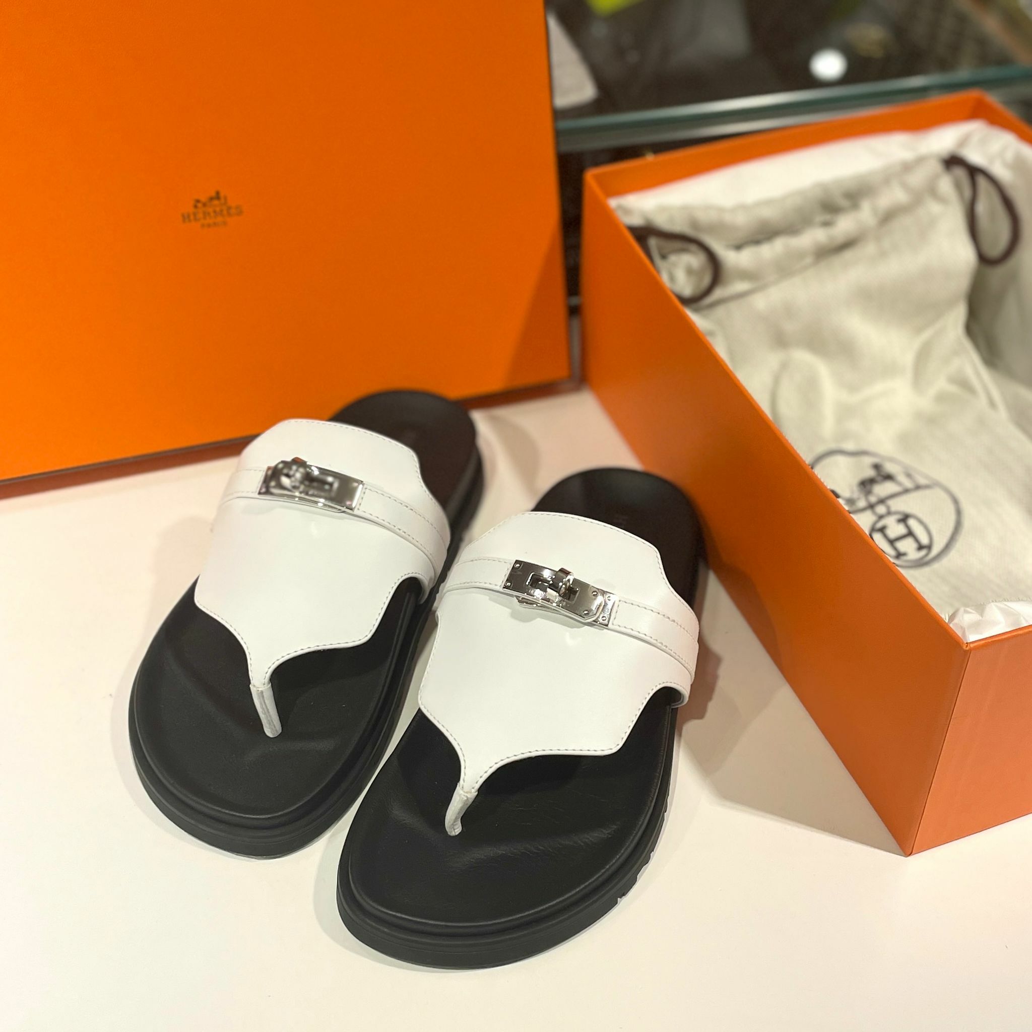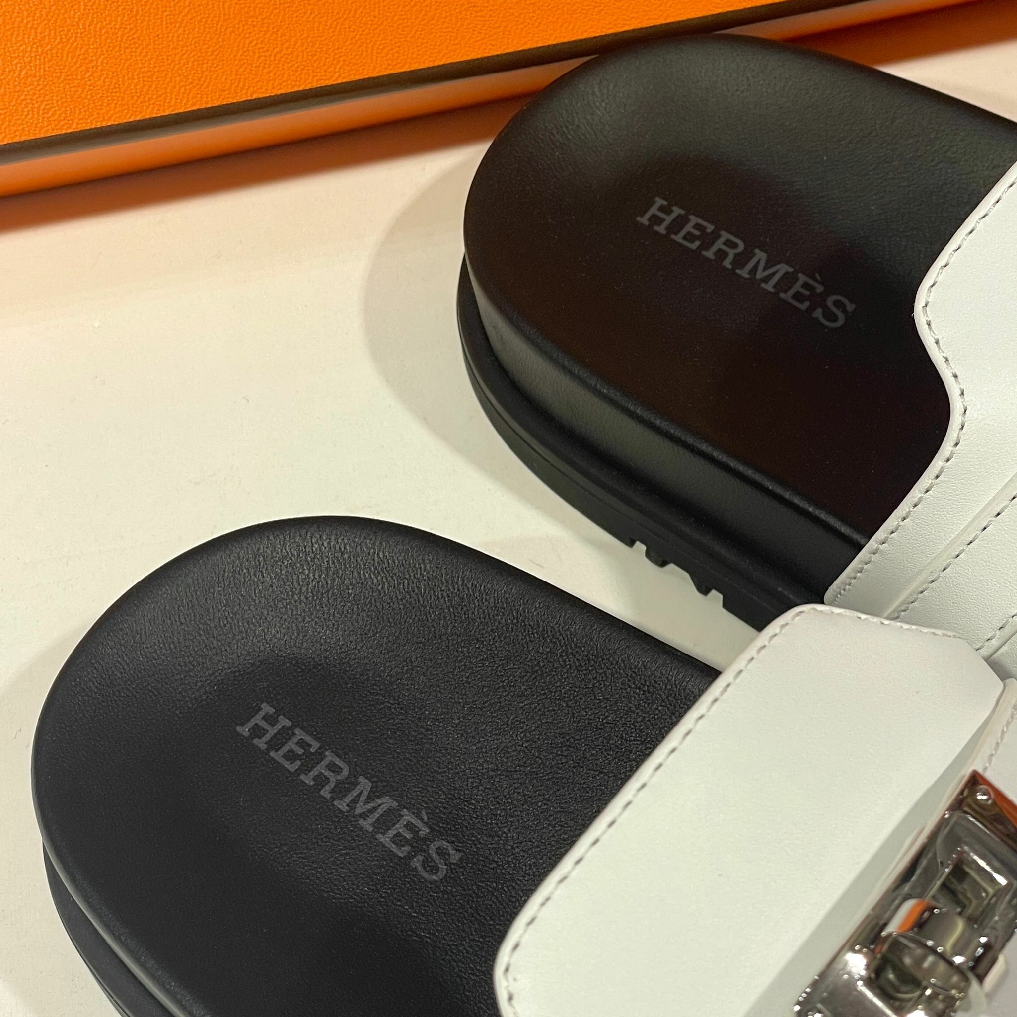全新HERMES KELLY拖鞋 36.5碼 H221074Z 黑白色/防水PVC 厚底 Empire sandal #BRAND NEW #香榭站正品