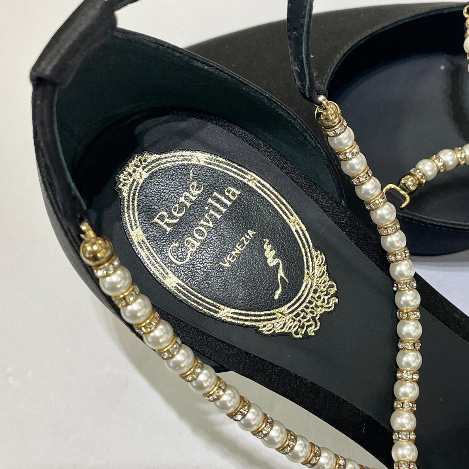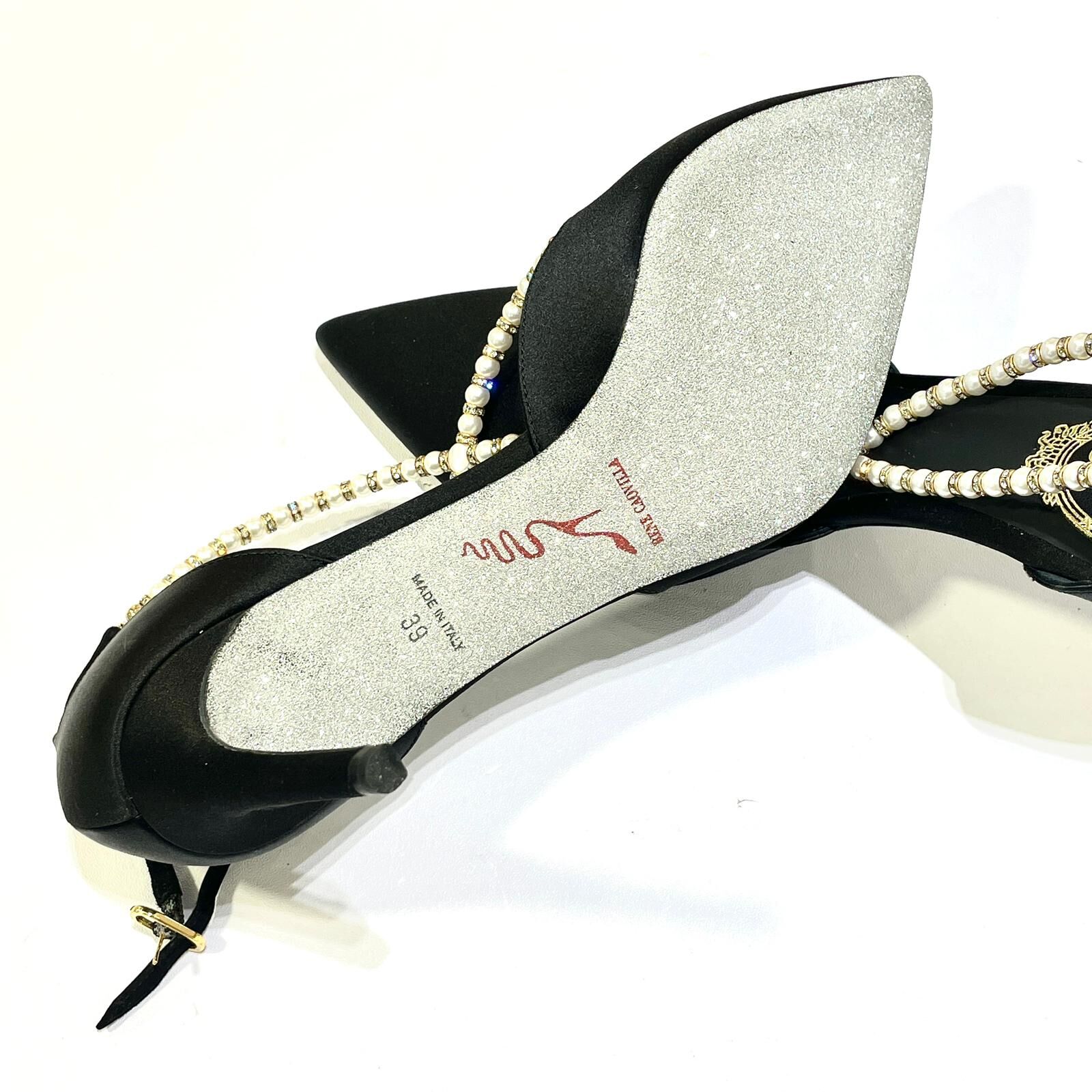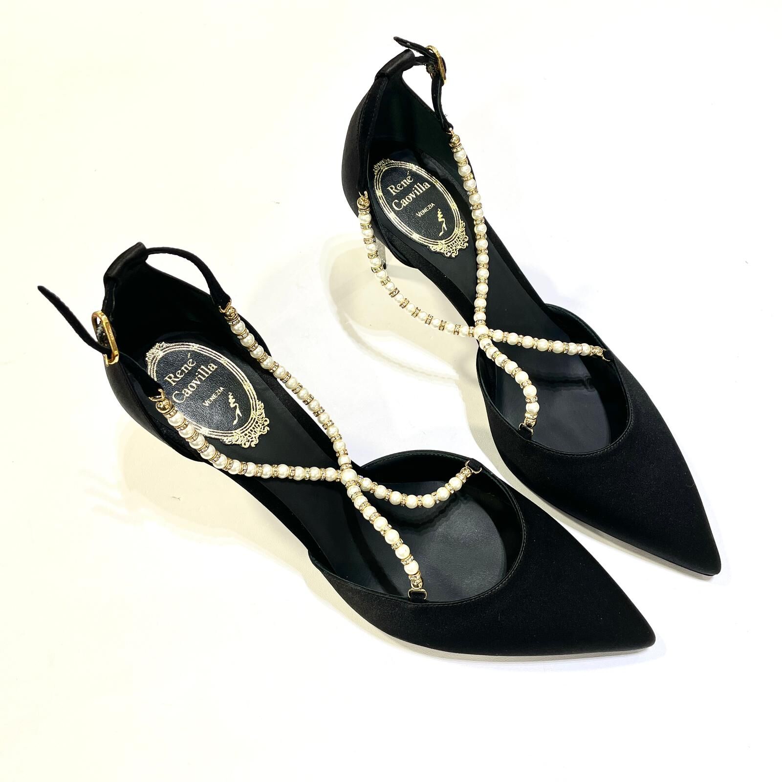 本週出位價❣️全新RENE CAOVILLA高跟鞋 39碼 黑色絲絹珍珠水鑽 #BRAND NEW #香榭站正品