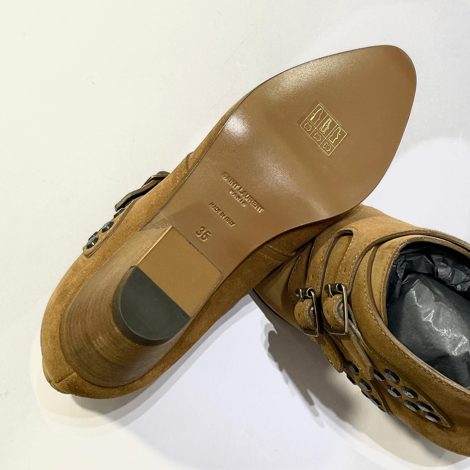 [尺碼] : Size 35碼,鞋長 22.5cm,高跟5cm,鞋掌闊 12cm,筒圍 32cm,筒長 10cm