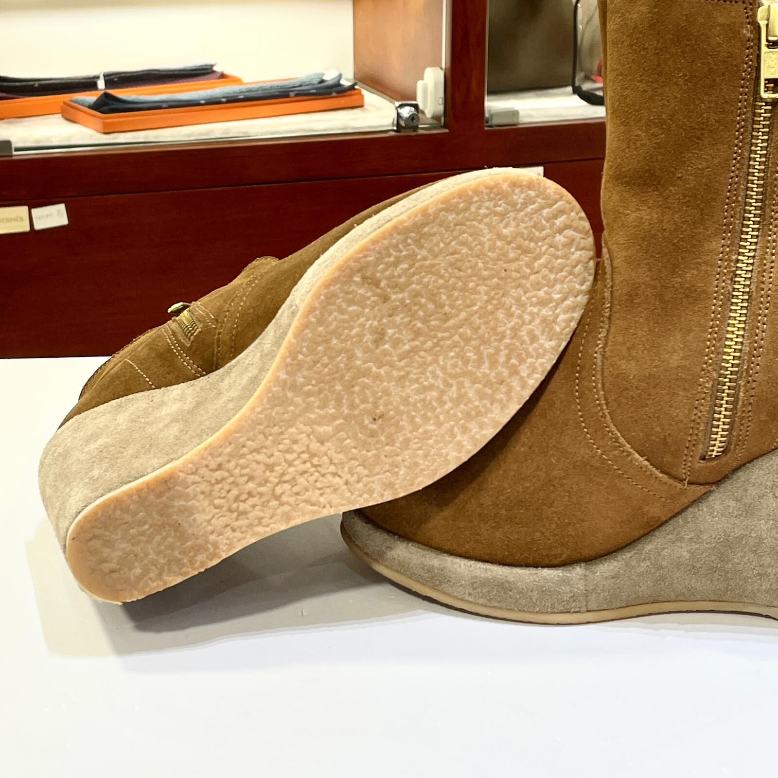 [尺碼] : Size 35碼, 鞋長 21.5cm, 高跟9.5 cm, 鞋掌闊 8 cm, 筒圍 27 cm, 筒長 12 cm