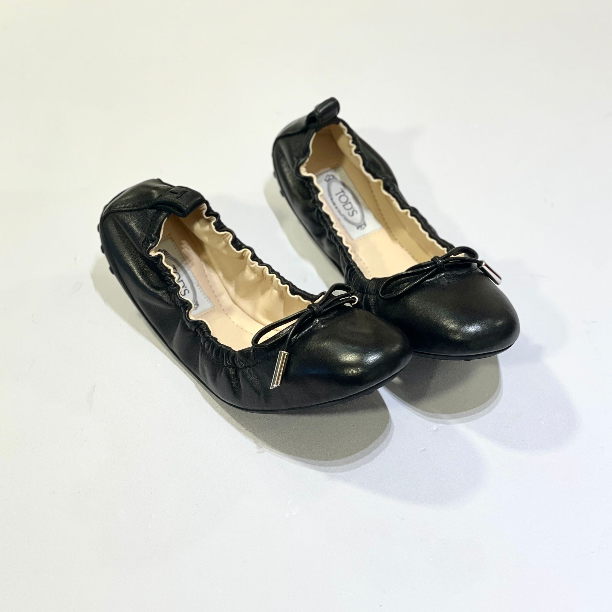只有35碼~全球最抵!!! 全新TOD'S芭蕾舞鞋, 黑色超柔軟羊皮蝴蝶結, 托德斯魷魚鞋 #BRAND NEW #香榭站正品