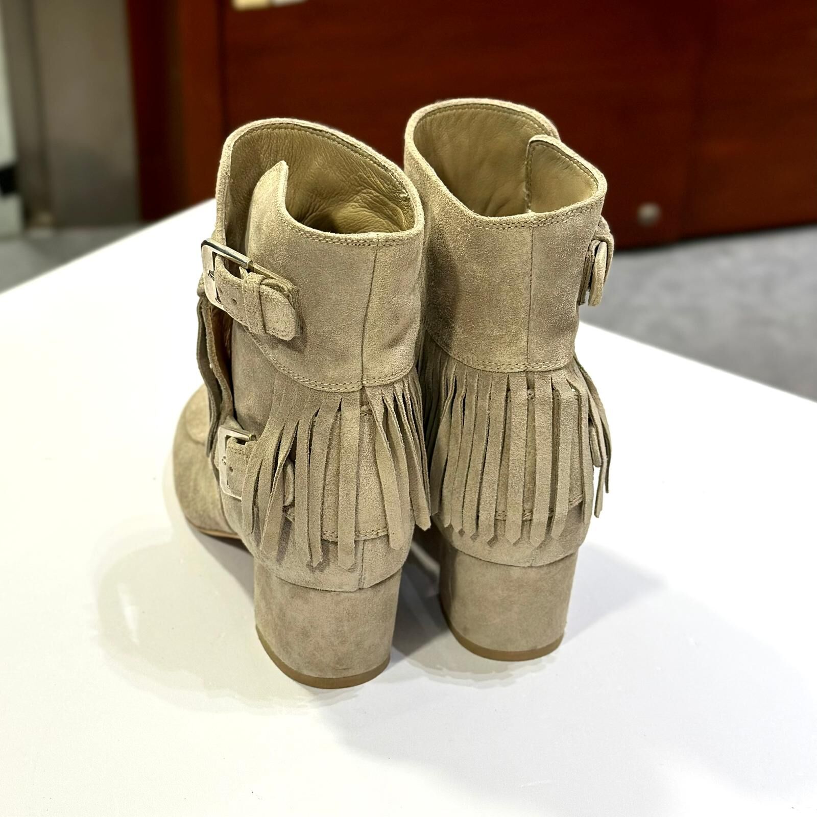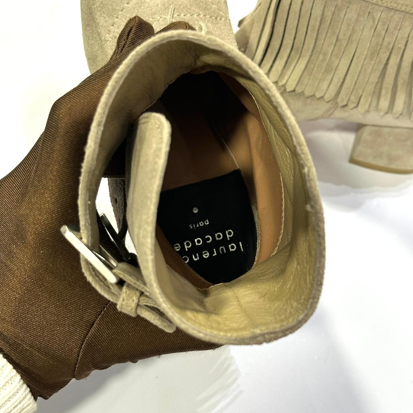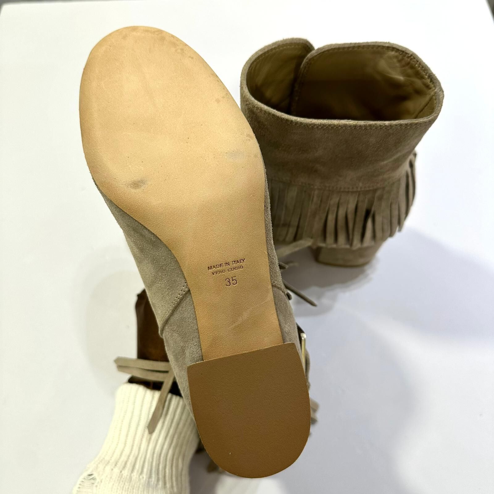 只有35碼~全球最抵!!! 全新Laurence Dacade Paris 短靴 杏綠色洗水麂皮,流蘇BOOTS #BRAND NEW #香榭站正品