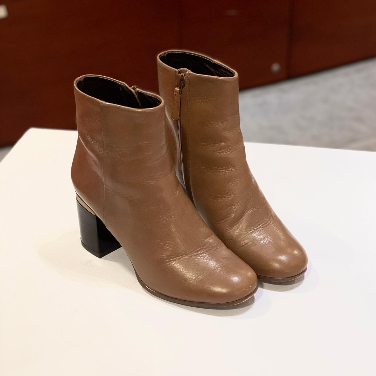只有35碼~超級筍價!!! 95%NEW二手TORY BURCH BOOTS, 奶茶色牛皮, 湯麗柏琦短靴, #香榭站正品