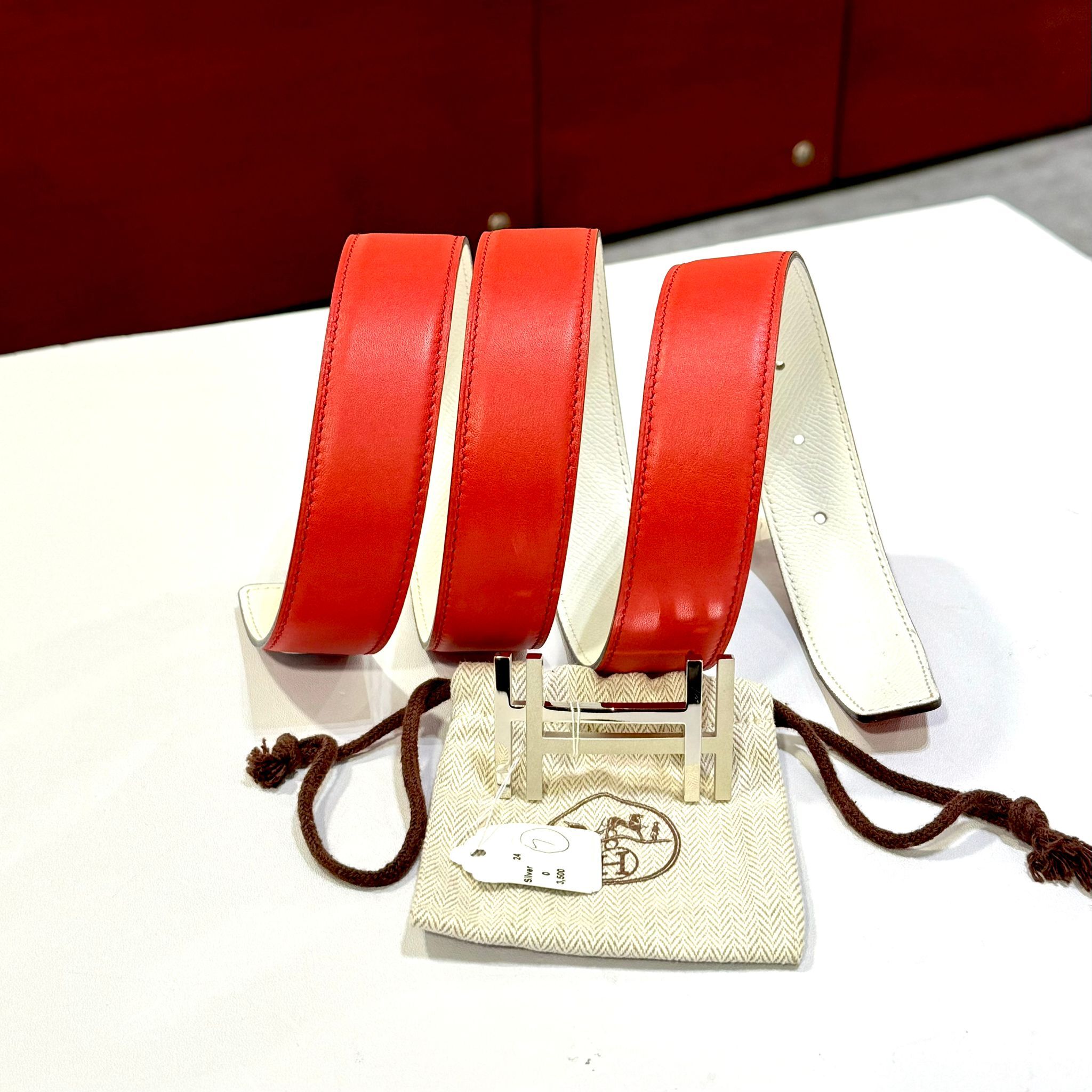 本月特價!!! 全新愛馬士皮帶 100碼, 32mm, 紅色SWIFT, 白色TOGO, 雙面腰帶, 雙層銀色H扣, HERMES BELT #BRAND NEW #香榭站正品