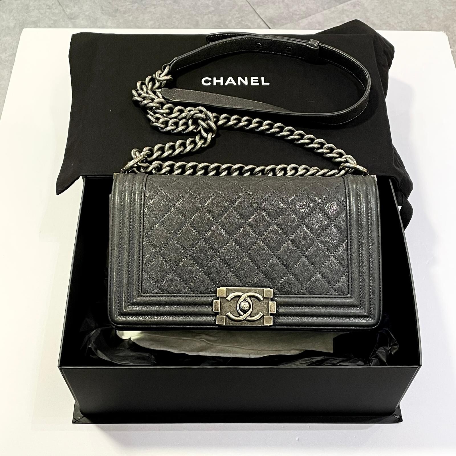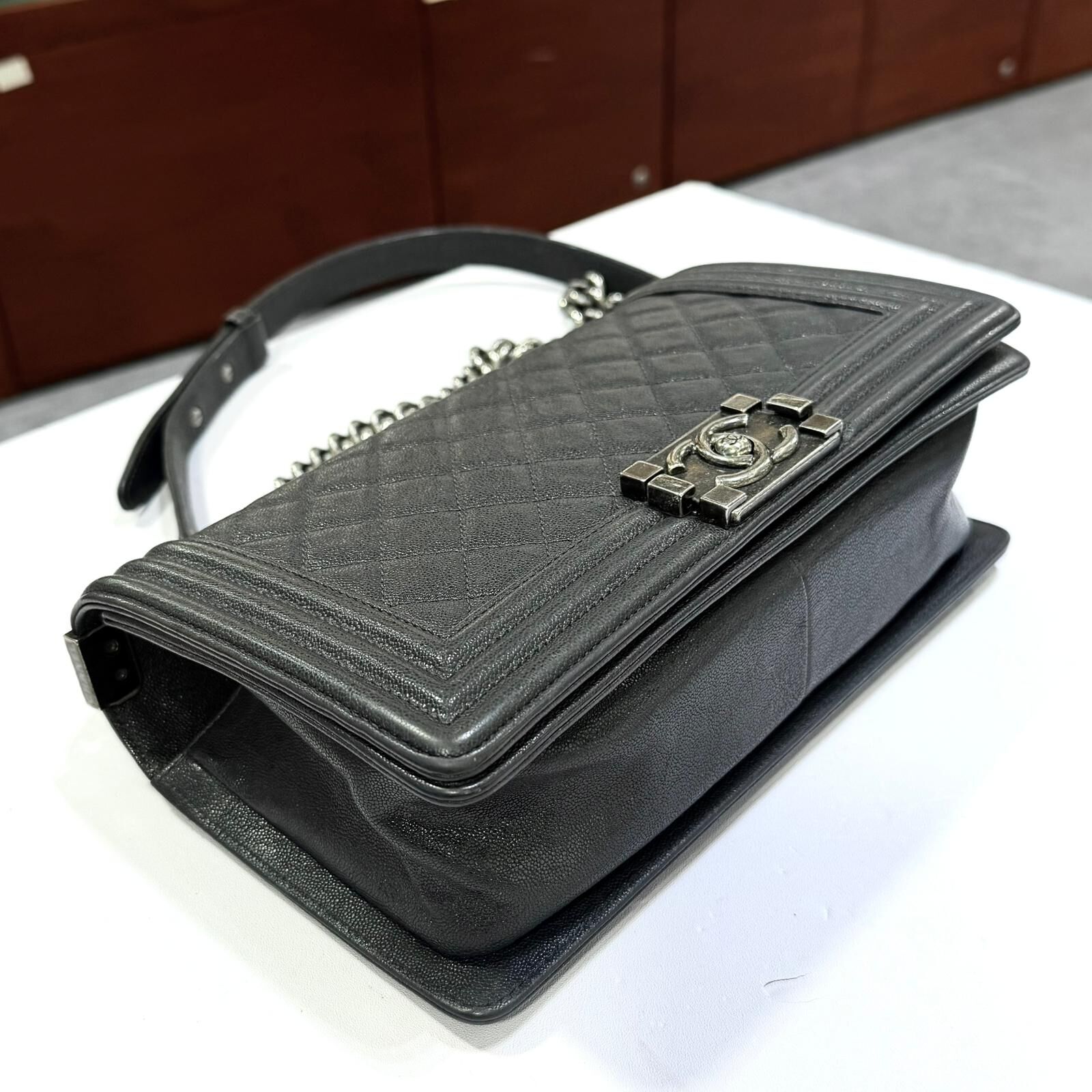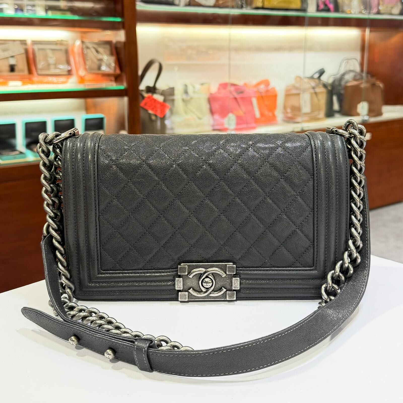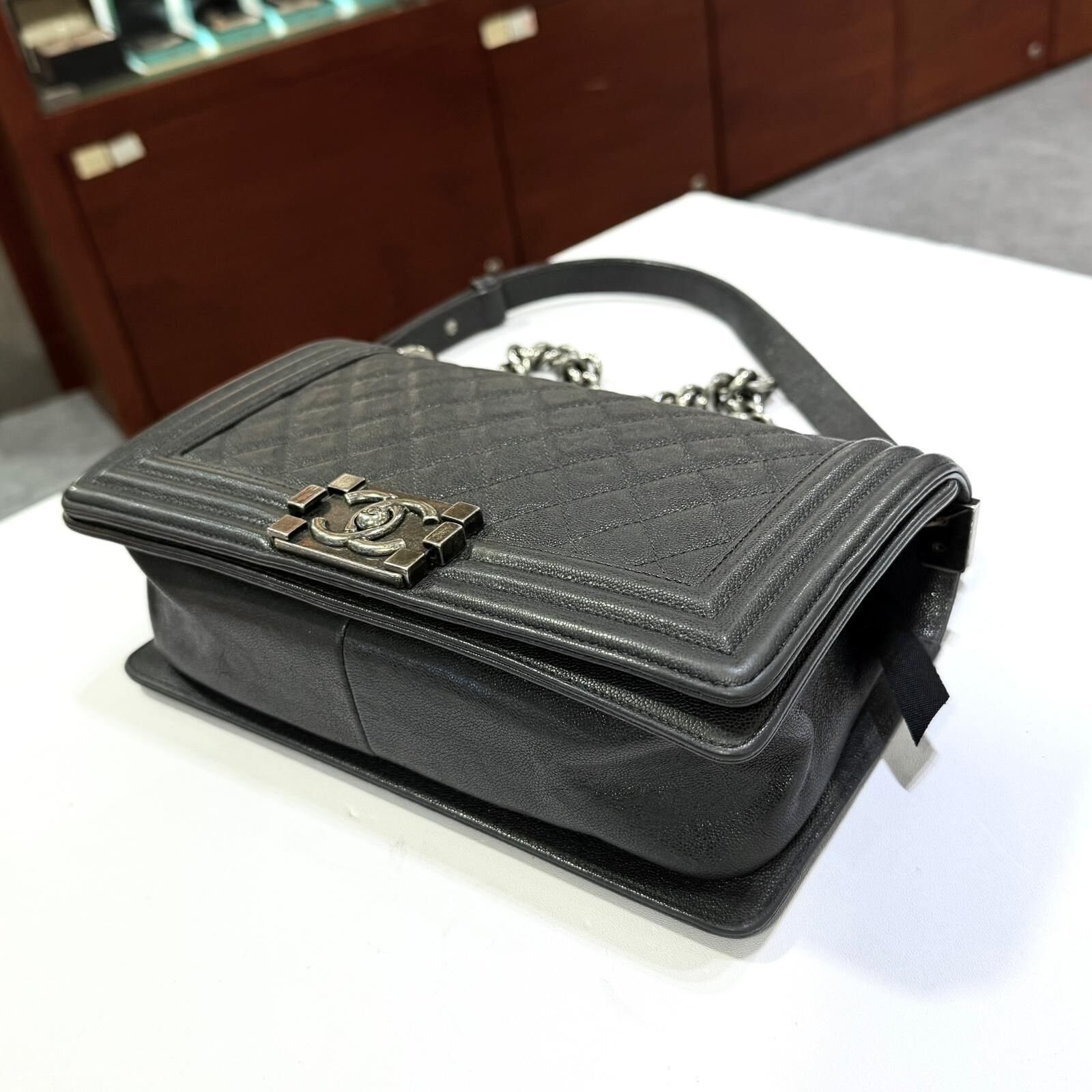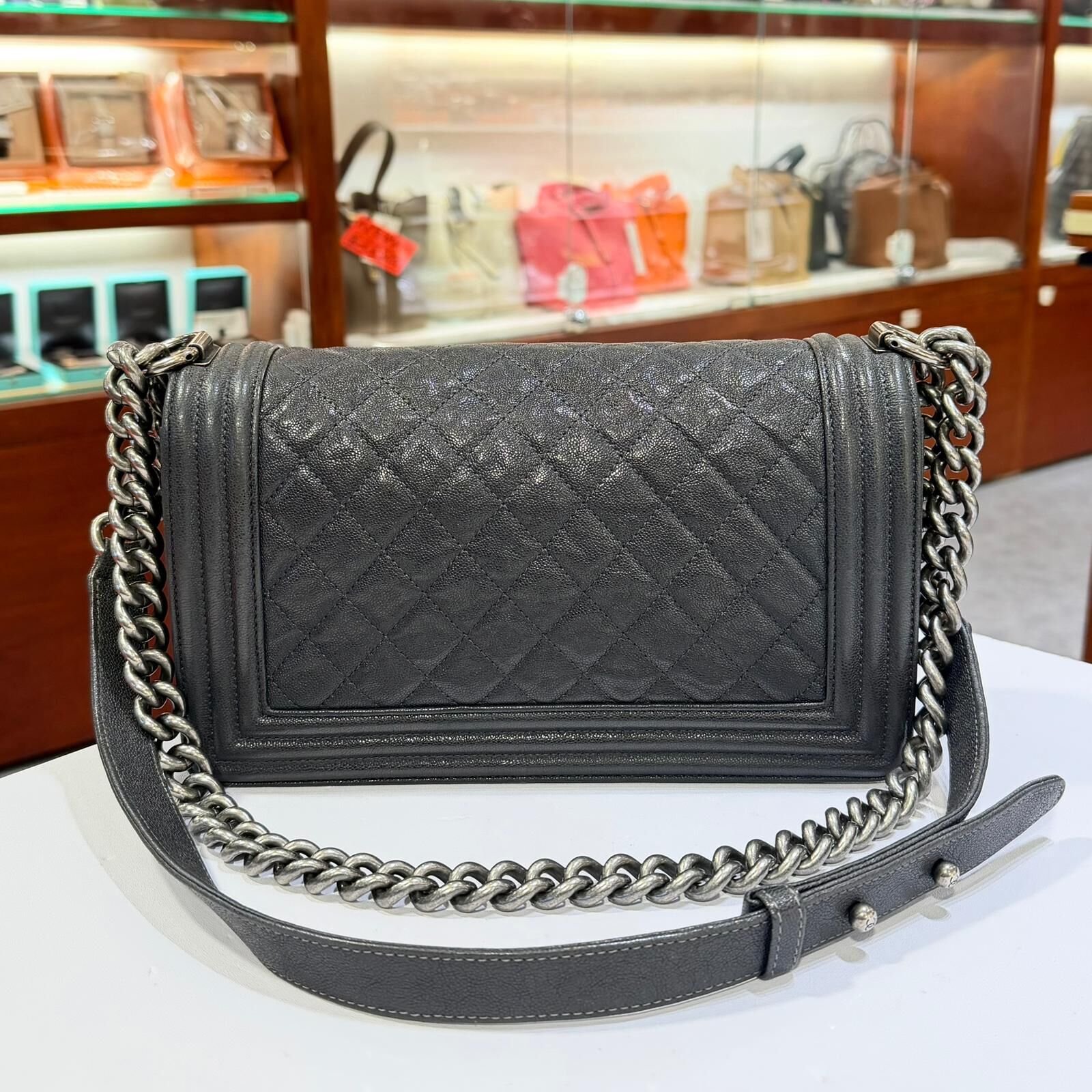 90%NEW二手 BOY CHANEL 25 中碼 灰色荔枝皮復古銀扣 #265開 #兩年免費保養 #香榭站正品