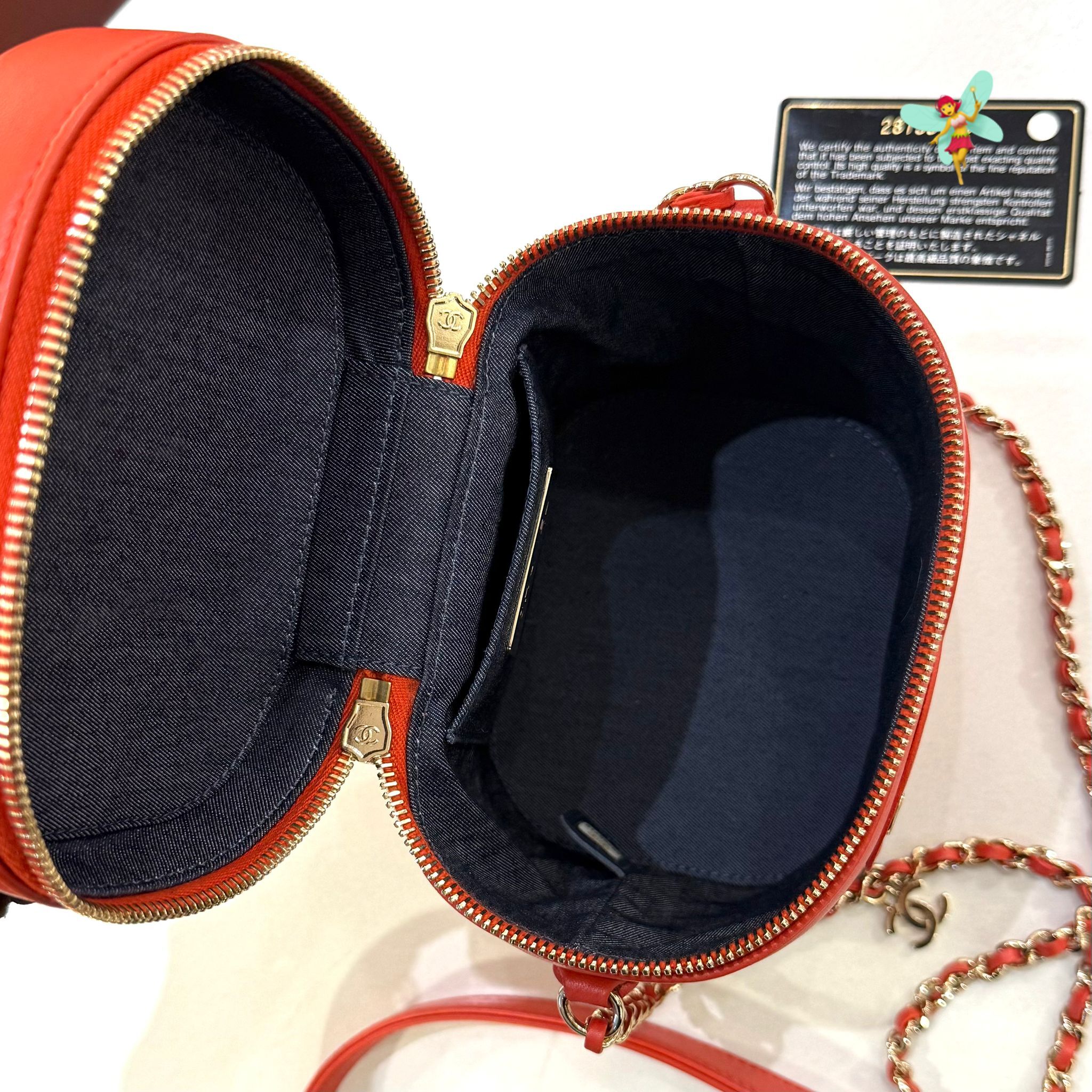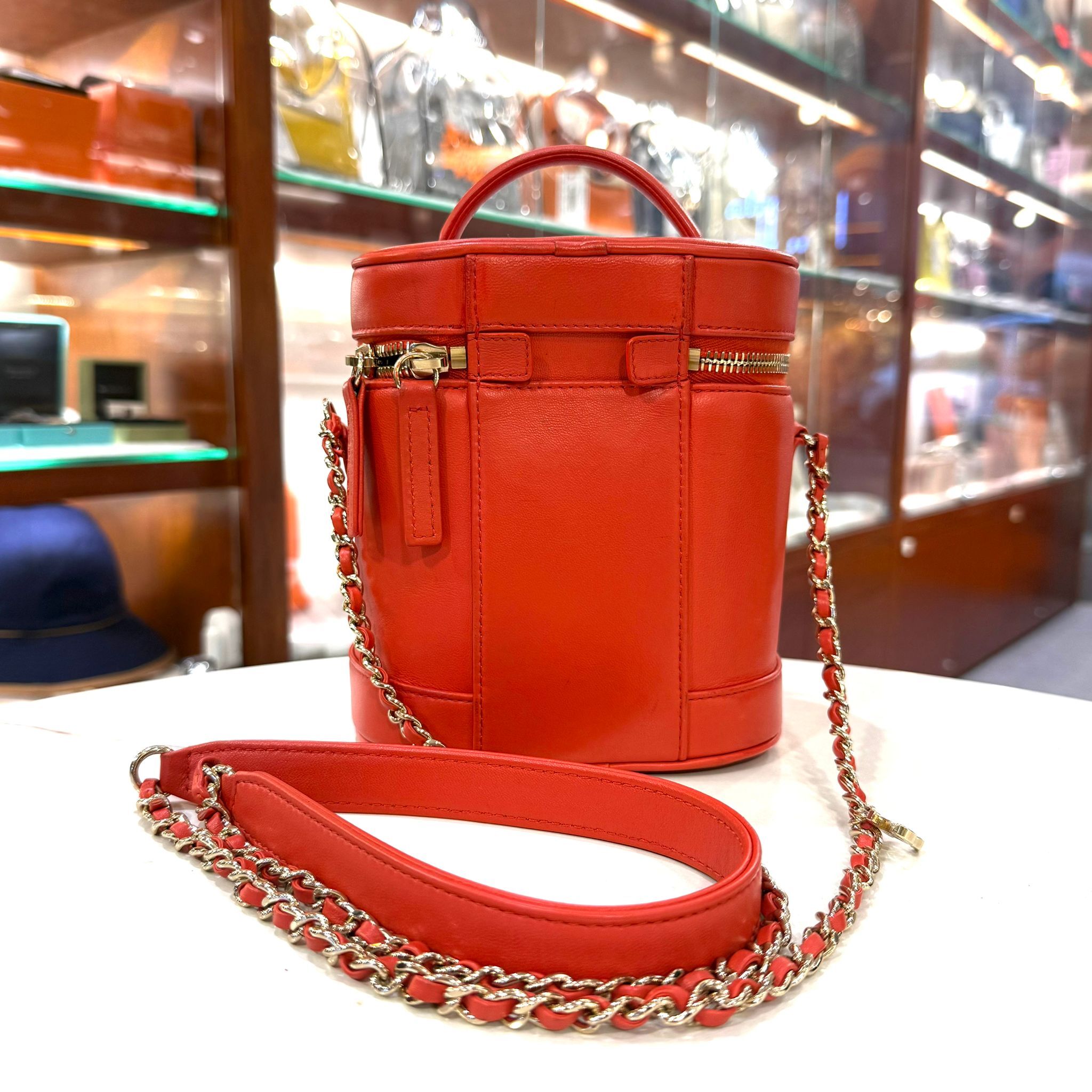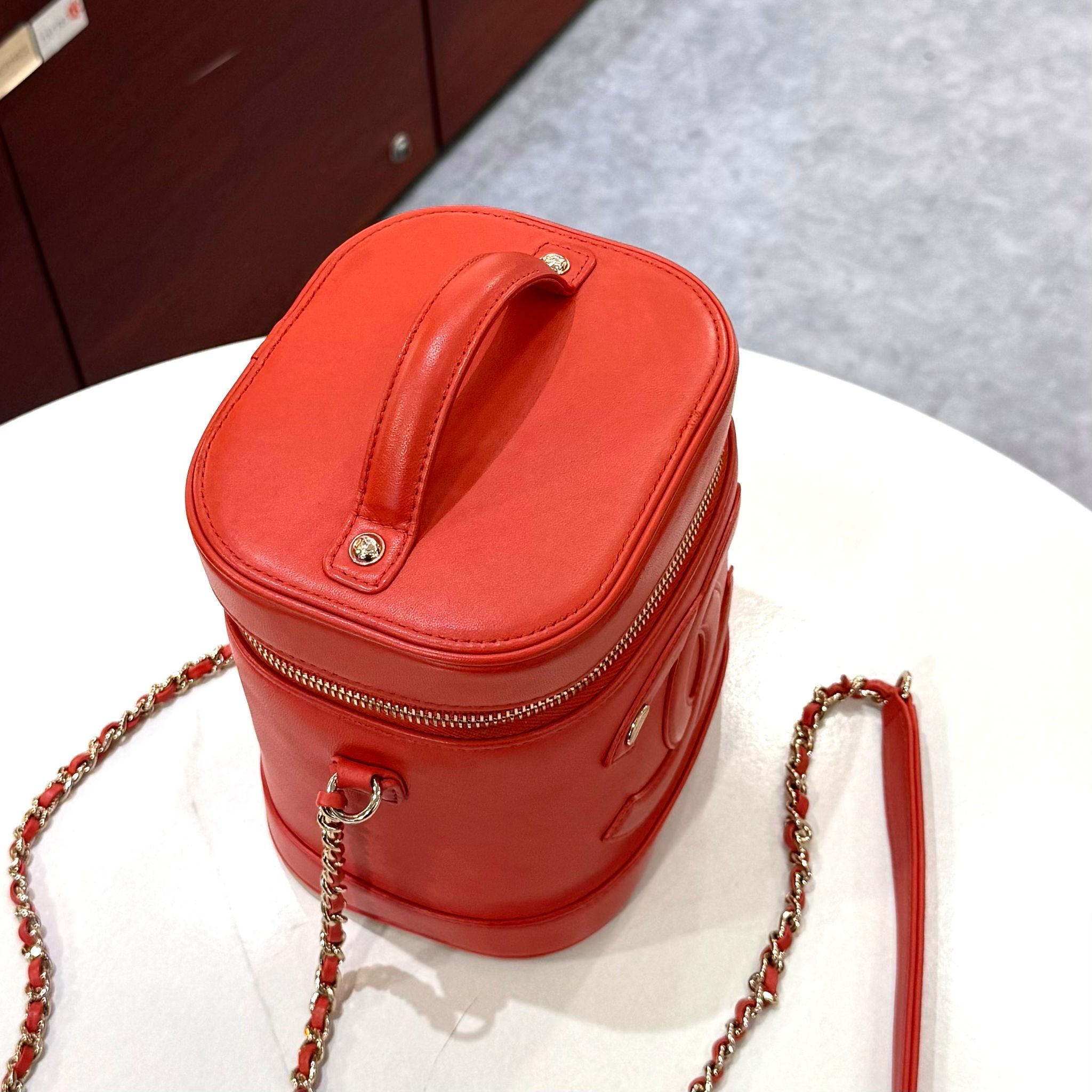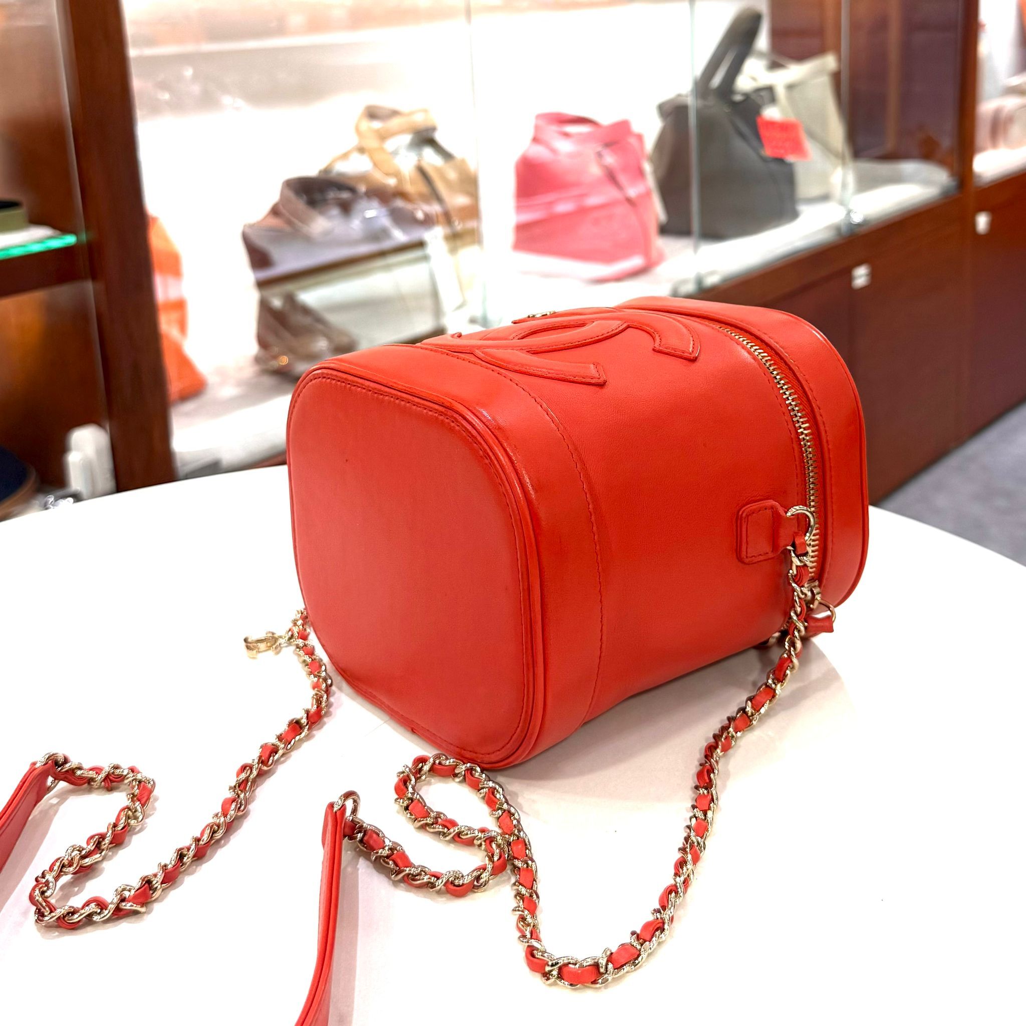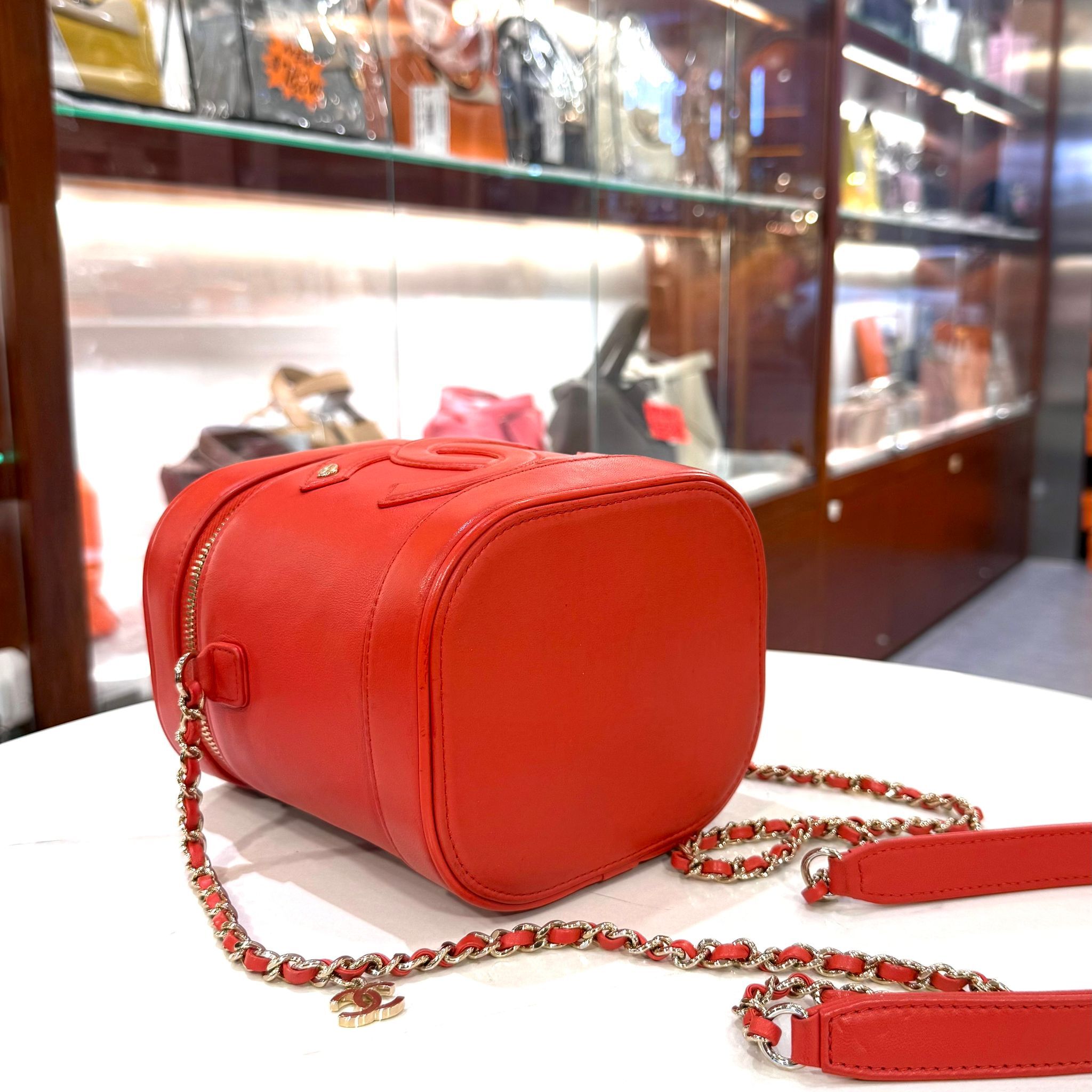 90%NEW二手CHANEL VANITY CASE化妝袋 橙紅色羊皮淡金扣水桶袋 @28開 #兩年免費保養 #香榭站正品