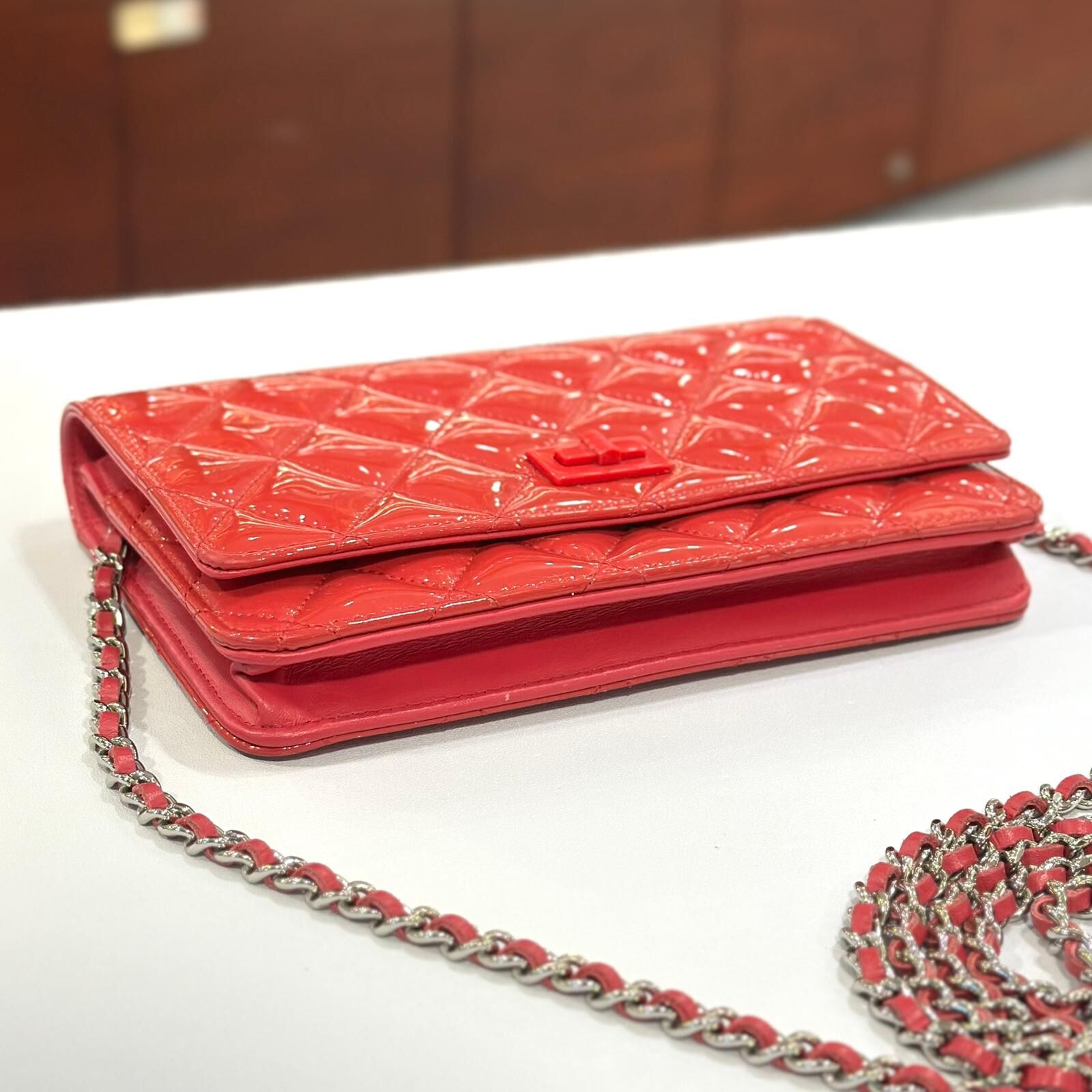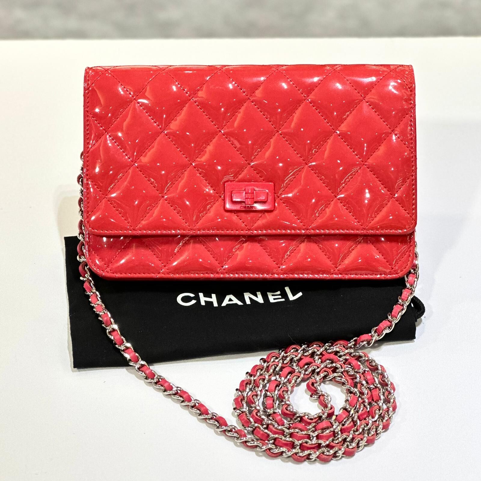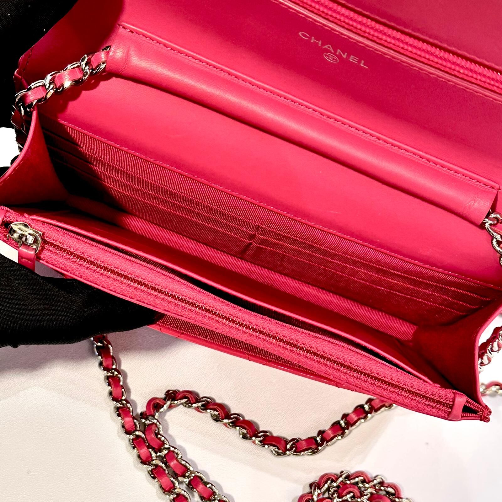 本周特價!!! 95%NEW二手CHANEL WOC 桃紅色漆皮菱格紋 2.55銀鏈 #香榭站正品