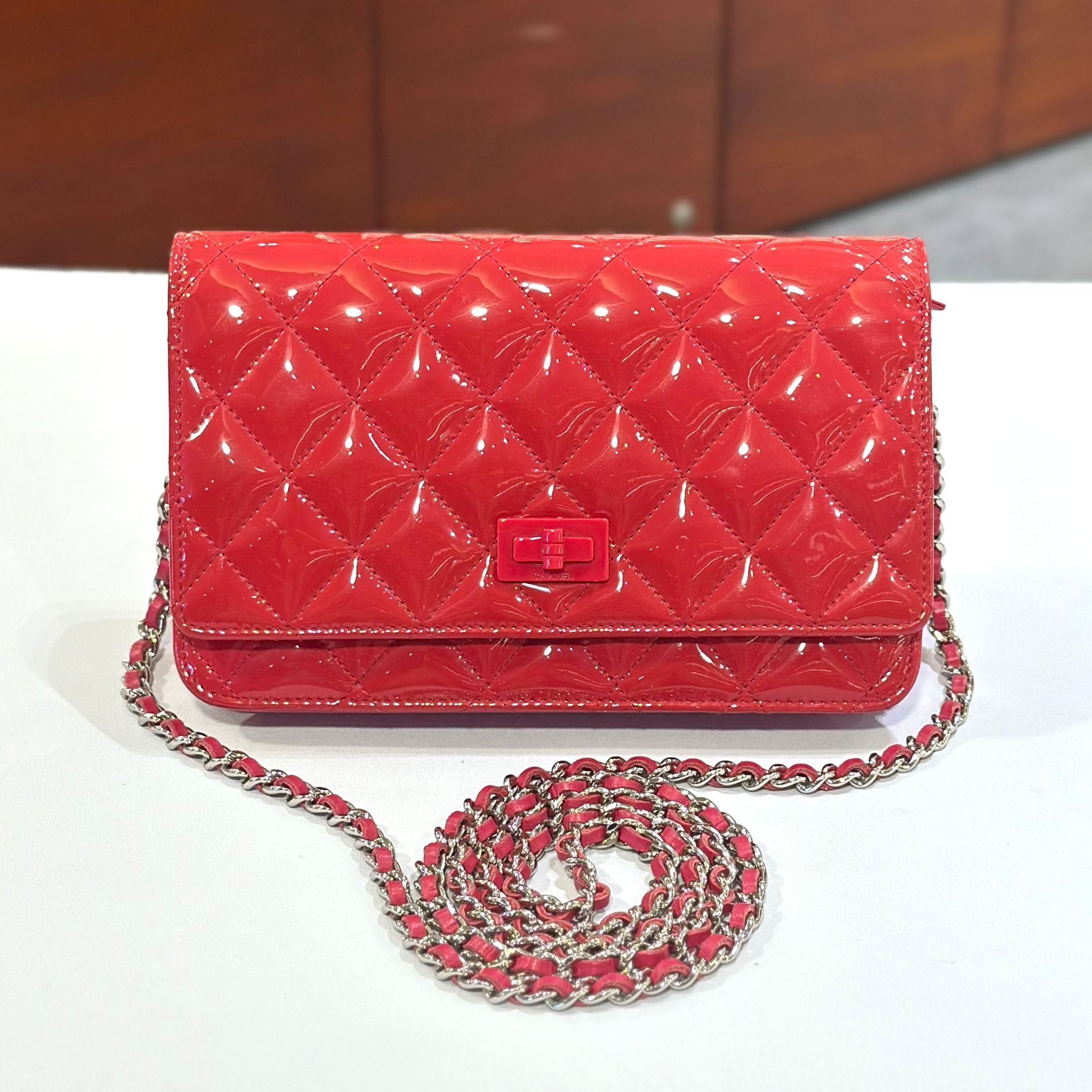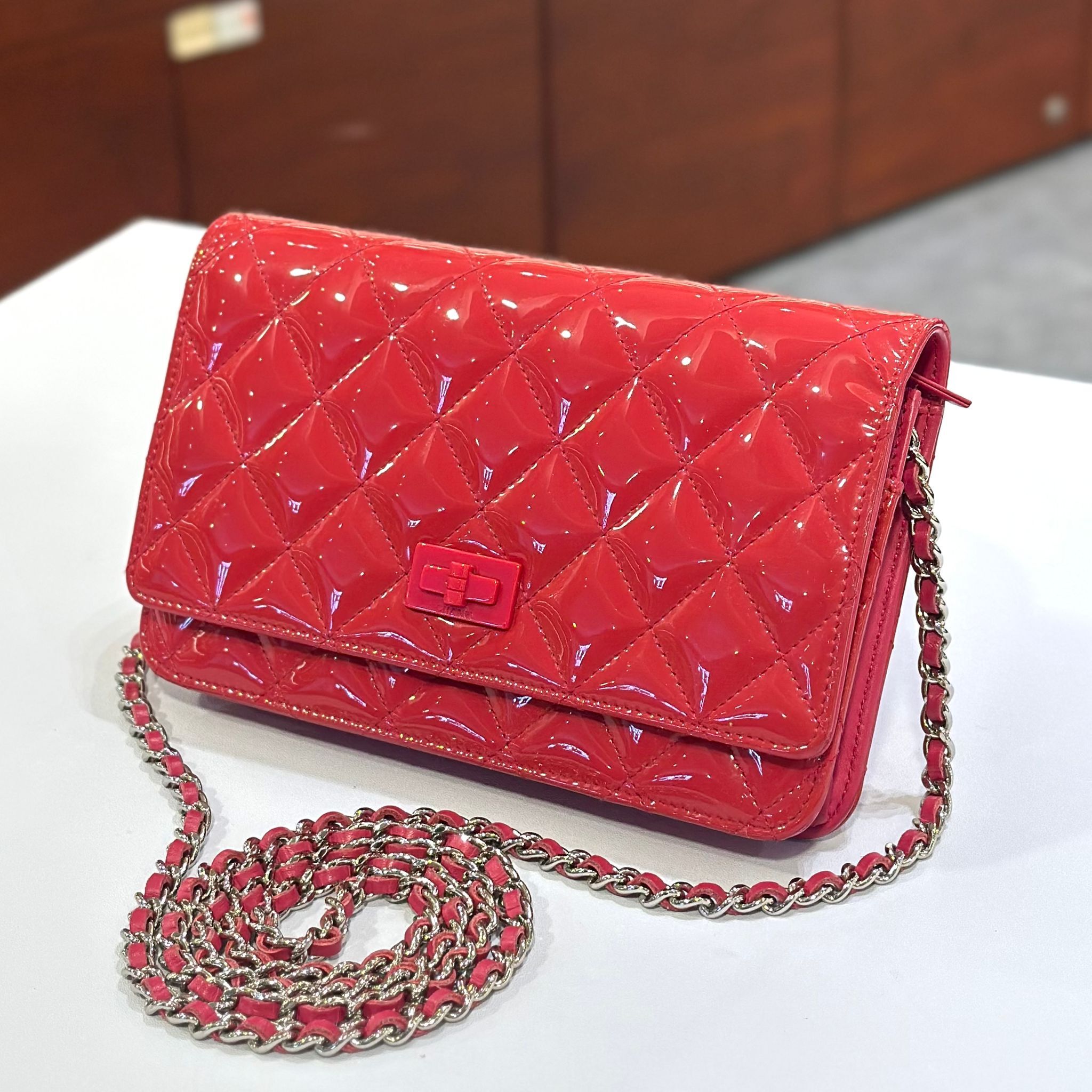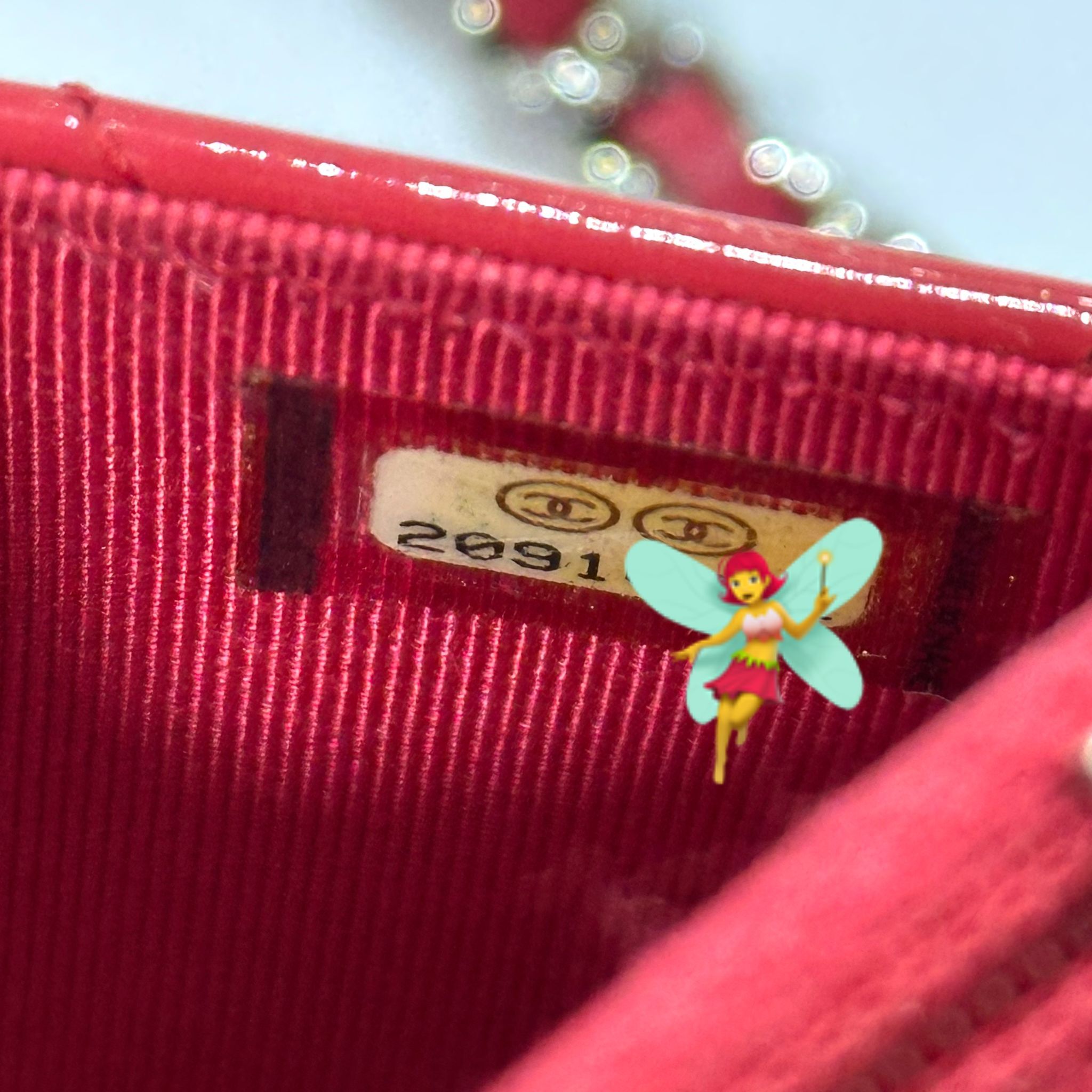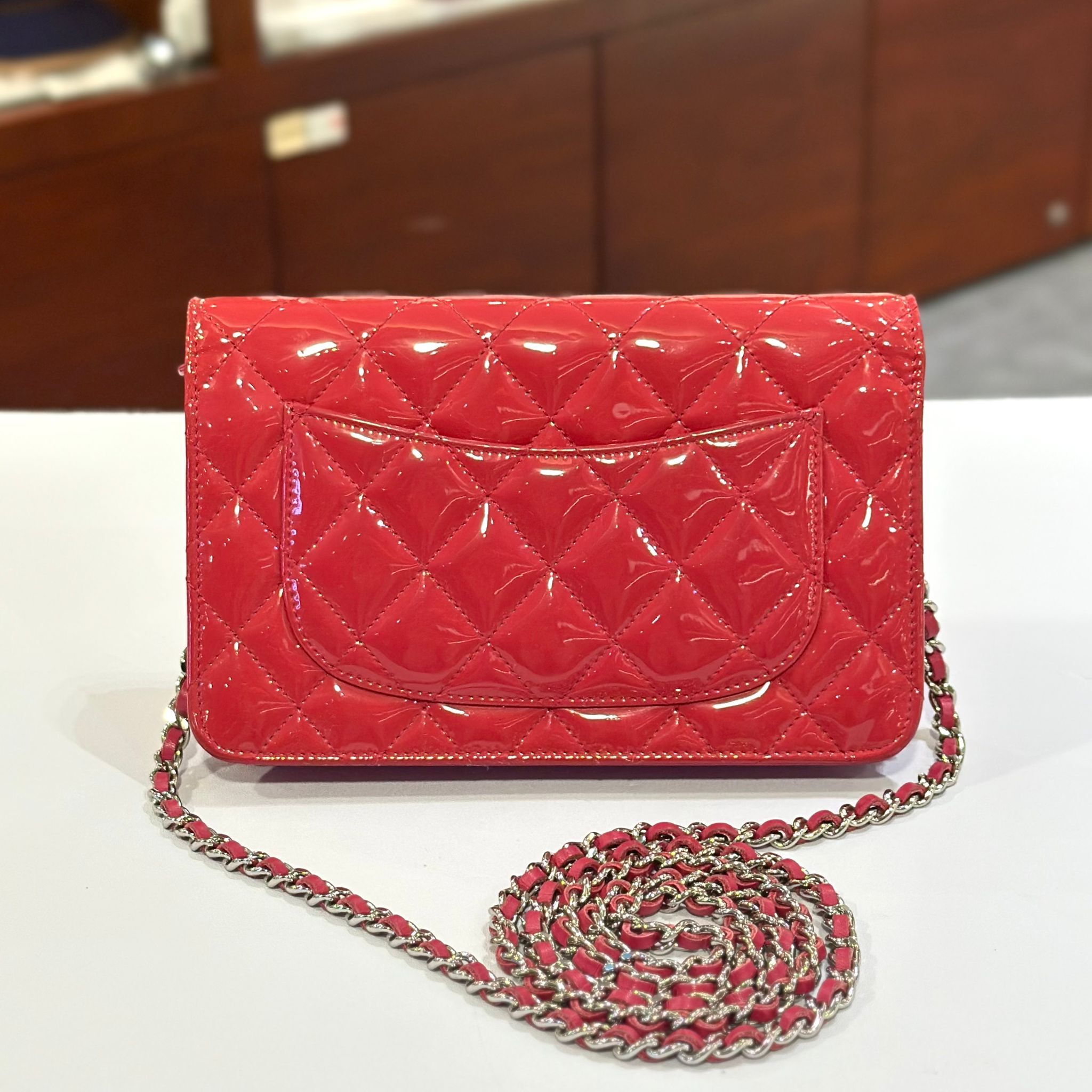 本周特價!!! 95%NEW二手CHANEL WOC 桃紅色漆皮菱格紋 2.55銀鏈 #香榭站正品