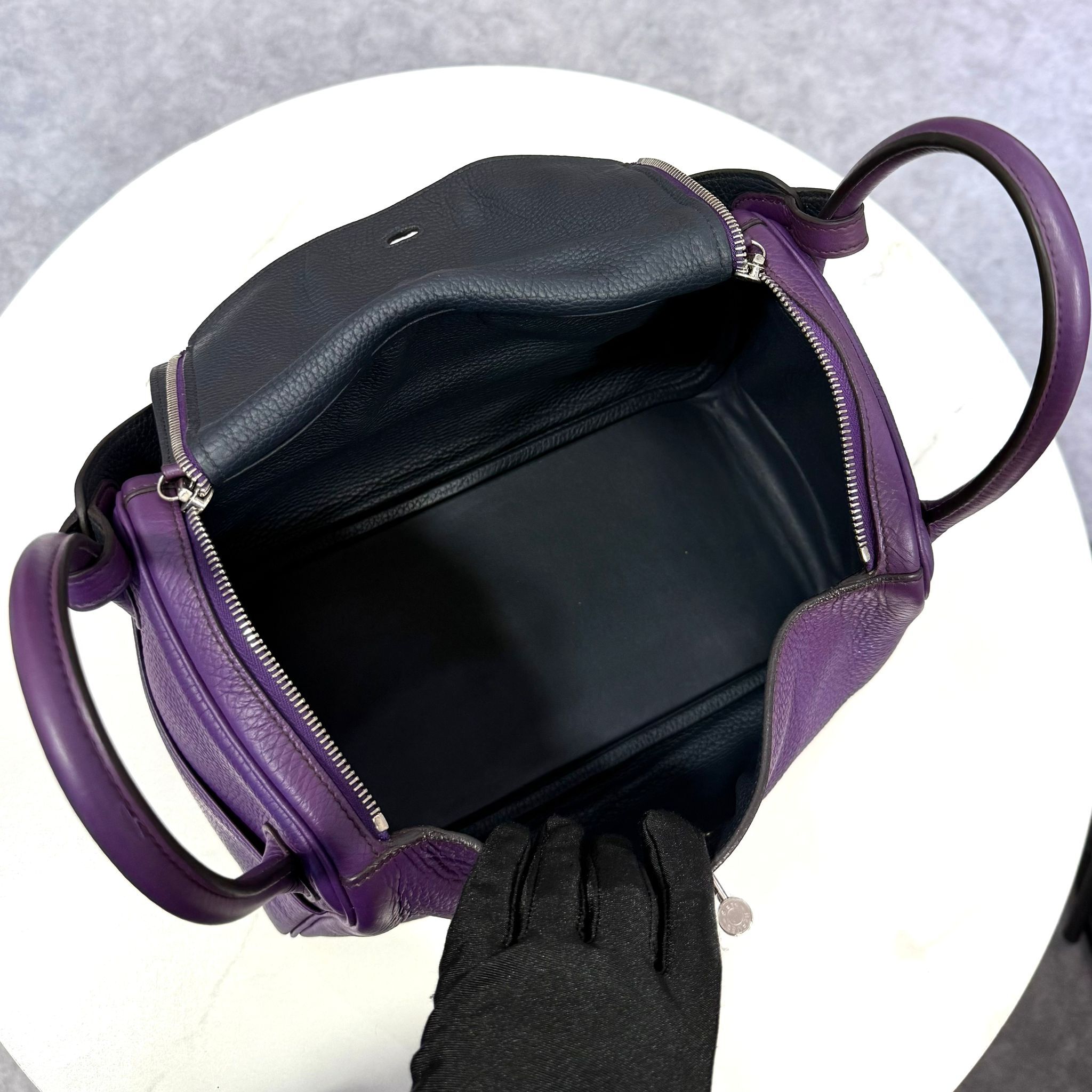 95%NEW二手HERMES LINDY 30 Q刻 鳶尾紫TC皮/銀扣 9K IRIS PHW #香榭站正品