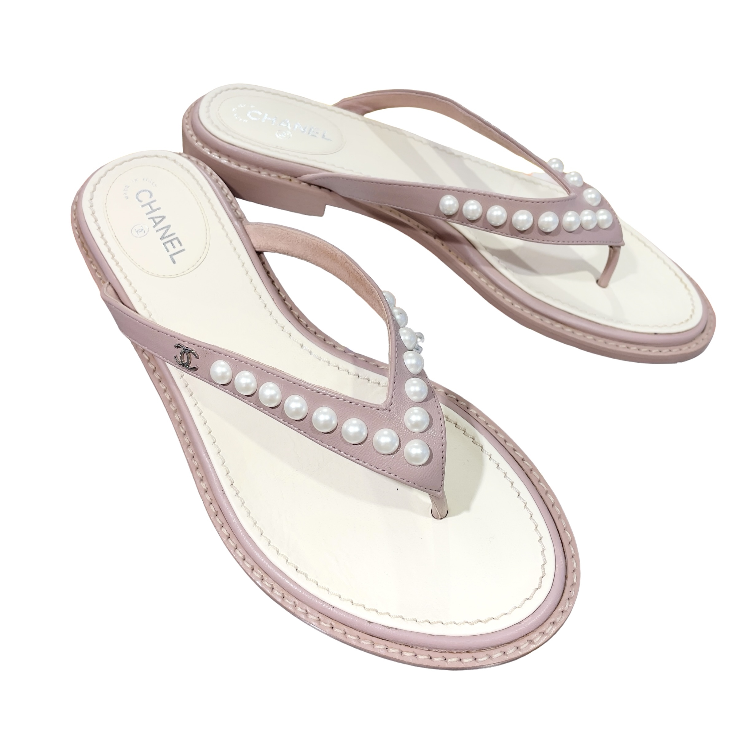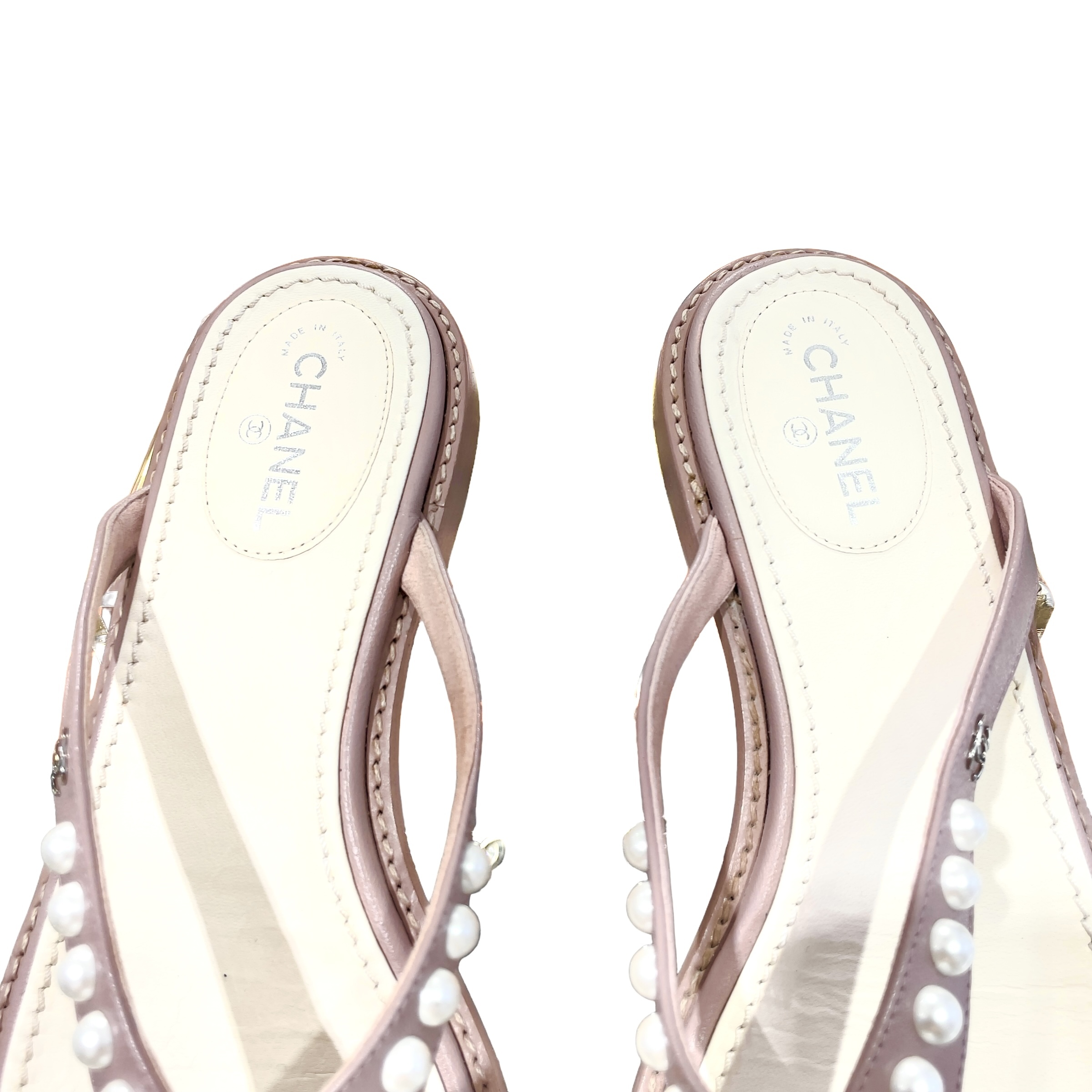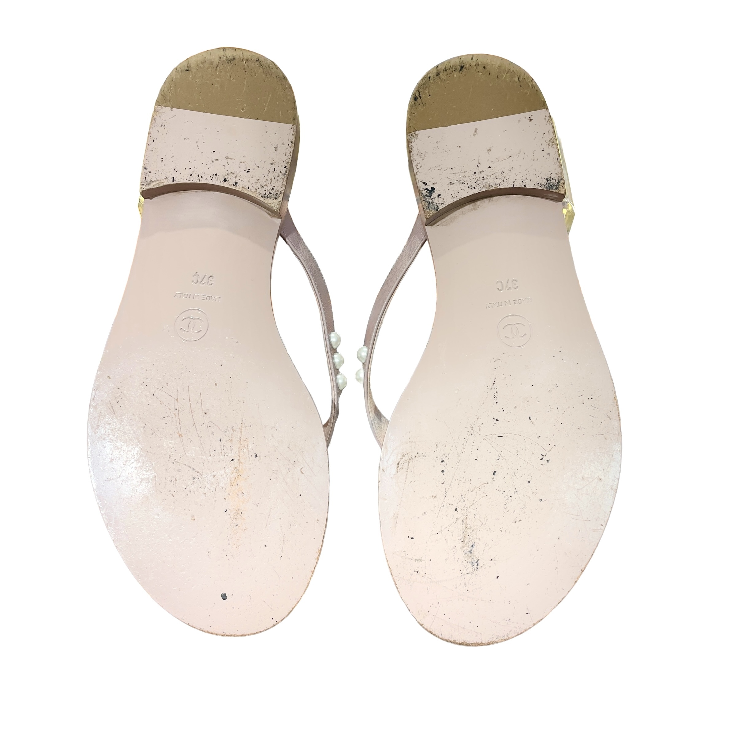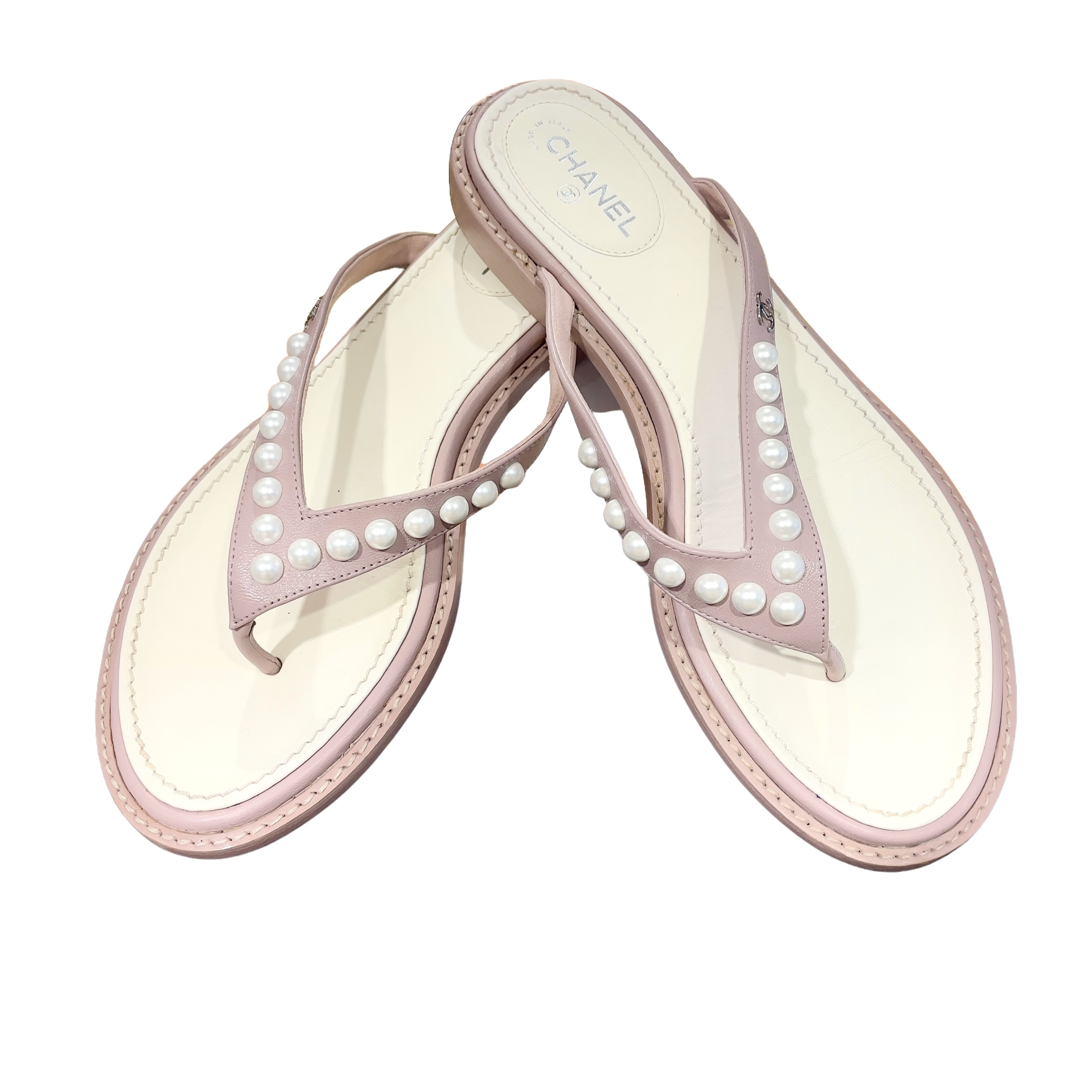 95%NEW 二手 CHANEL 人字拖鞋, 37碼 ,粉色羊皮, 綴珍珠, #香榭站正品