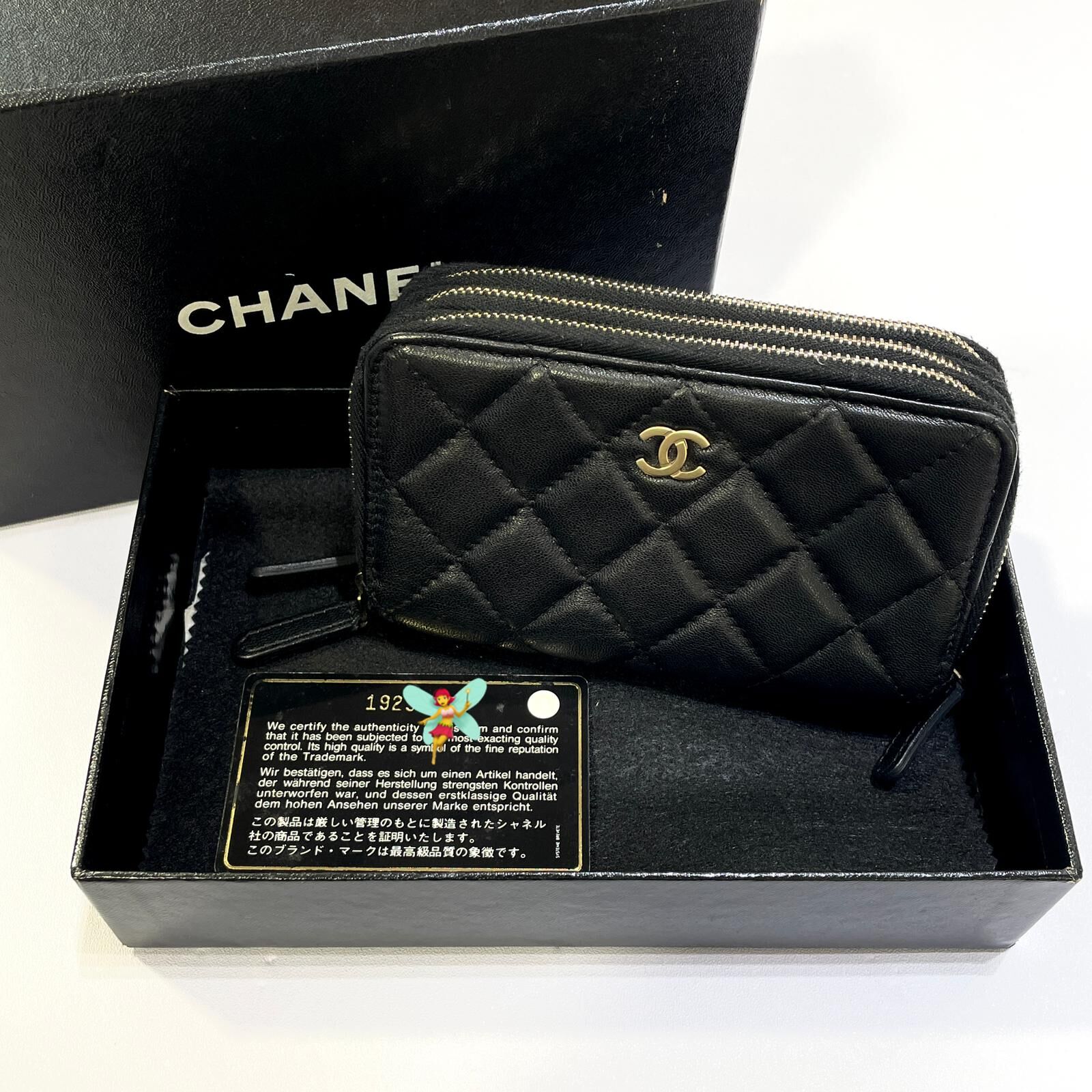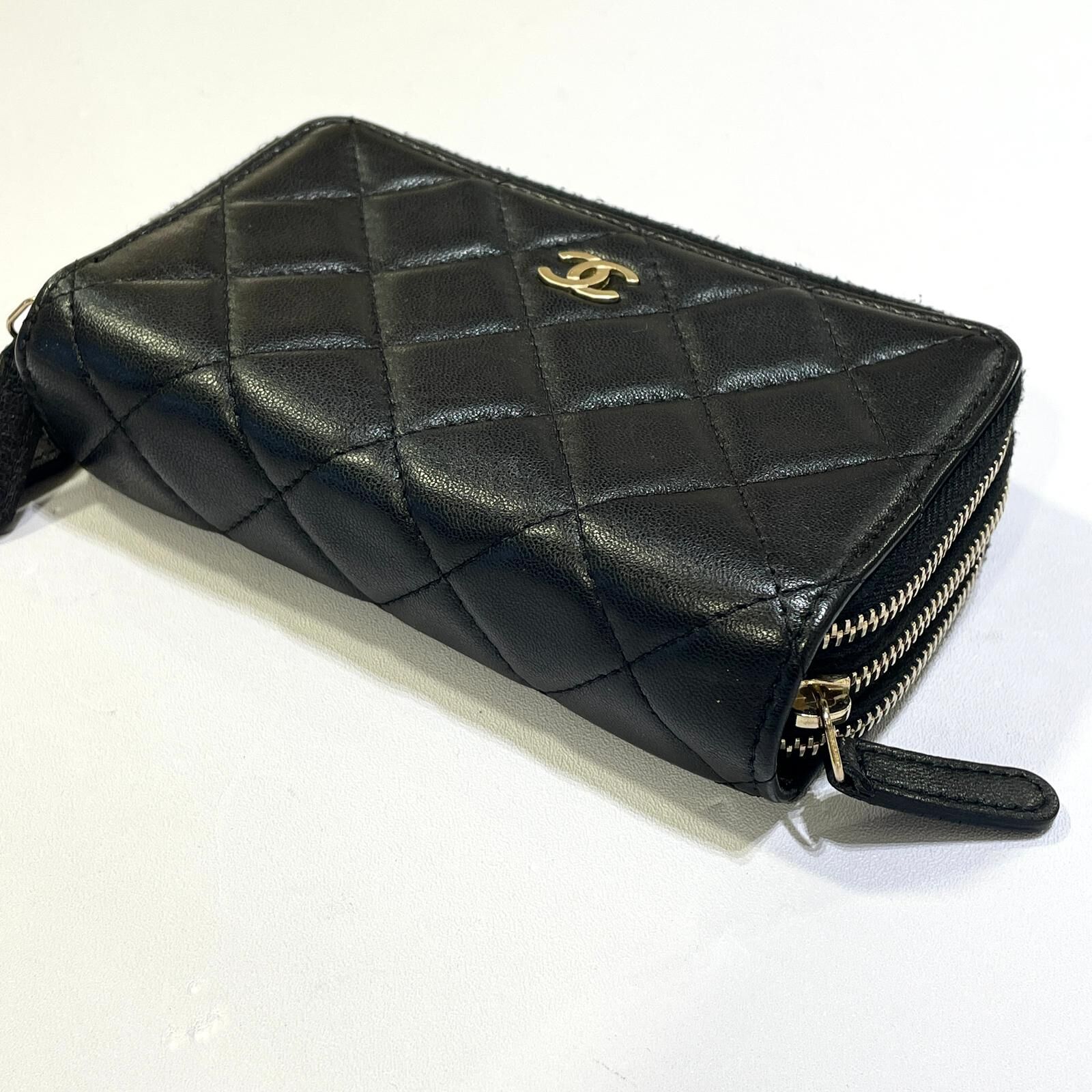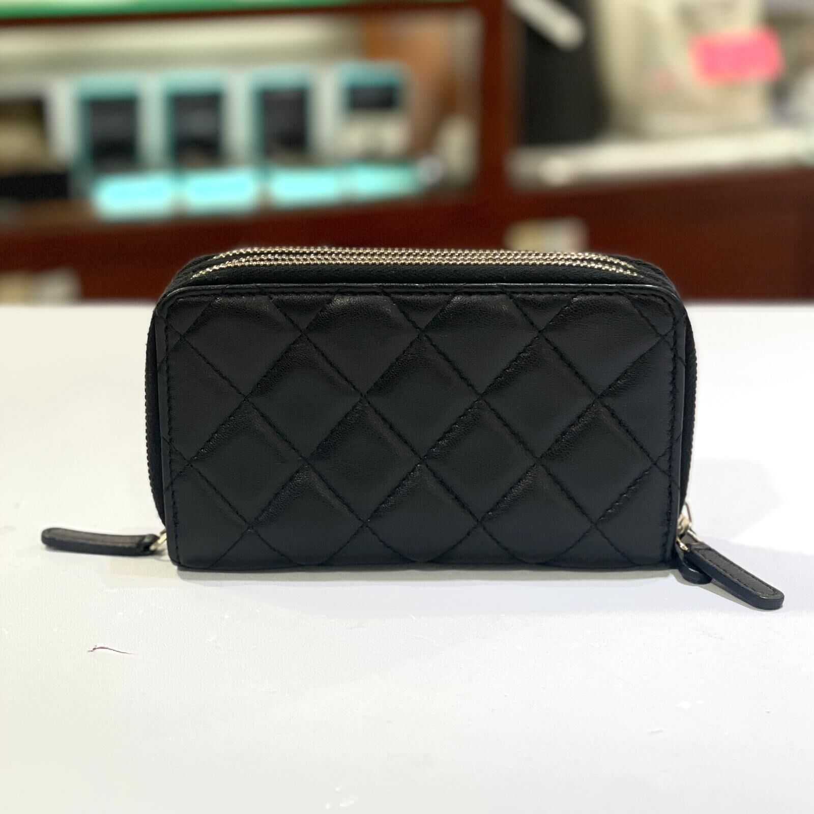 95%NEW 二手CHANEL短銀包/卡片套/ 黑色羊皮淡金拉鏈款@192開 #香榭站正品