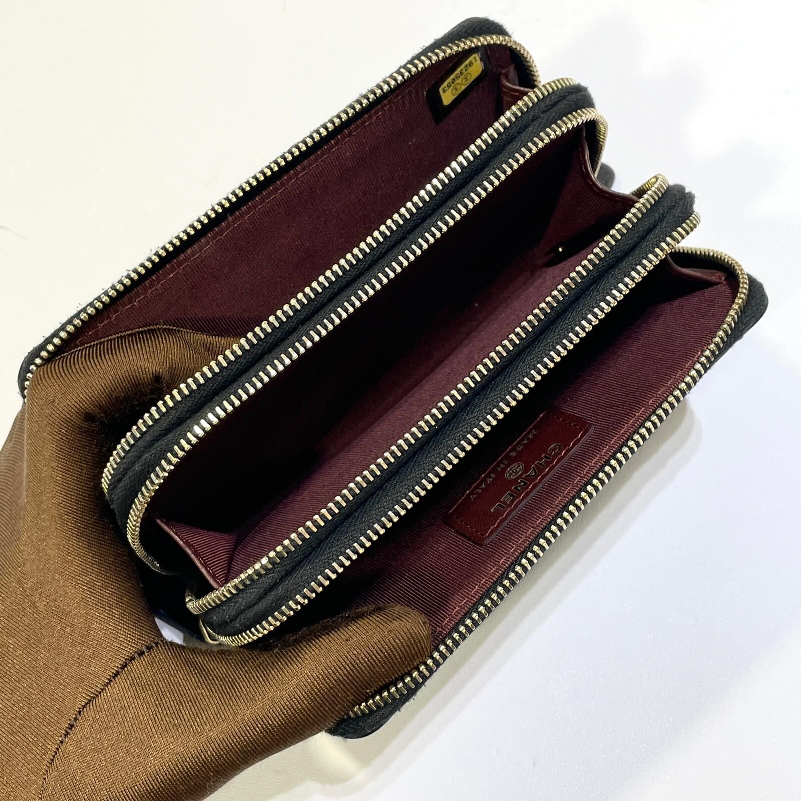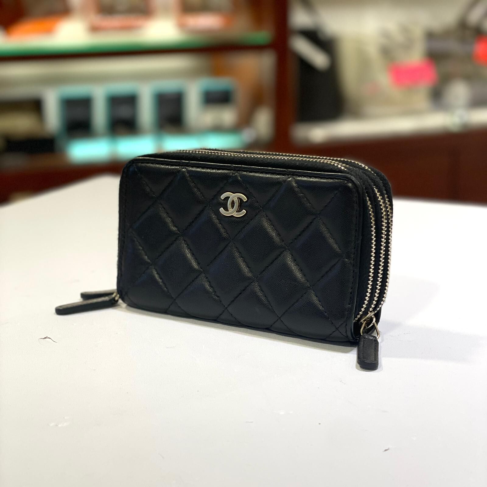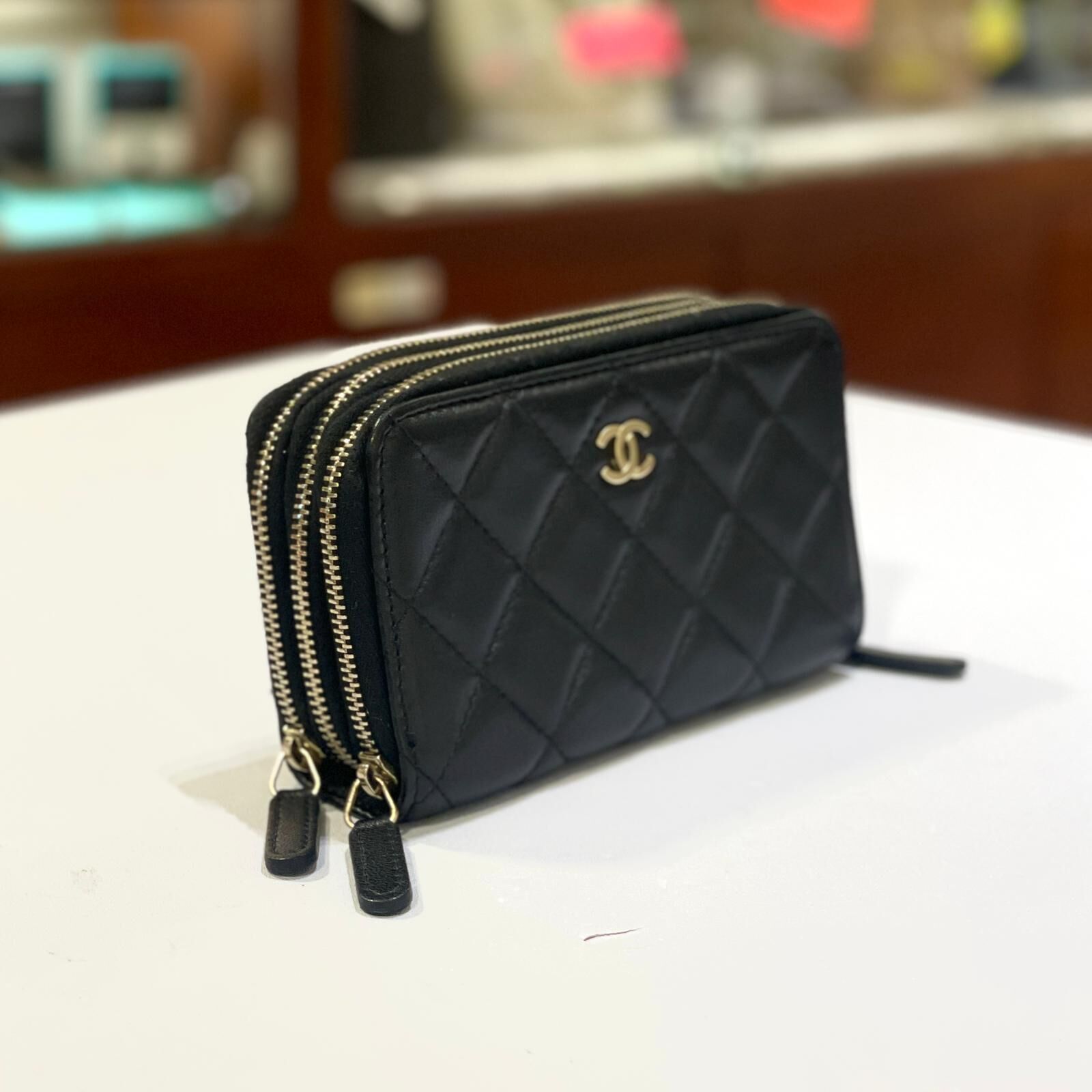 95%NEW 二手CHANEL短銀包/卡片套/ 黑色羊皮淡金拉鏈款@192開 #香榭站正品