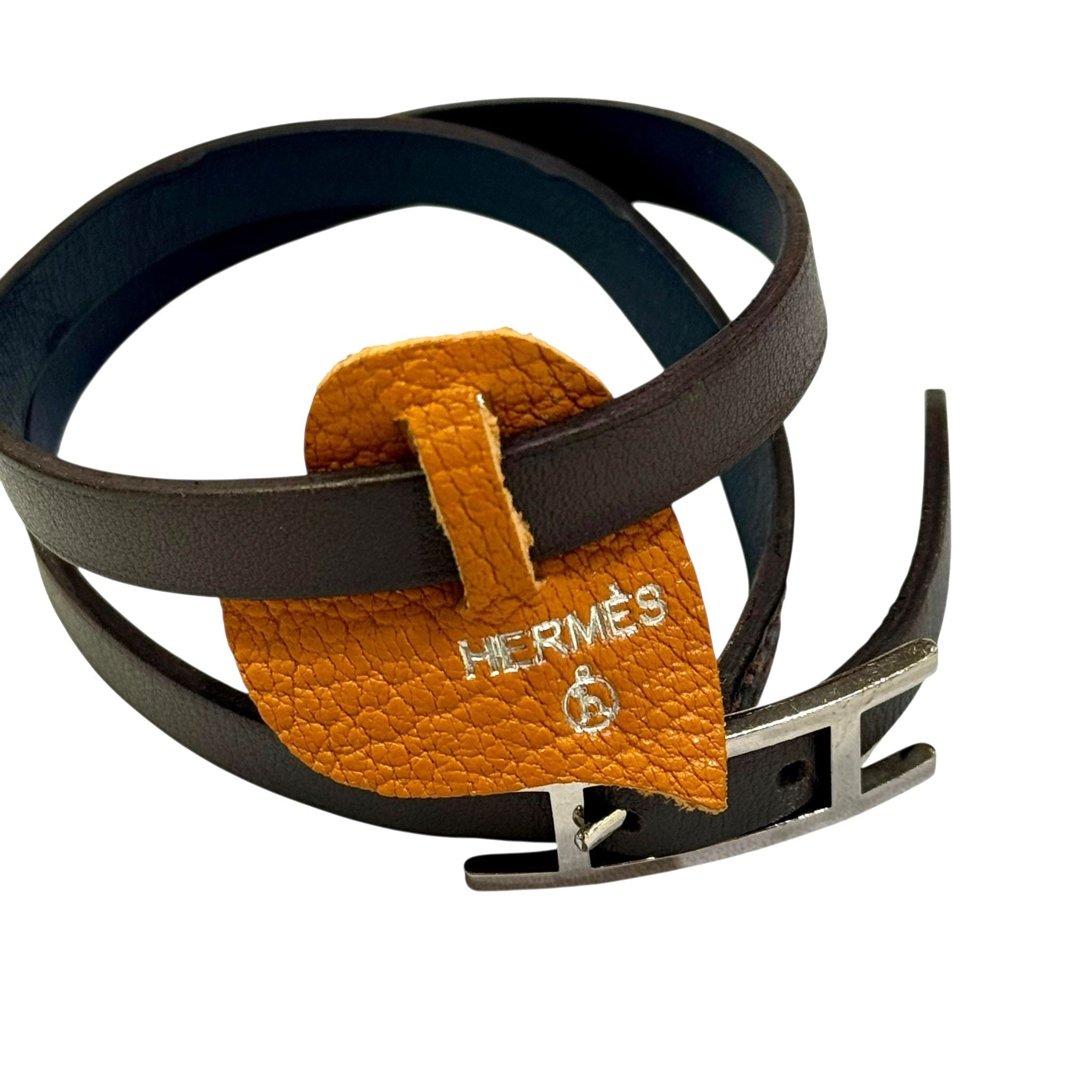 95%NEW HERMES Behapi Double Tour bracelet HERMES手繩/手帶 T6 灰色x藍色皮帶 H銀扣 #香榭站正品