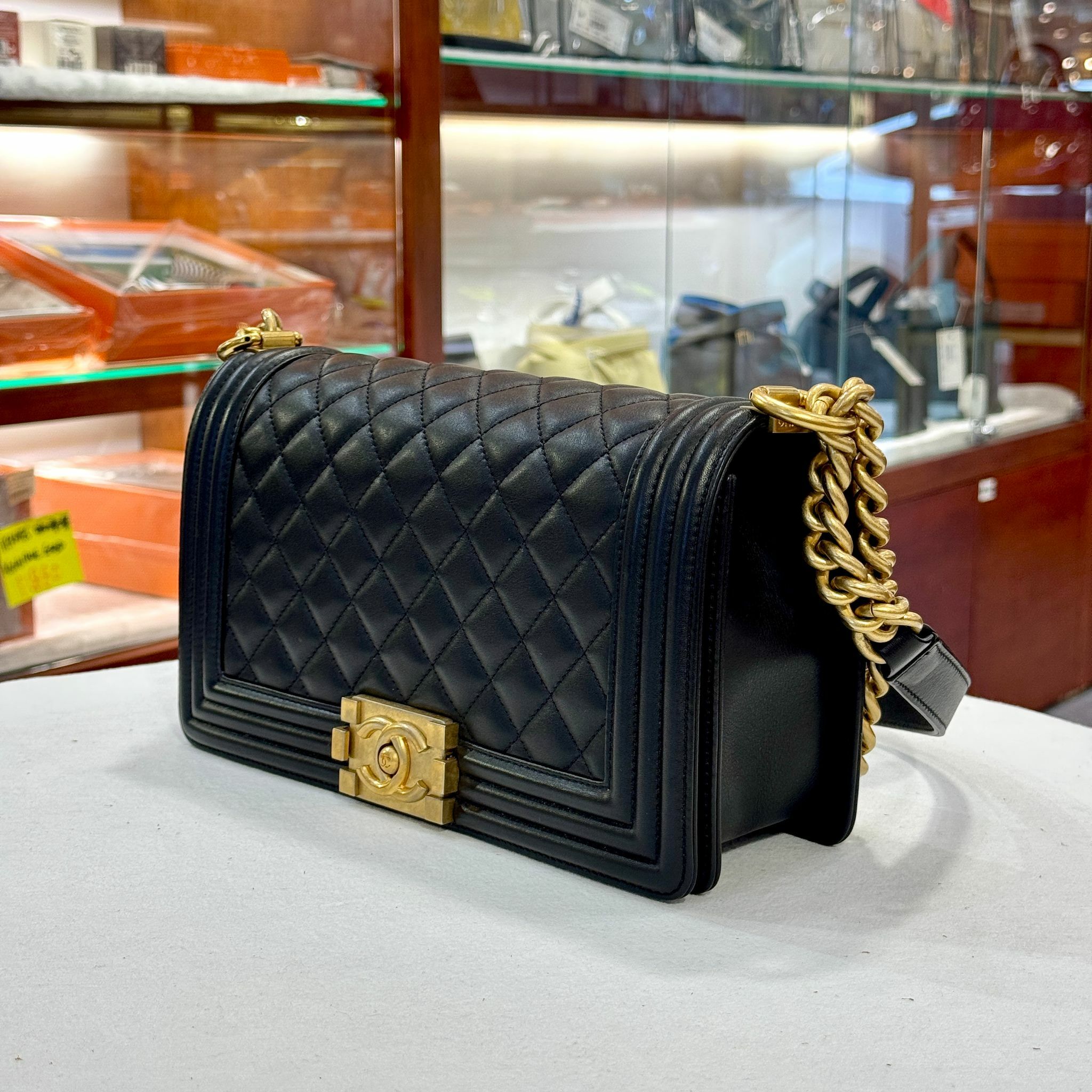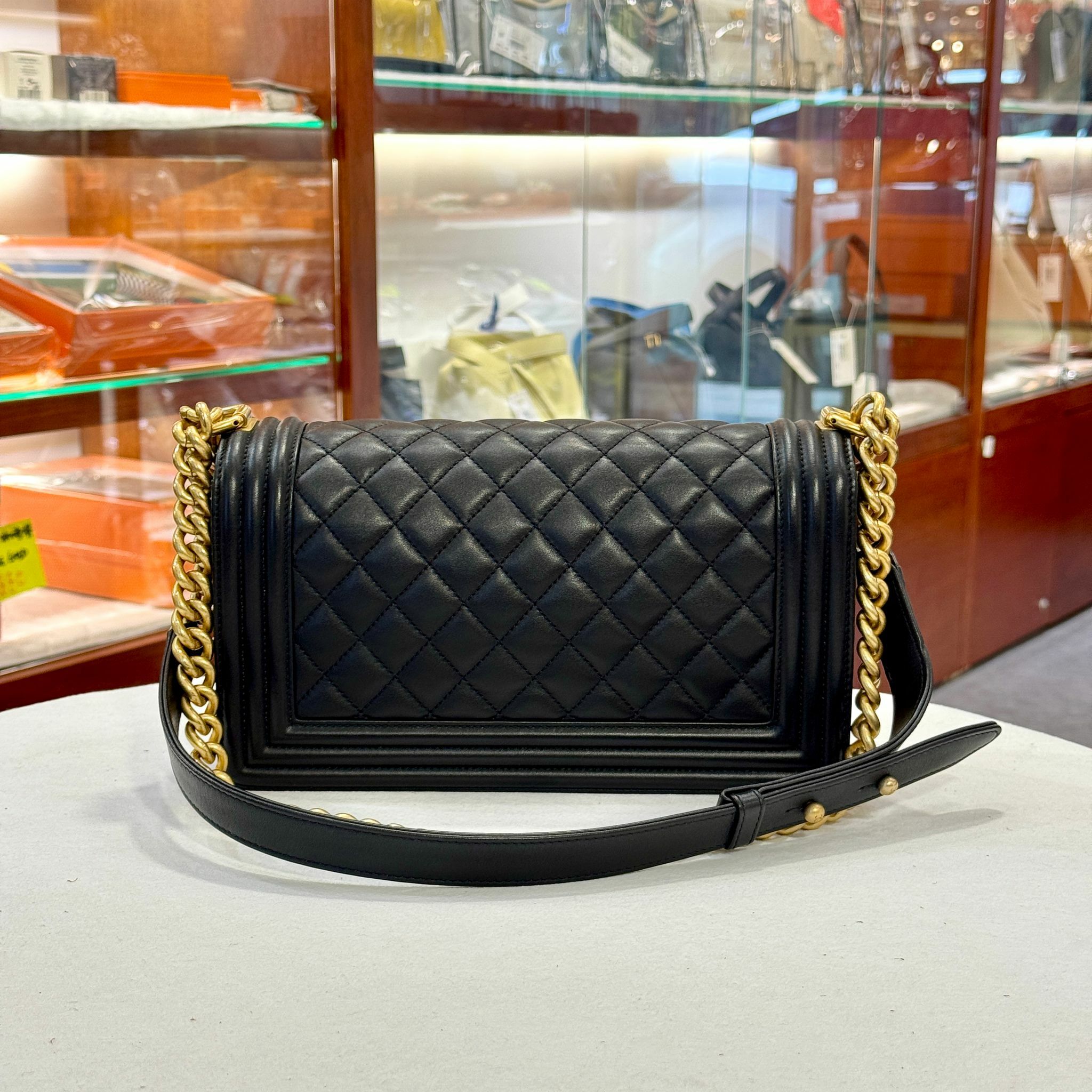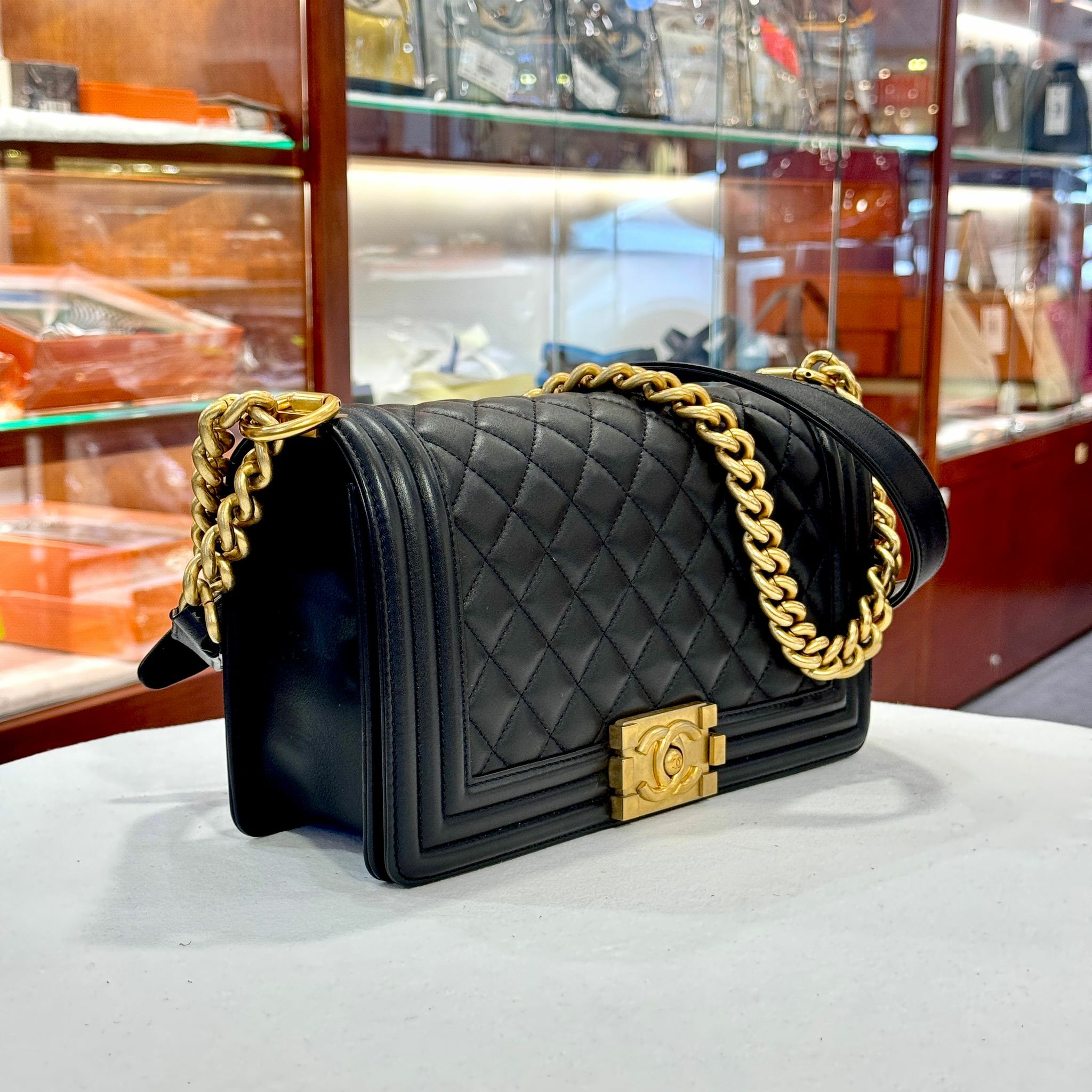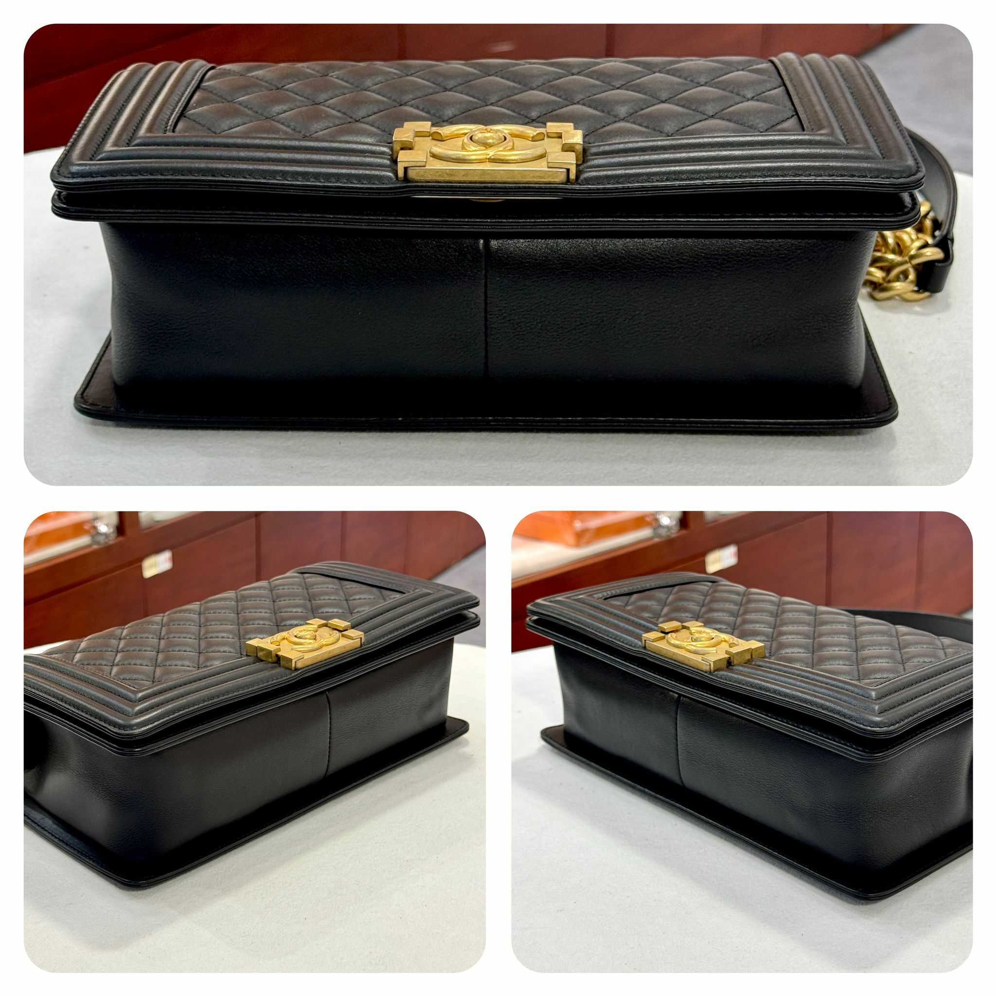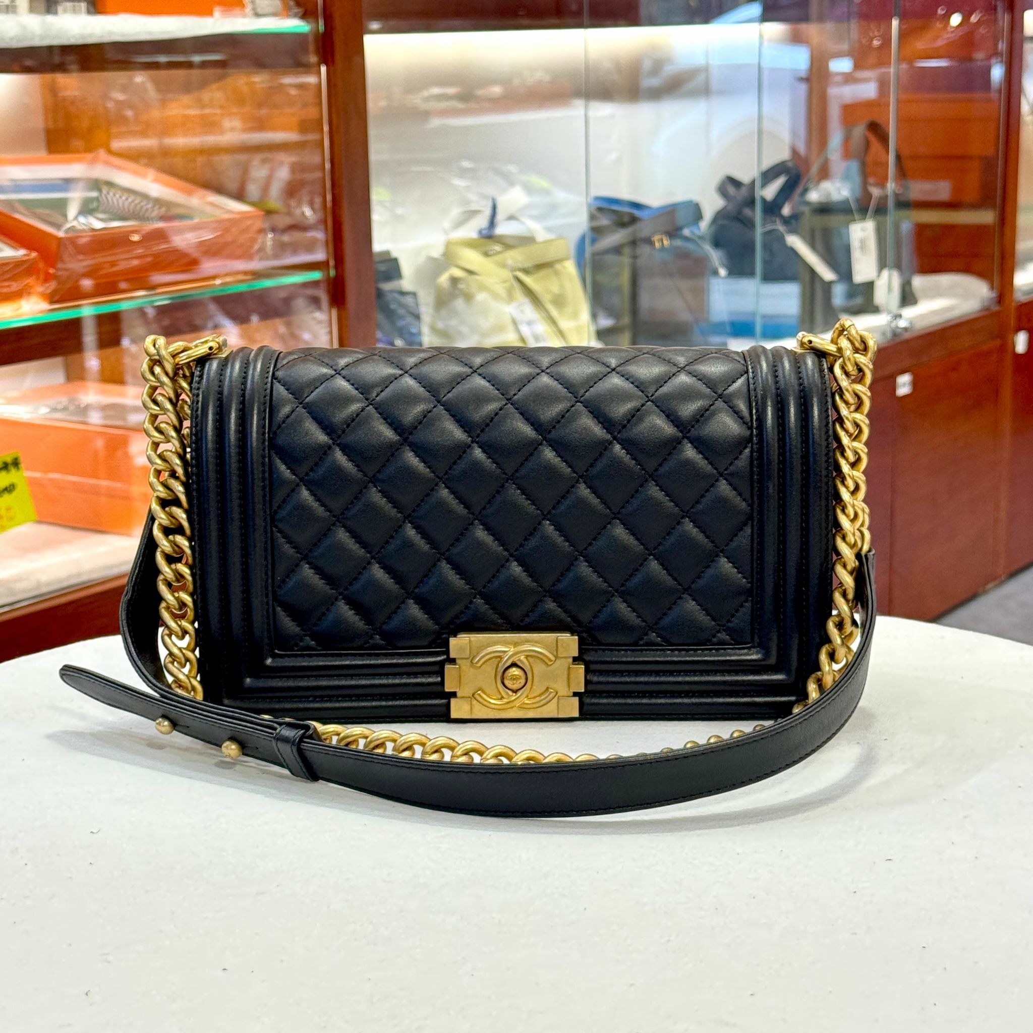 98%NEW 二手BOY CHANEL 25 A67086 黑色牛皮菱格/金扣 #香榭站正品