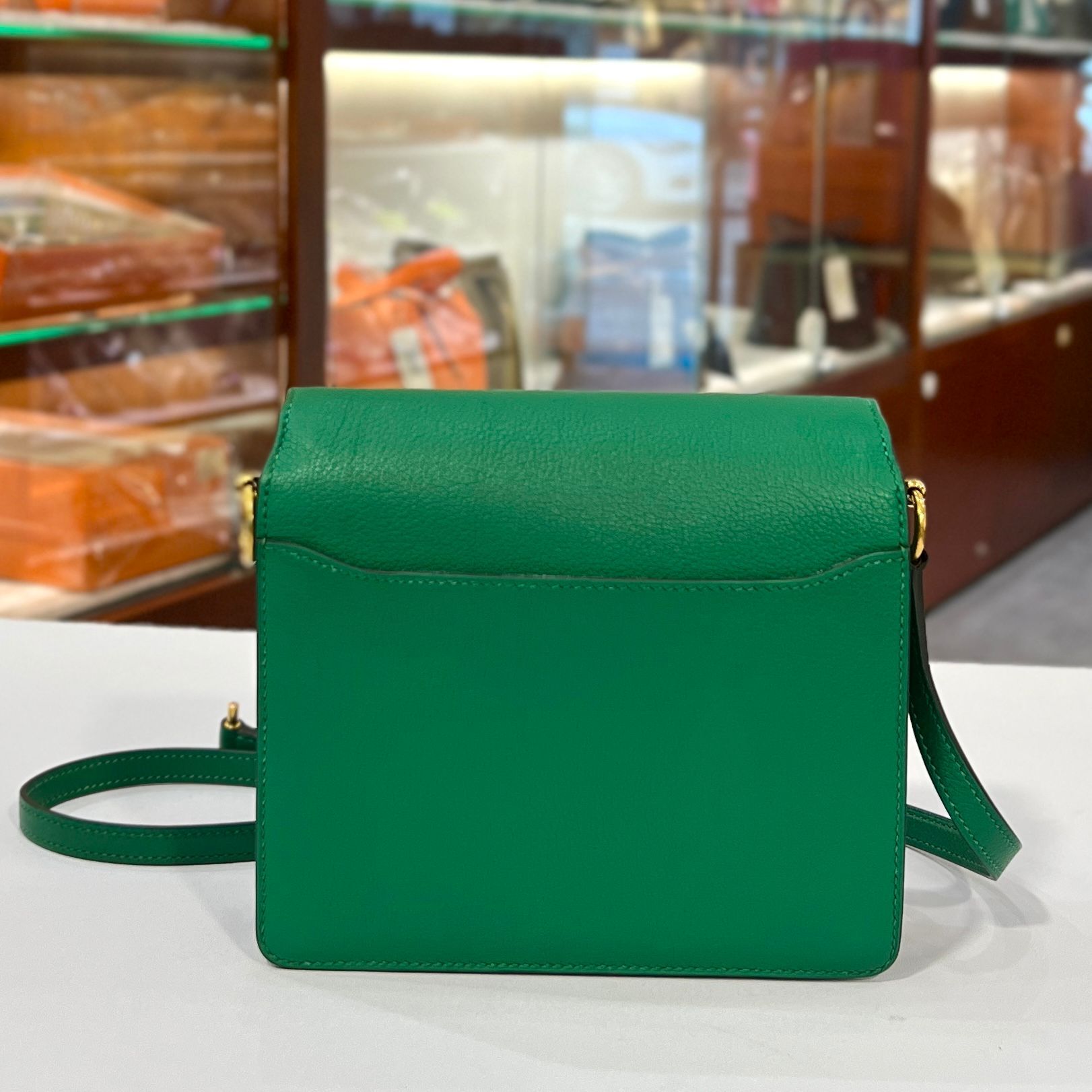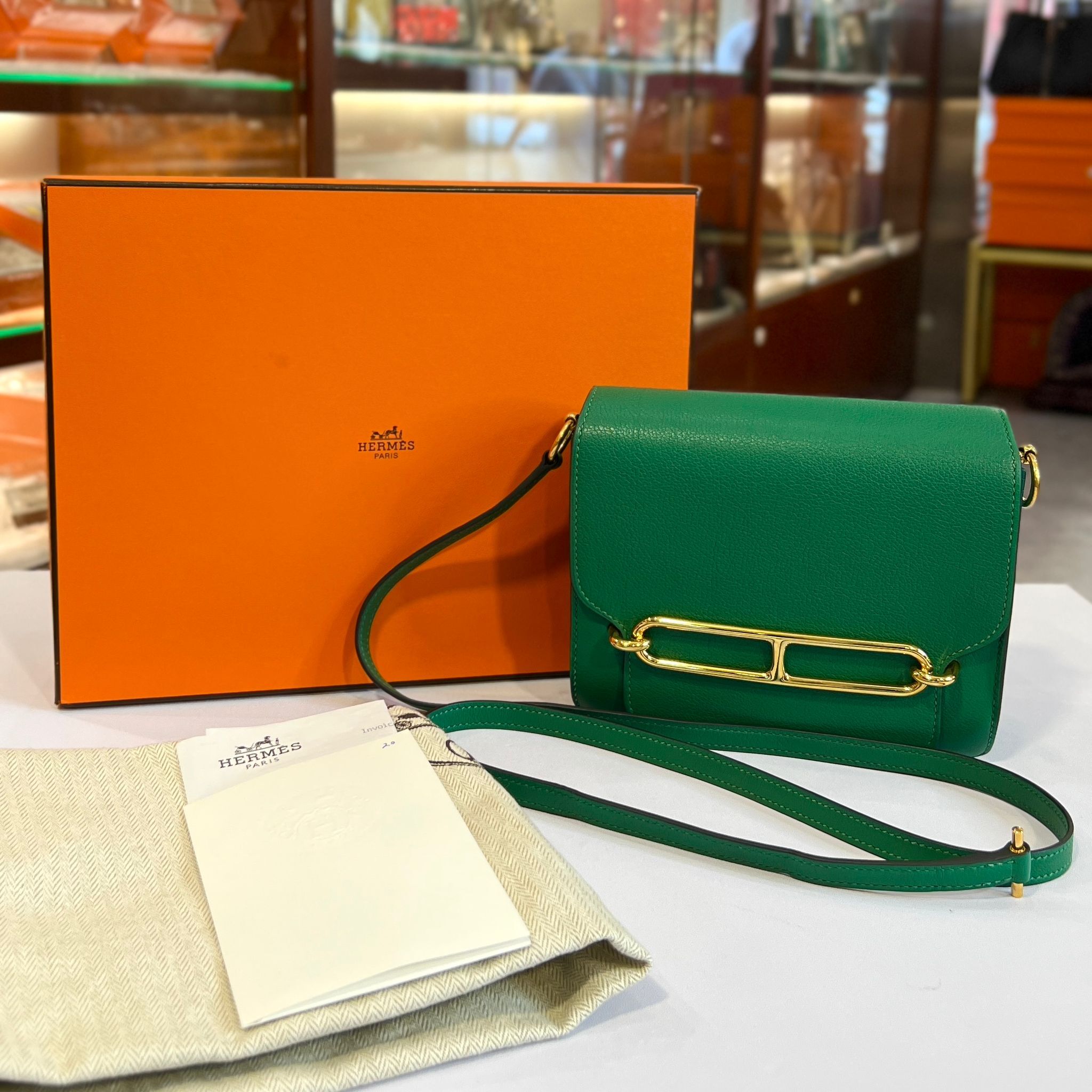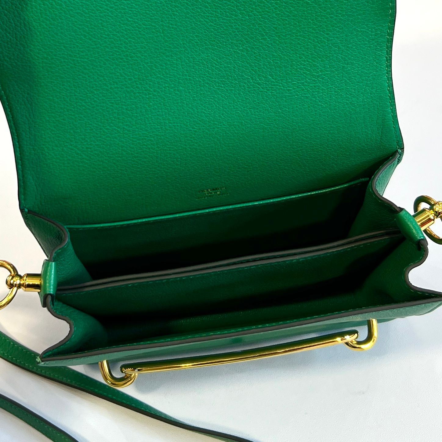 98%NEW二手HERMES MINI ROULIS A刻 絲絨綠EVERCOLOR皮/金扣 U4/VERT VERTIGO GHW #香榭站正品