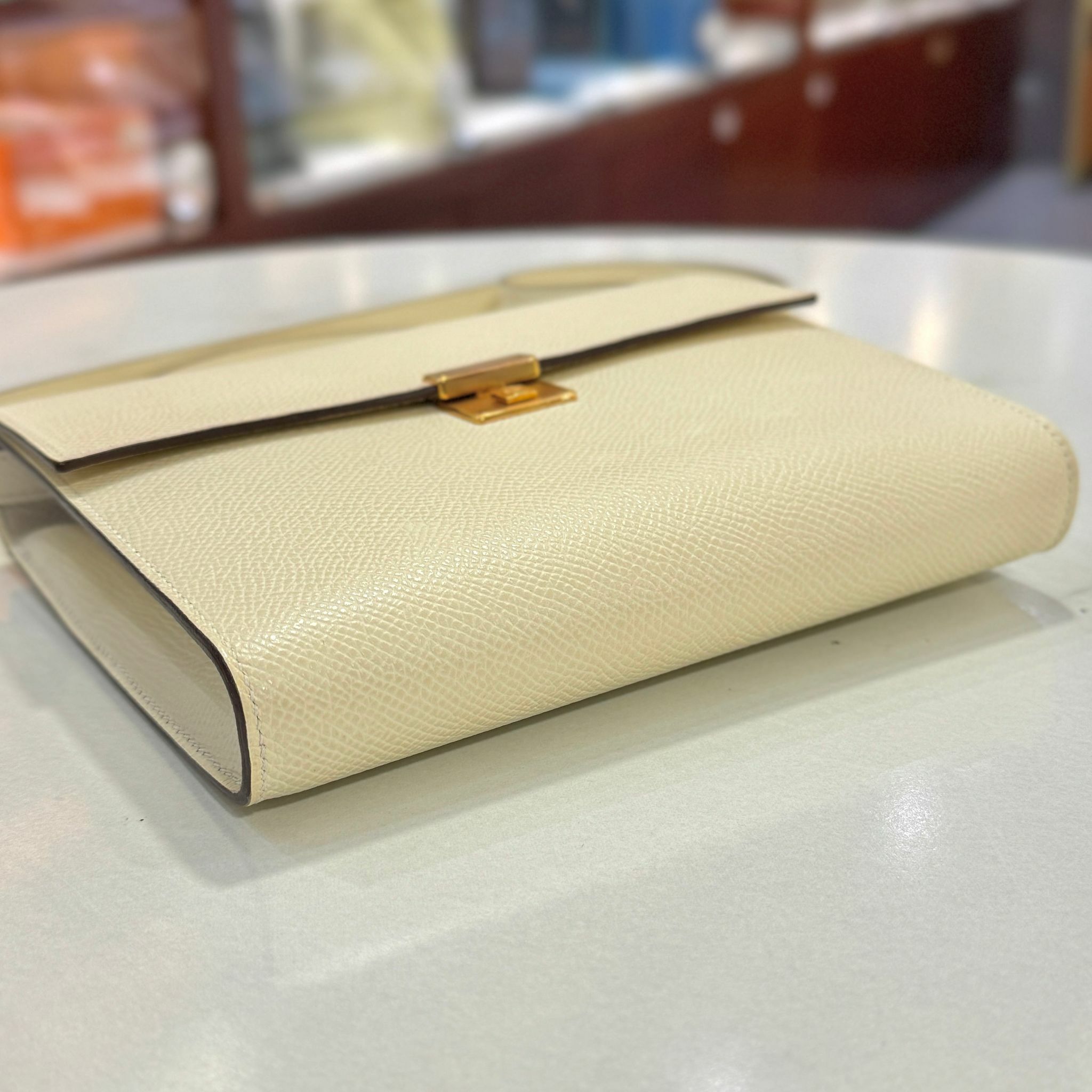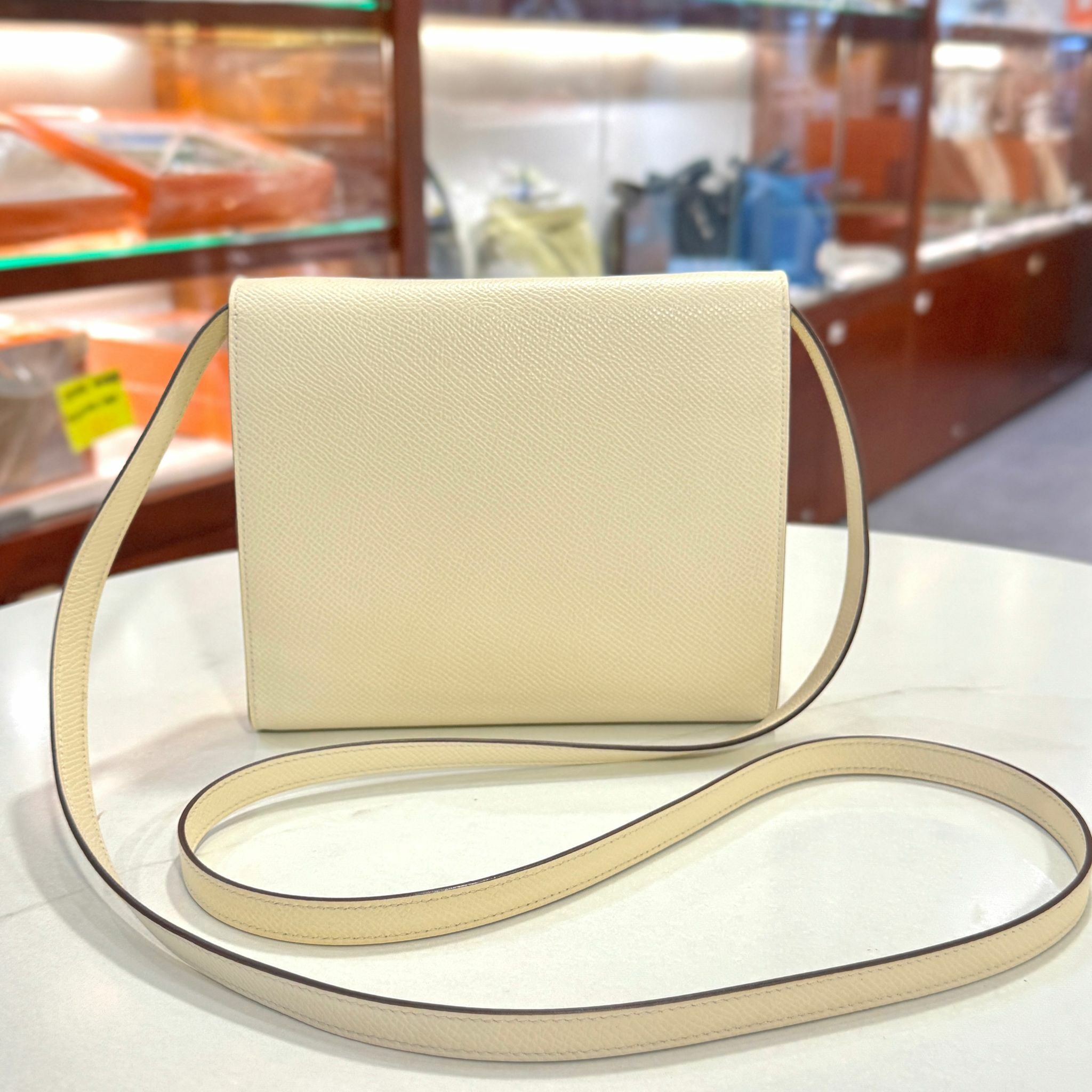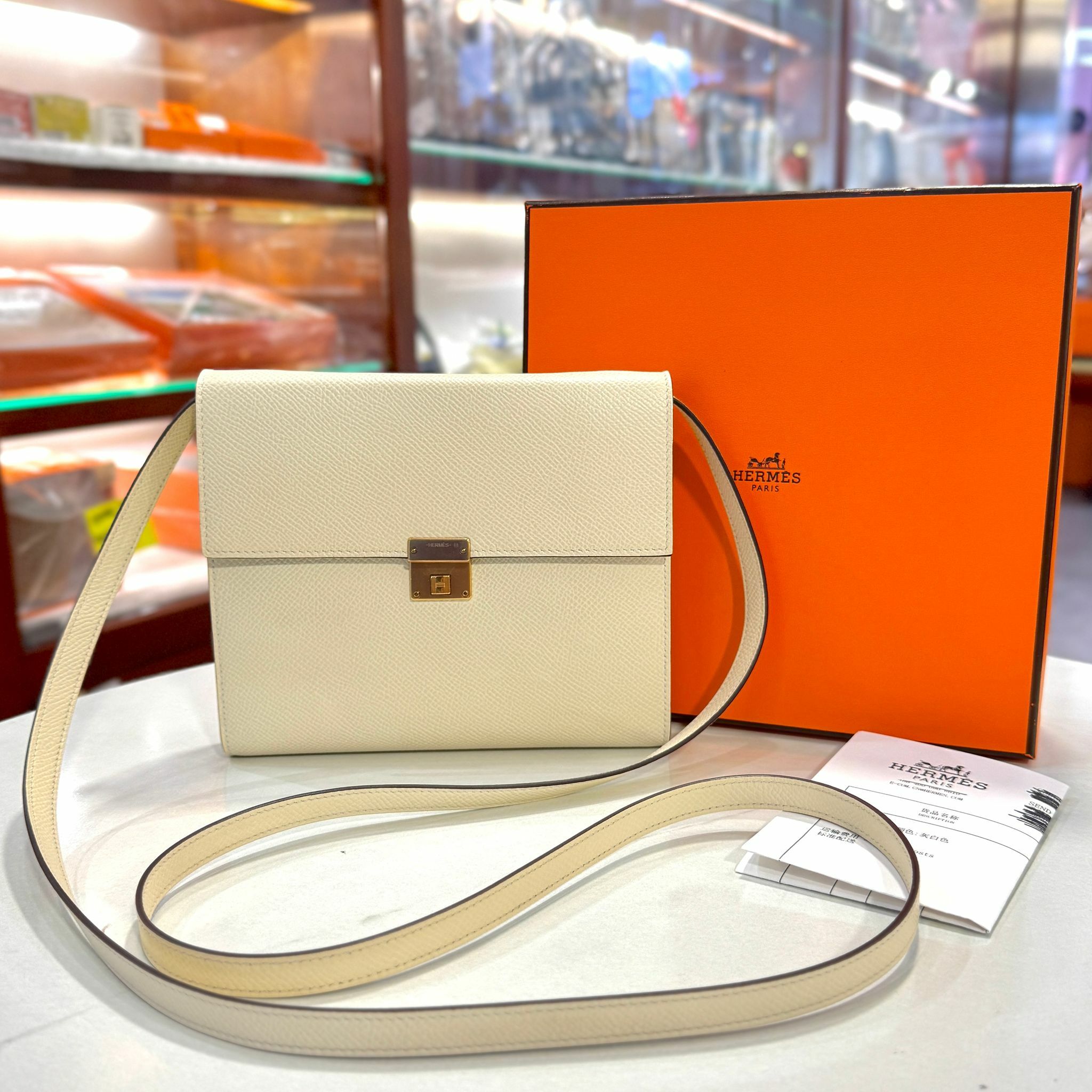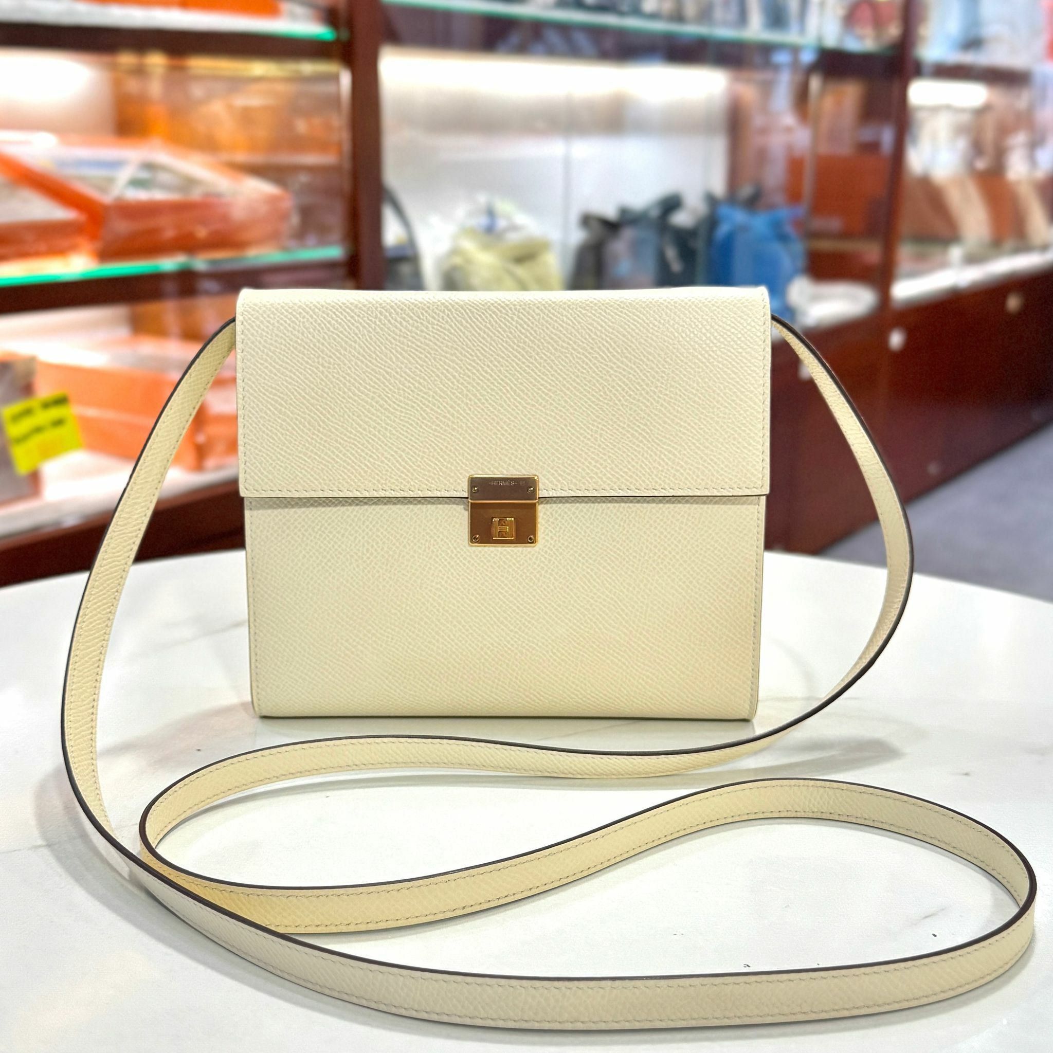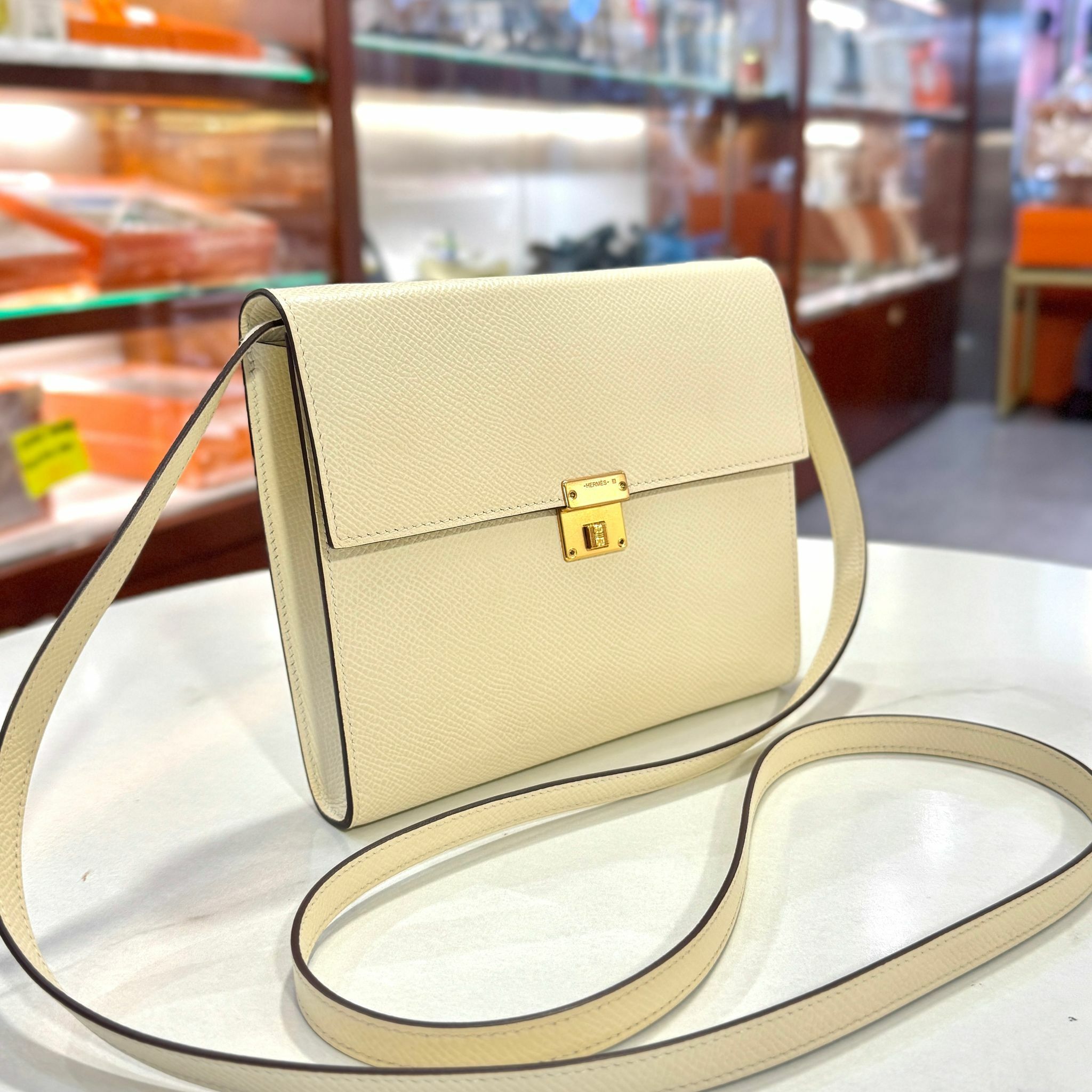 99%NEW二手HERMES斜揹袋 U刻 CLIC 16 奶油白EPSOM皮/金扣 I2/NATA GHW H073509CDI2 #香榭站正品
