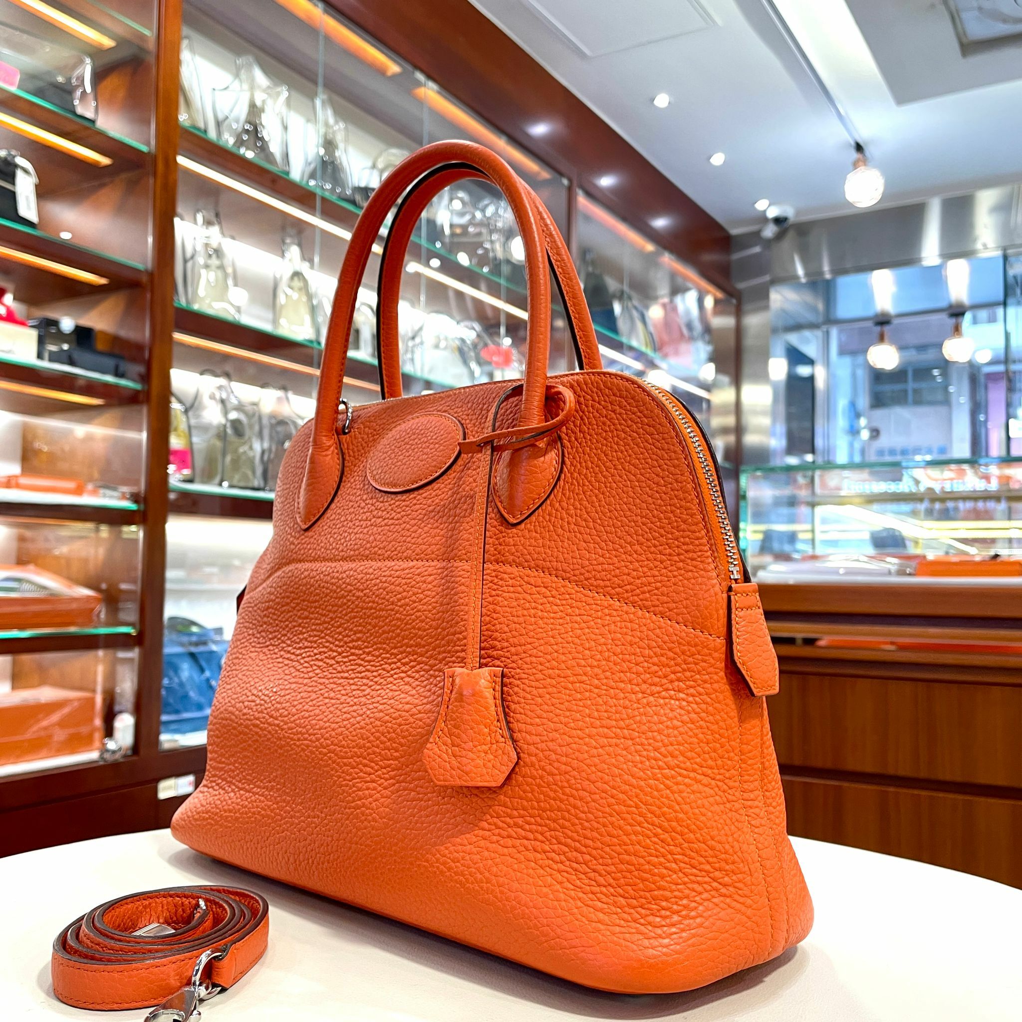 99%NEW二手HERMES BOLIDE 31愛馬仕橙TC皮銀扣 93 ORANGE/PHW #香榭站正品